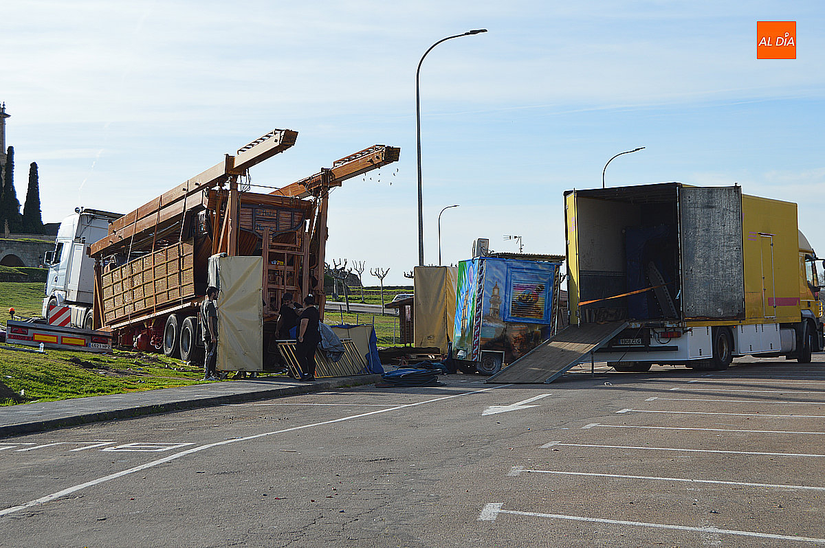 Ciudad Rodrigo comienza a recuperar, poco a poco, su imagen habitual tras la intensa celebración del Carnaval del Toro. La plaza de toros ya ha sido desmontada y los operarios trabajan estos días en la retirada de las agujas, avanzando así en el desmontaje de las infraestructuras instaladas con motivo de los festejos.