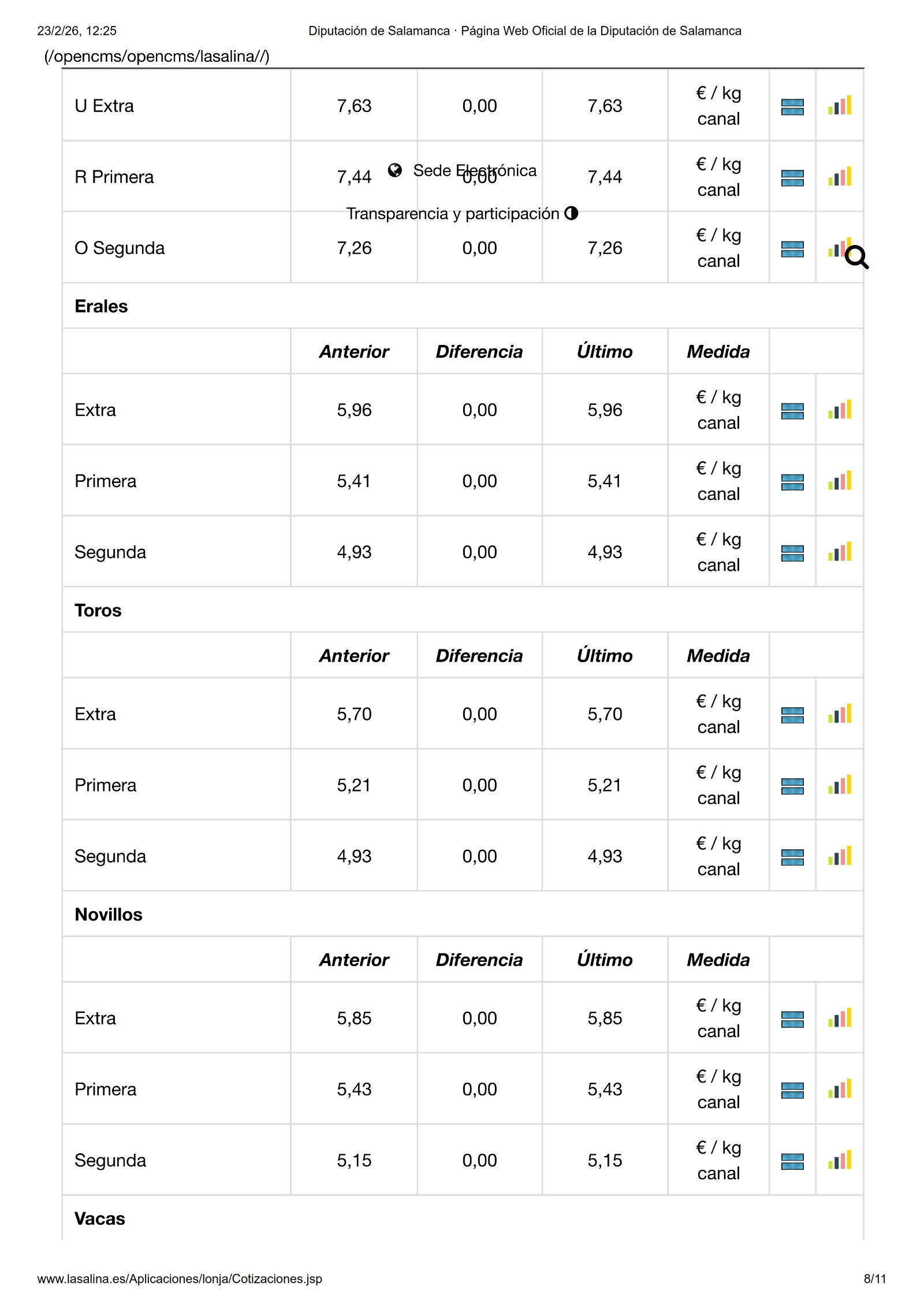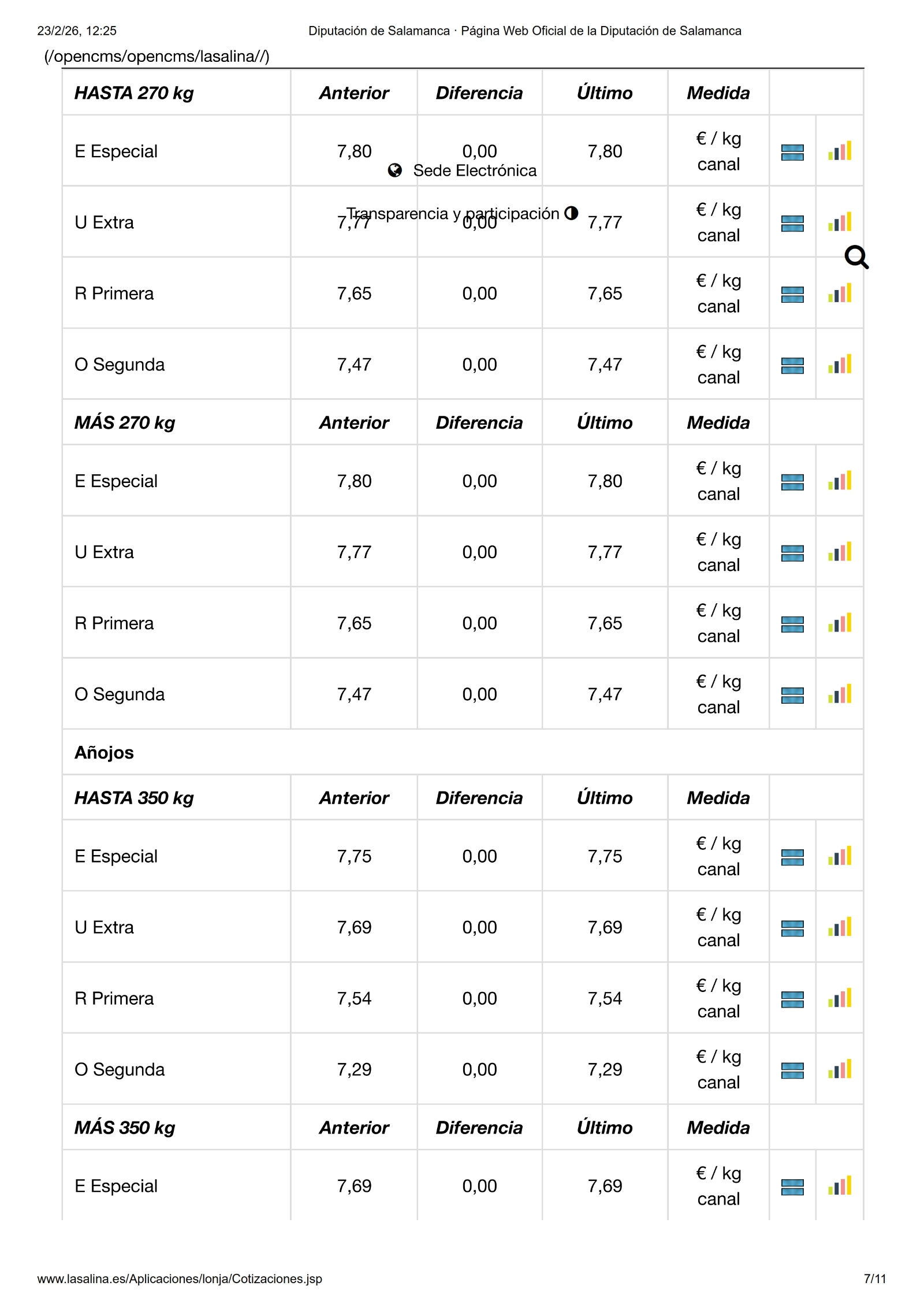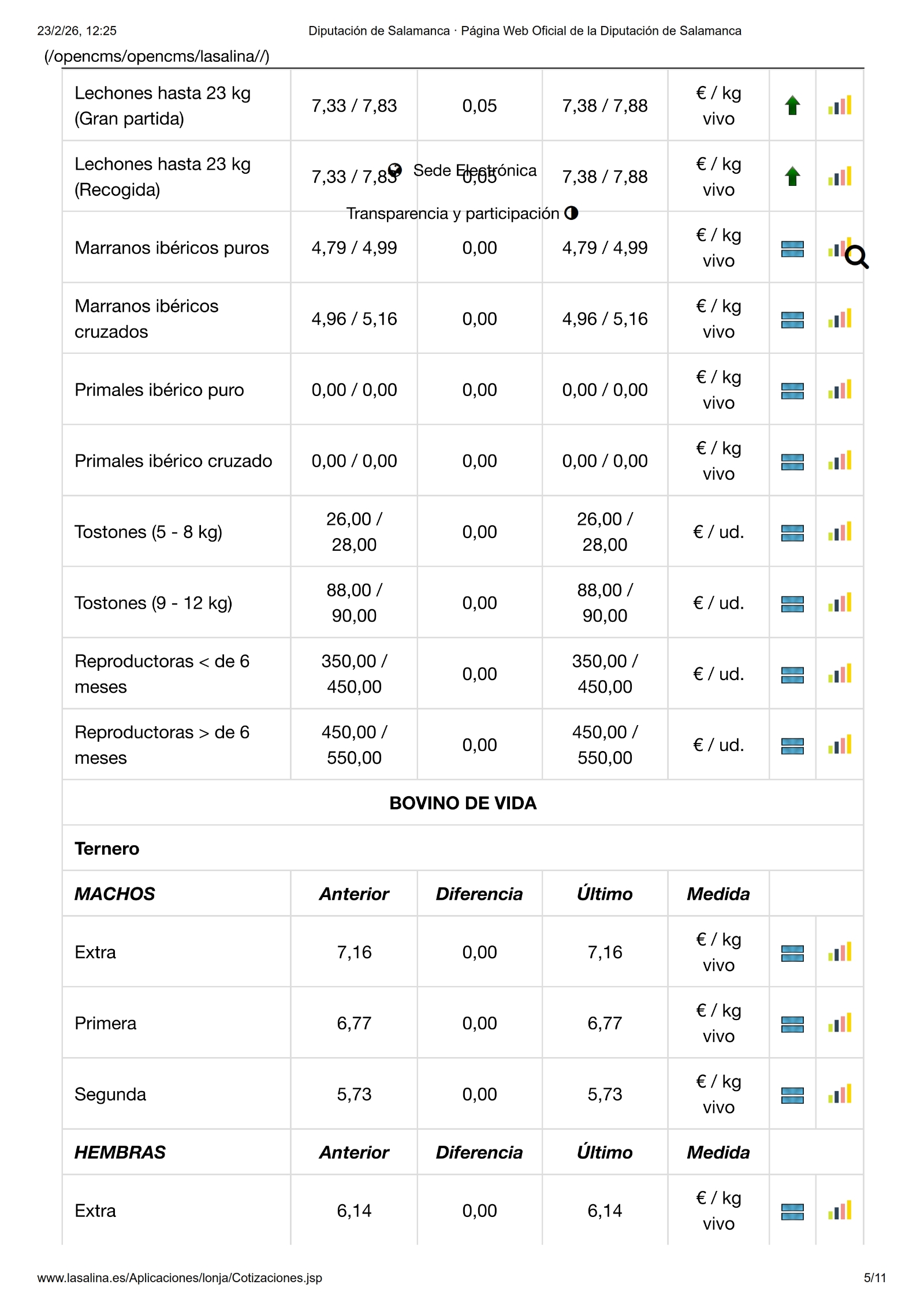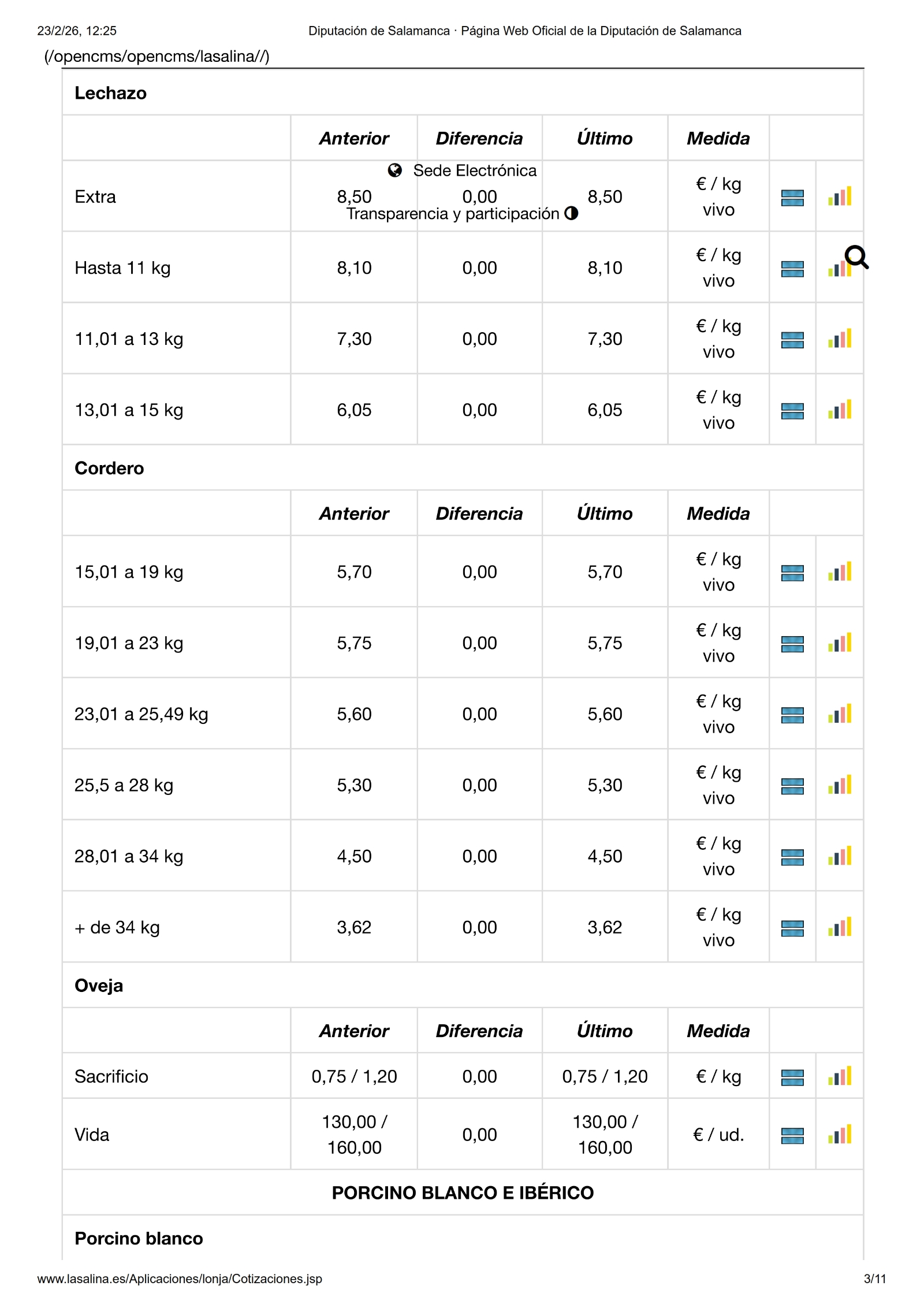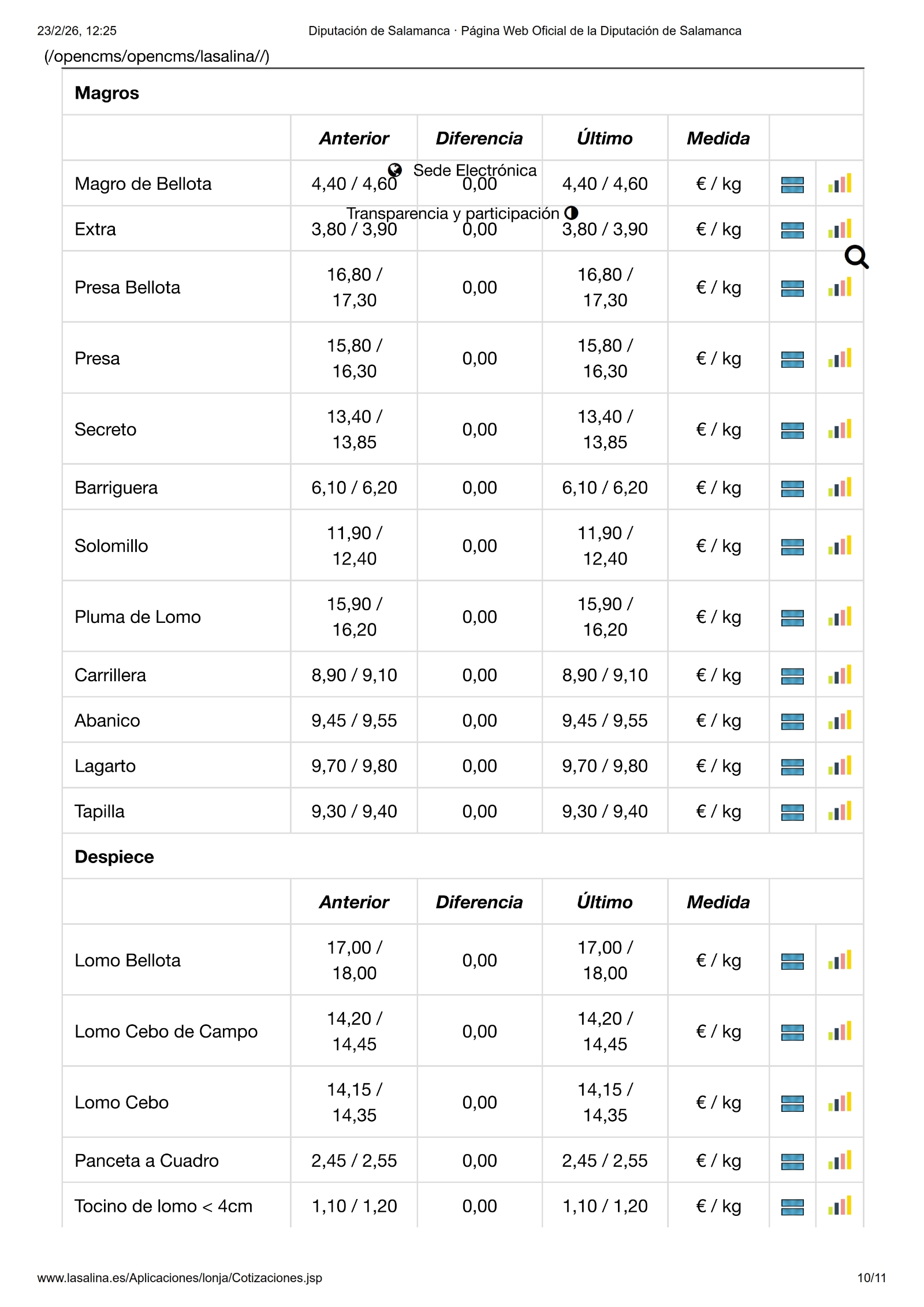 Repetición en todas las mesas, también el vacuno de cebo, solo se mueve el porcino blanco y los lechones en ibérico