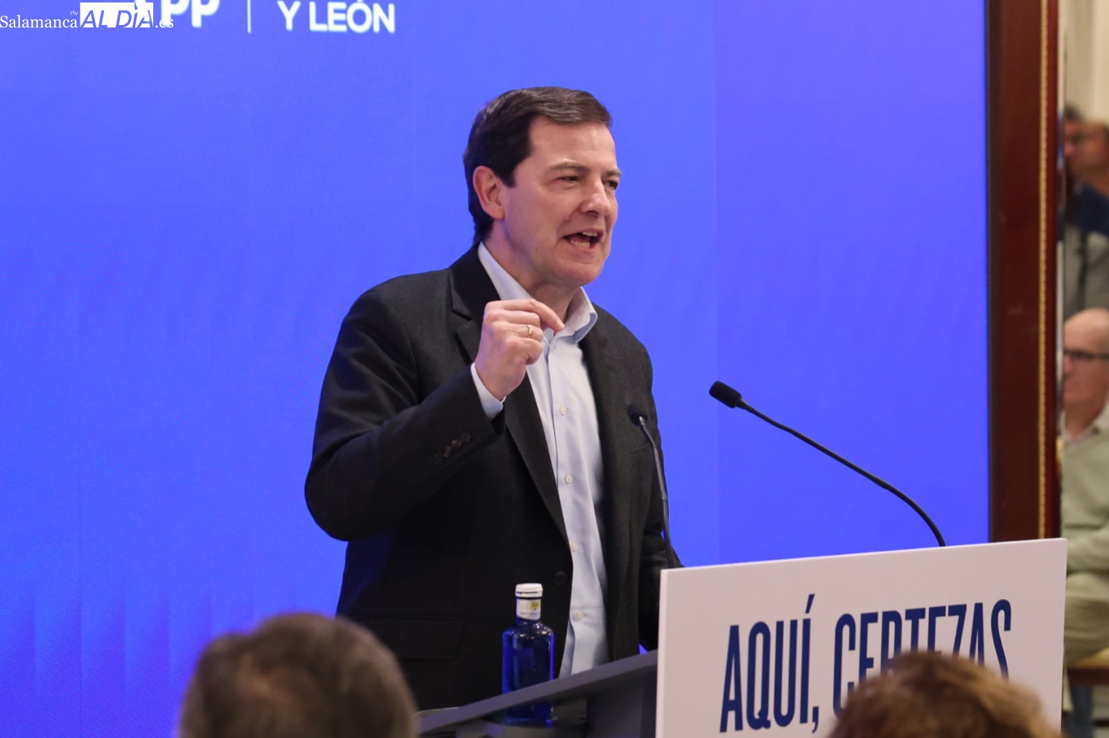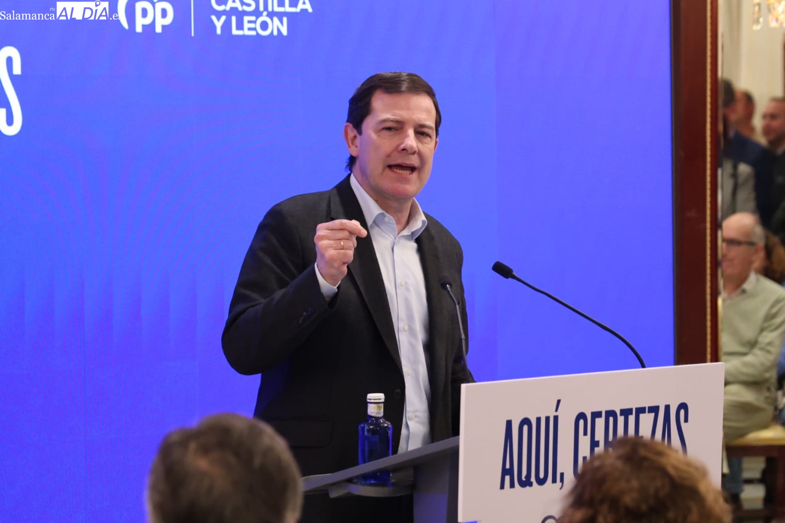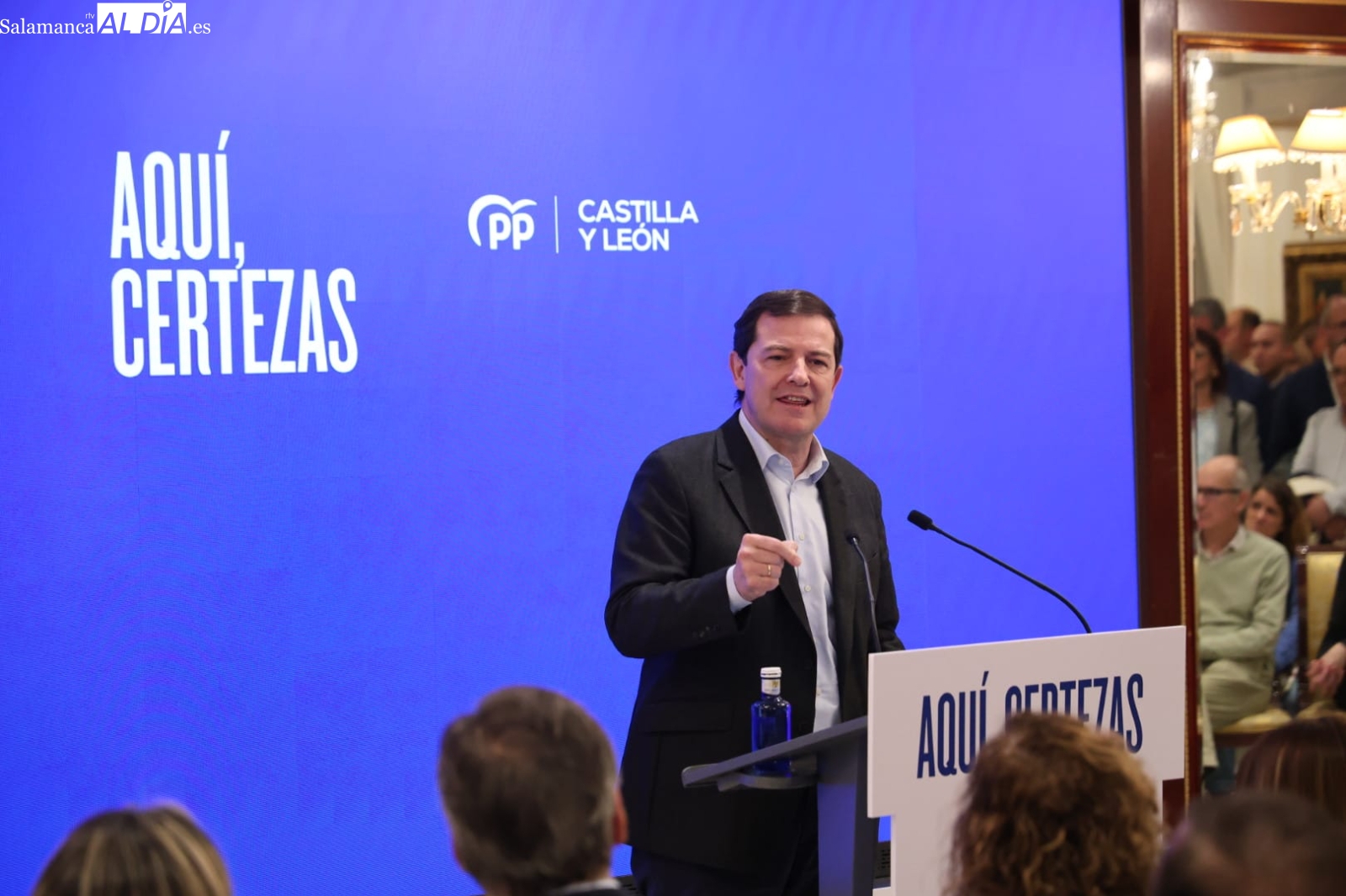 El presidente de la Junta y candidato del Partido Popular a la reelección, Alfonso Fernández Mañueco, abrió este jueves en Salamanca la campaña electoral para las elecciones autonómicas del 15 de mayo con un acto celebrado en el Hotel Alameda Palace. La campaña se desarrolla bajo el lema “Aquí certezas”, con el que el PP pretende destacar su gestión al frente del Gobierno autonómico. El acto puso fin a una jornada en la que el candidato popular mantuvo encuentros en varias provincias de la comunidad antes de cerrar la agenda en Salamanca.