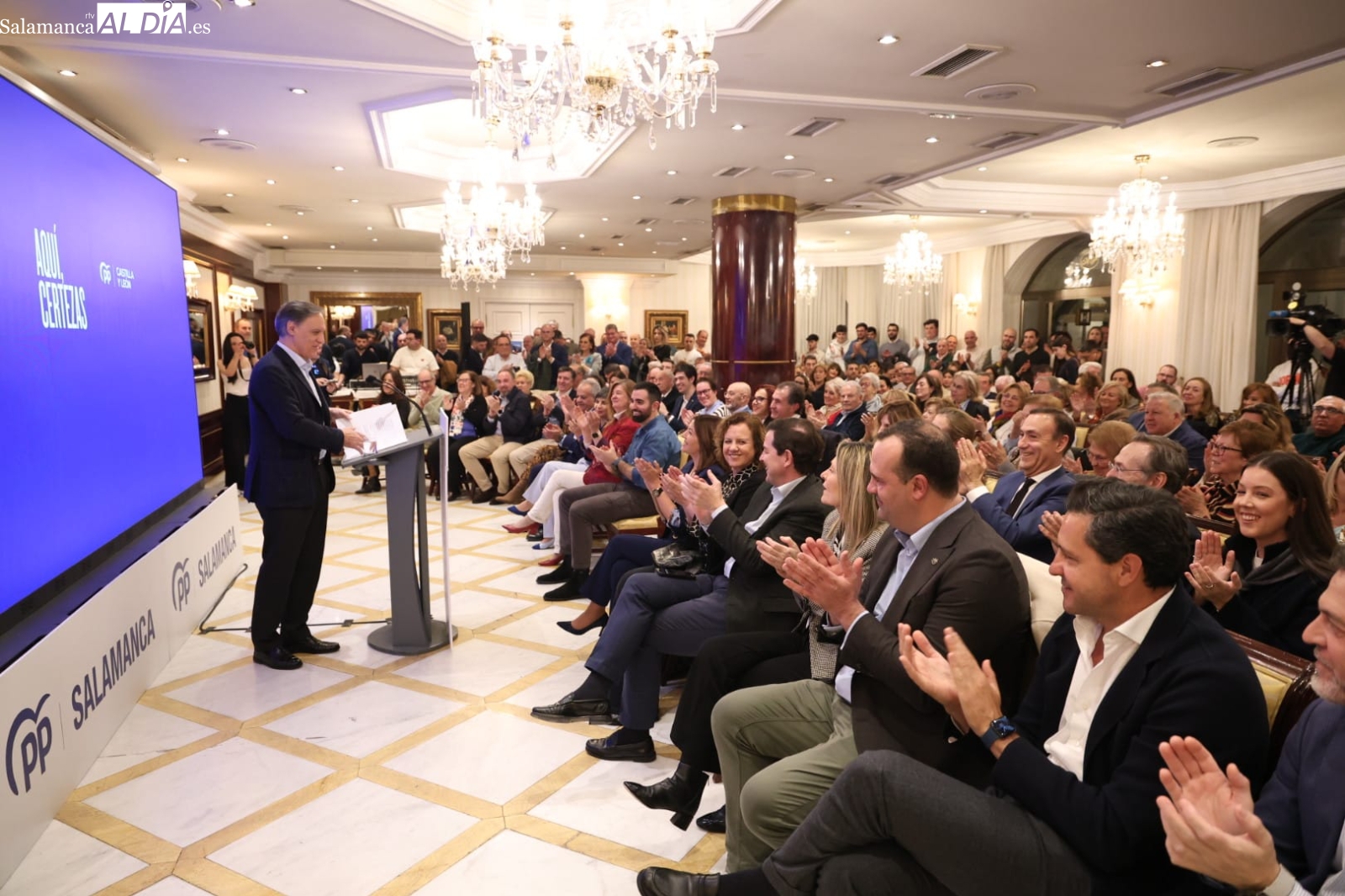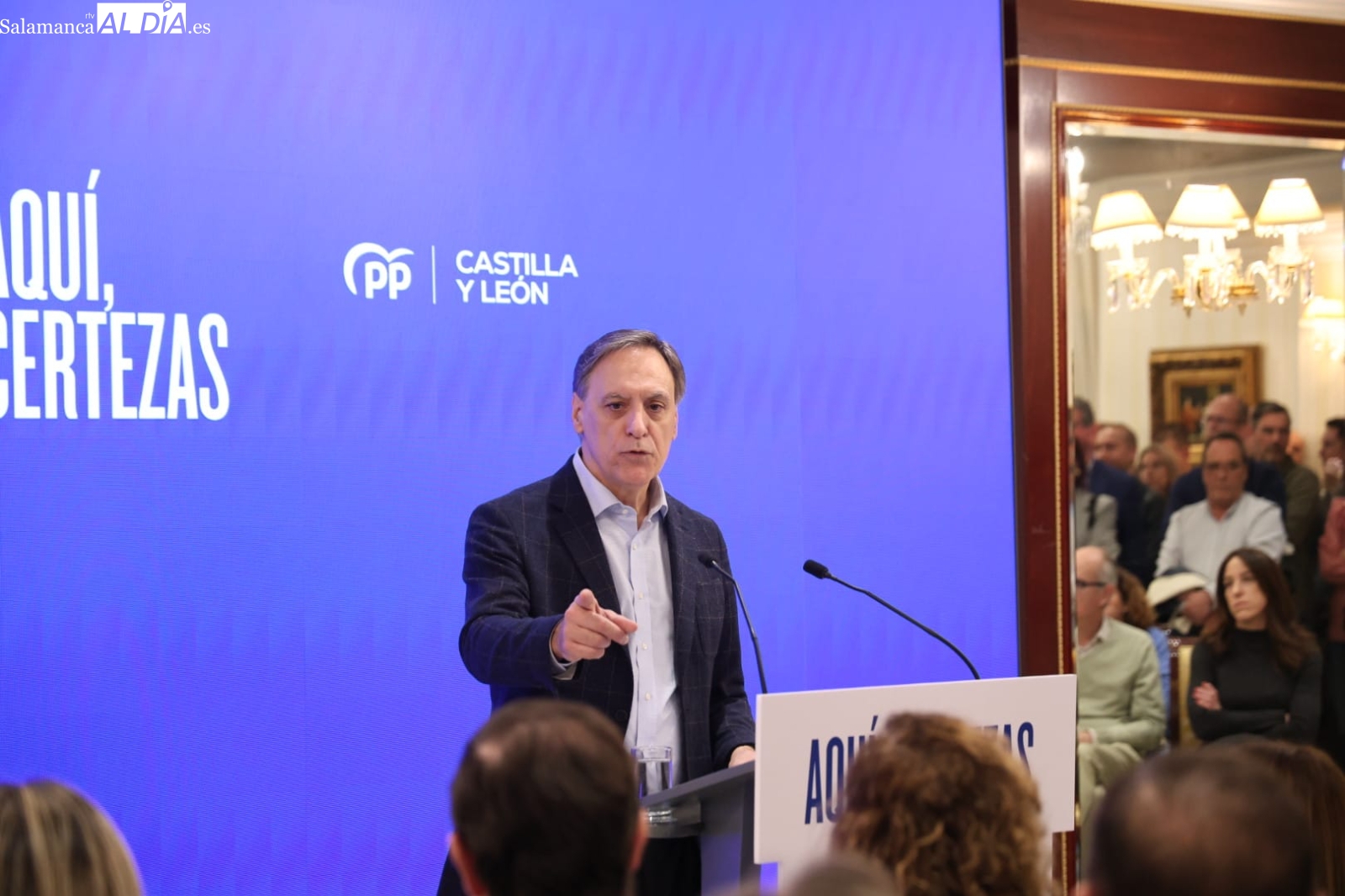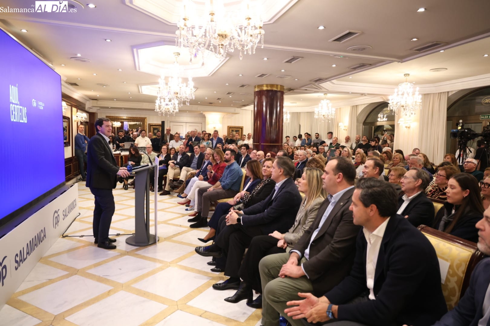 El presidente de la Junta y candidato del Partido Popular a la reelección, Alfonso Fernández Mañueco, abrió este jueves en Salamanca la campaña electoral para las elecciones autonómicas del 15 de mayo con un acto celebrado en el Hotel Alameda Palace. La campaña se desarrolla bajo el lema “Aquí certezas”, con el que el PP pretende destacar su gestión al frente del Gobierno autonómico. El acto puso fin a una jornada en la que el candidato popular mantuvo encuentros en varias provincias de la comunidad antes de cerrar la agenda en Salamanca.