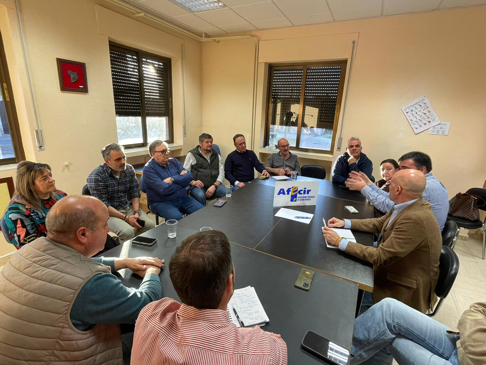La sede de Afecir, en Ciudad Rodrigo, ha acogido esta tarde un encuentro con el candidato a las Cortes de Castilla y León por Salamanca Carlos Menéndez, representante del Grupo Vox, quien acudió acompañado por varios miembros de su candidatura.
