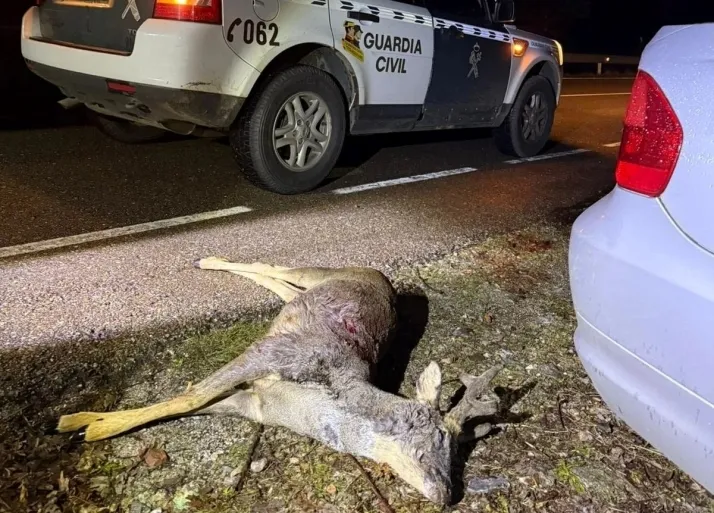 Al proceder a la inspección del vehículo sospechoso, los agentes localizaron en el interior del maletero un corzo macho de grandes dimensiones, cuyos cuernos aún presentaban borra. El animal había sido abatido de un certero disparo de arma de fuego en el cuello. Según el informe policial, el cuerpo no presentaba rigidez y se encontraba caliente, síntomas evidentes de que había sido cazado esa misma noche, poco tiempo antes de la intervención policial.