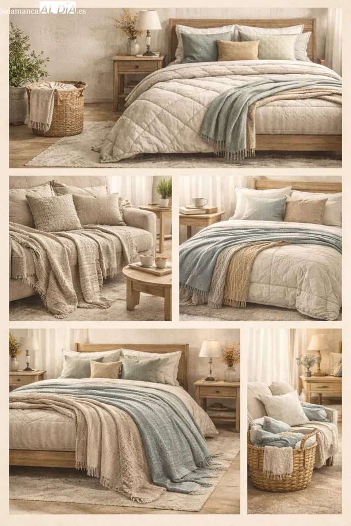 tejidos mixtos. Además de aportar calidez, los colores y estampados de las mantas