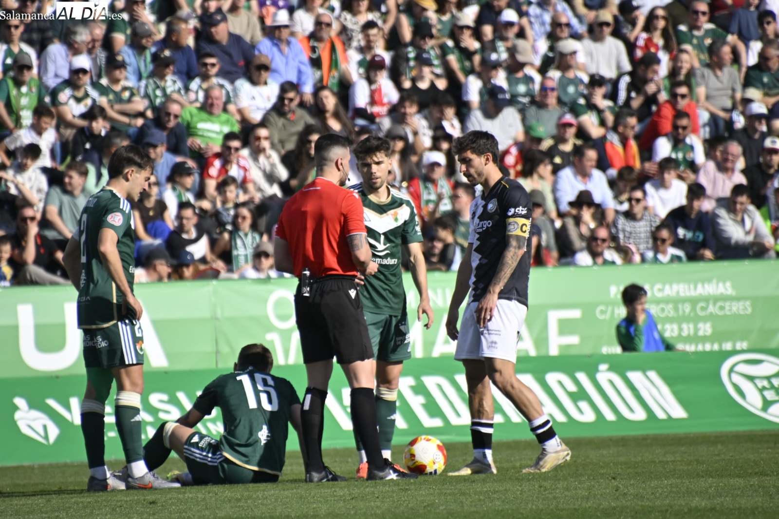 El inicio del segundo tiempo ha venido marcado por un problema médico en la grada charra, dado que una mujer ha requerido de asistencia y el encuentro se ha detenido dos veces, por lo que en 10 minutos no ha rodado el balón hasta que la situación ha sido controlada. No obstante, la hincha ha sido trasladada en camilla hasta la ambulancia y se encuentra OK.