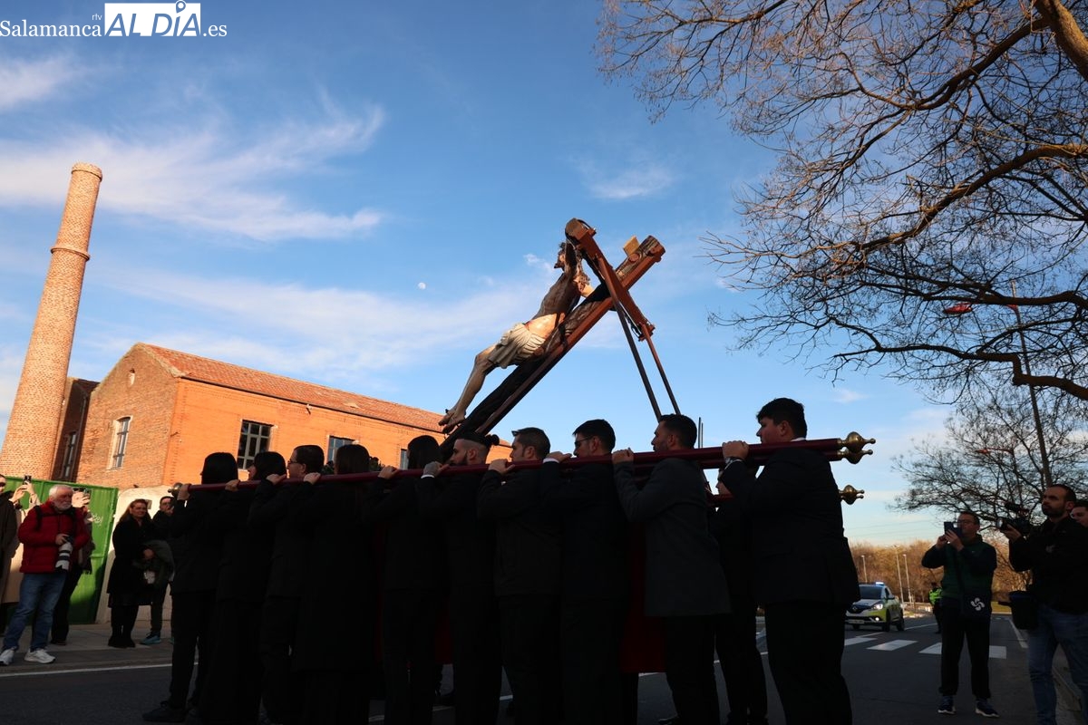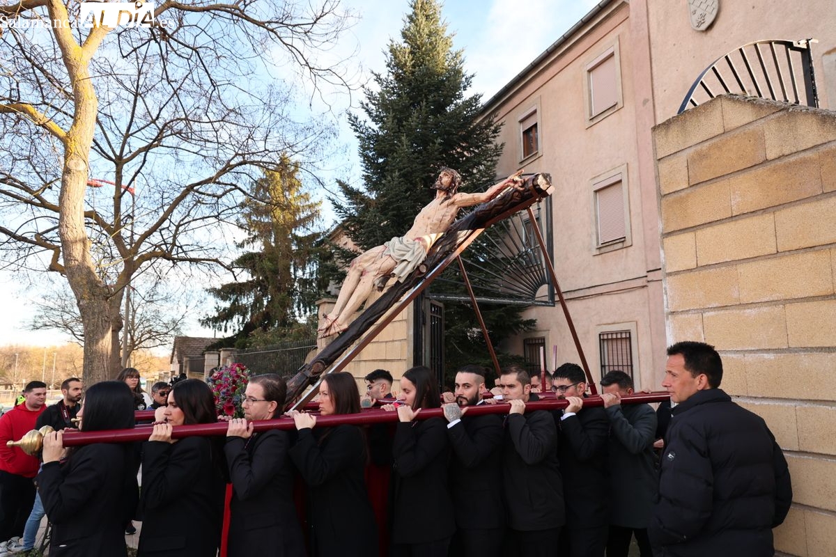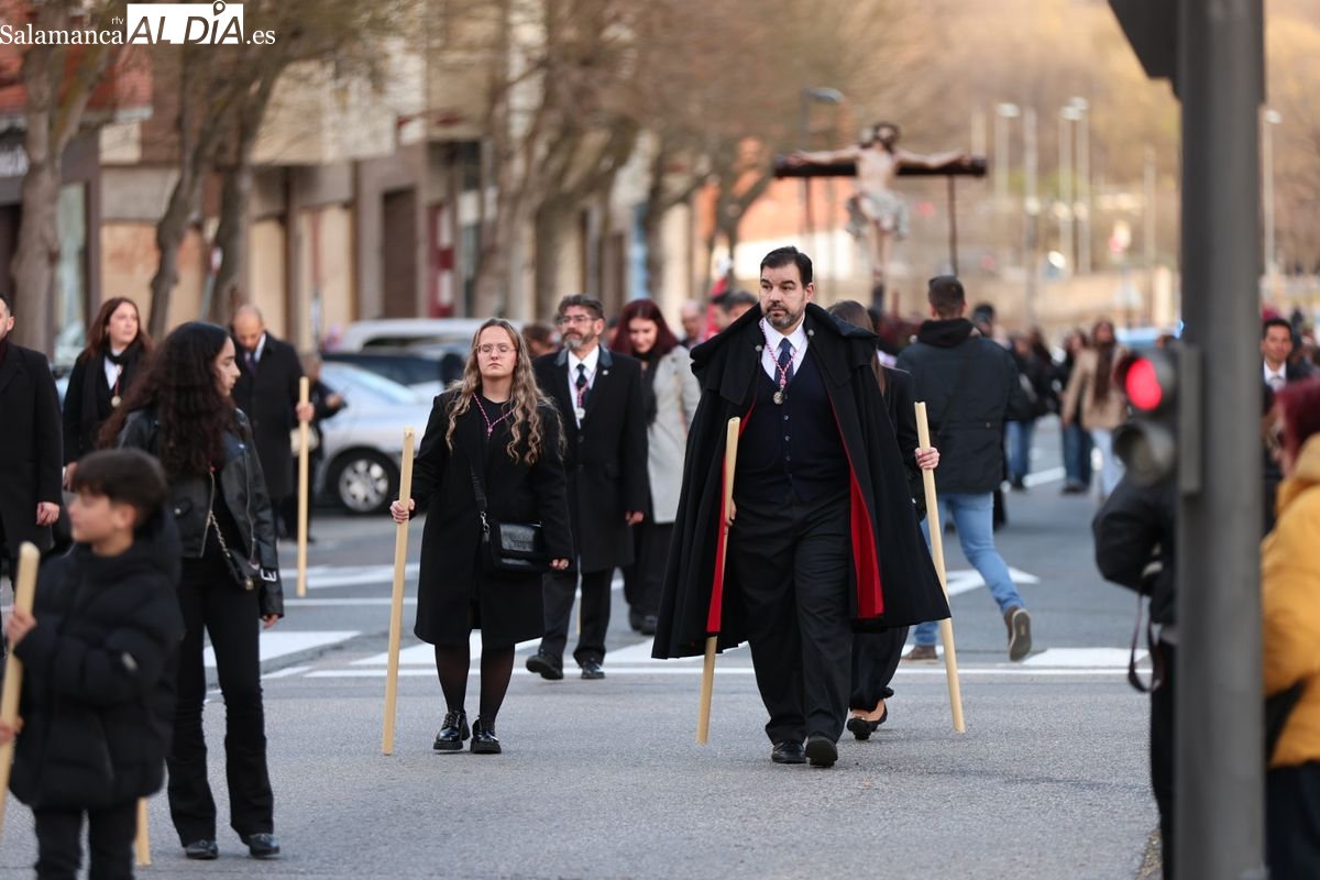 La Hermandad del Perdón ha llevado a cabo este sábado su acto piadoso por las calles de la ciudad. La procesión ha trasladado la imagen titular hasta la residencia de mayores, donde los fieles han participado en el rezo de las estaciones antes de regresar a su sede canónica.