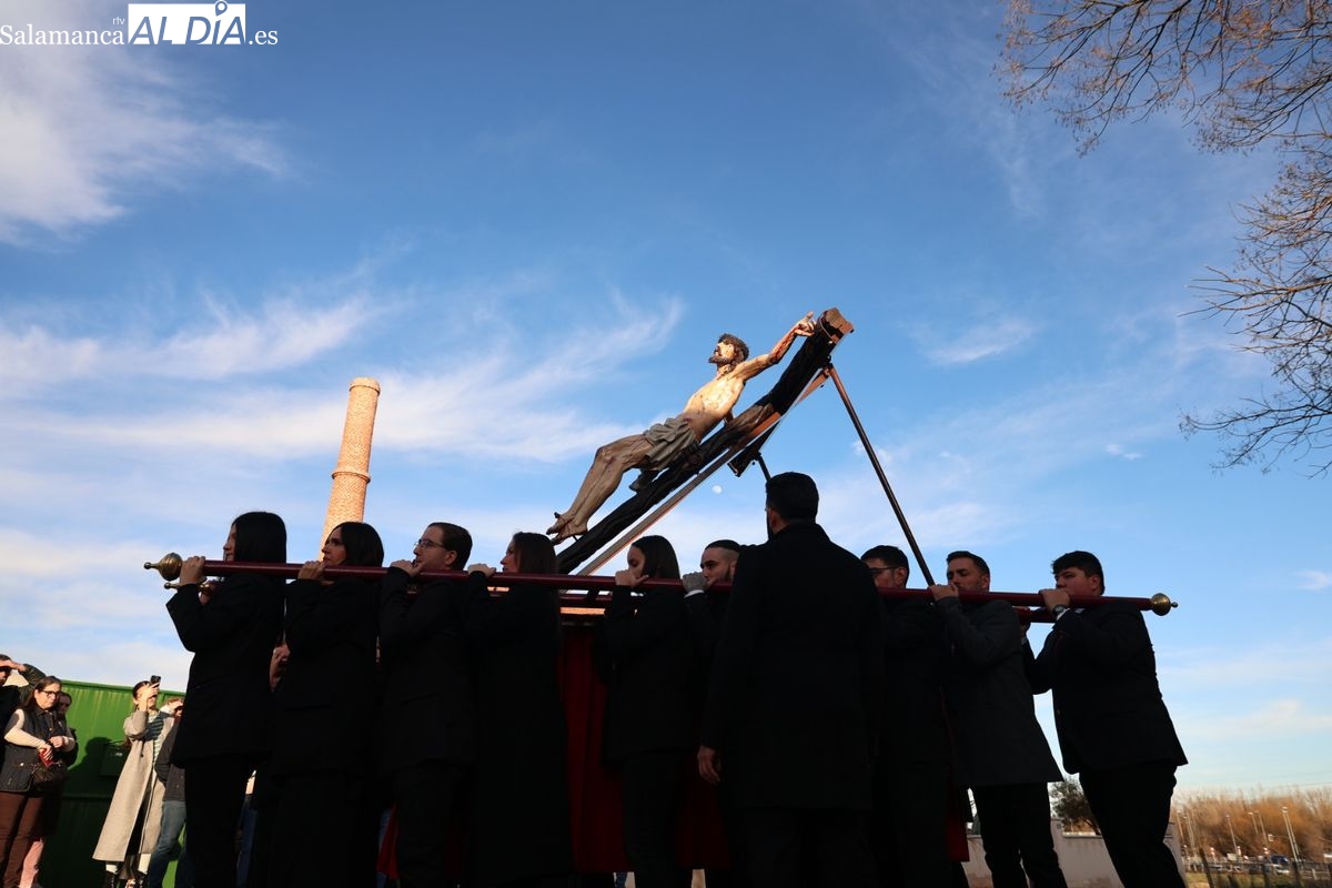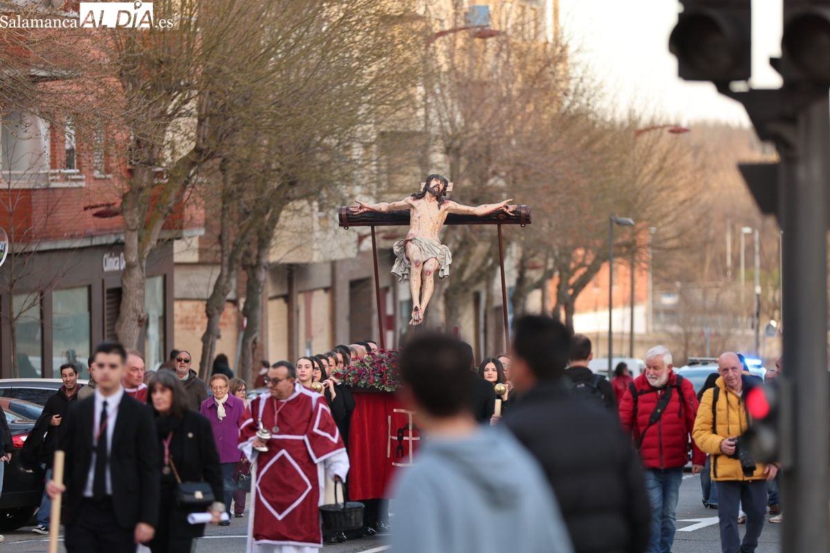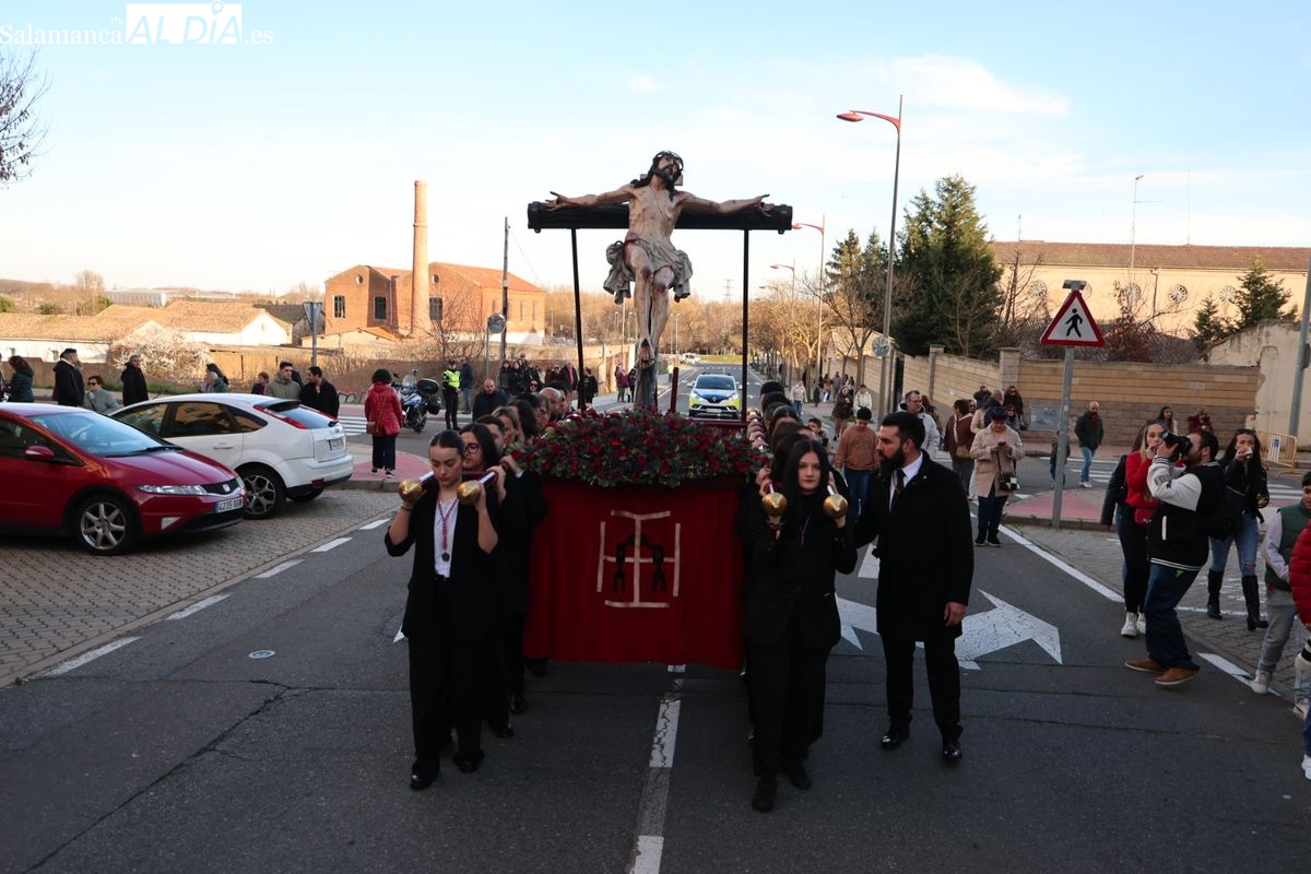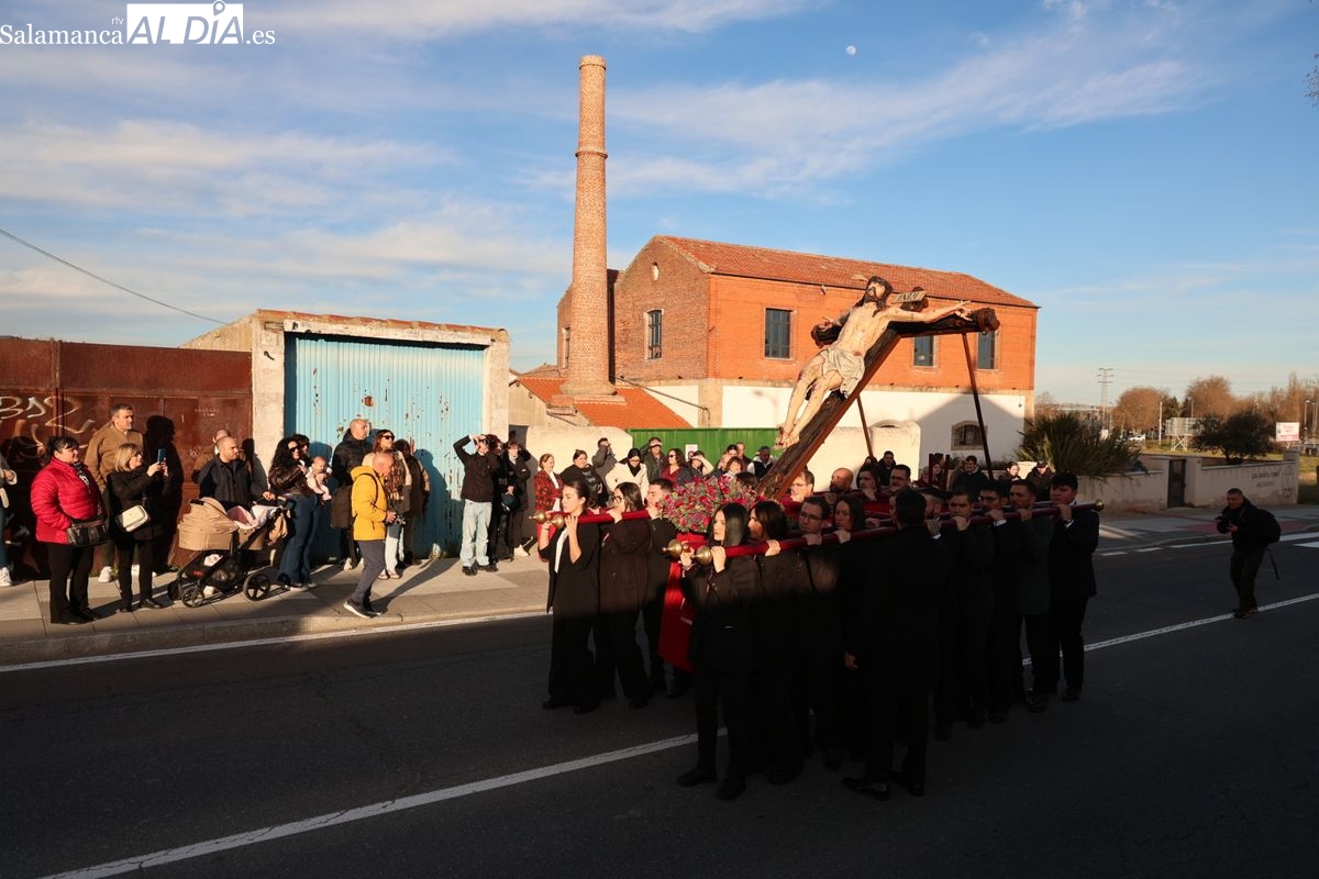 La Hermandad del Perdón ha llevado a cabo este sábado su acto piadoso por las calles de la ciudad. La procesión ha trasladado la imagen titular hasta la residencia de mayores, donde los fieles han participado en el rezo de las estaciones antes de regresar a su sede canónica.