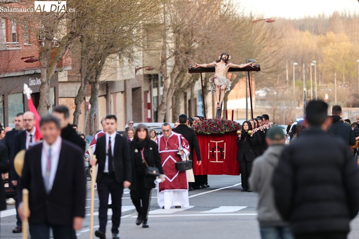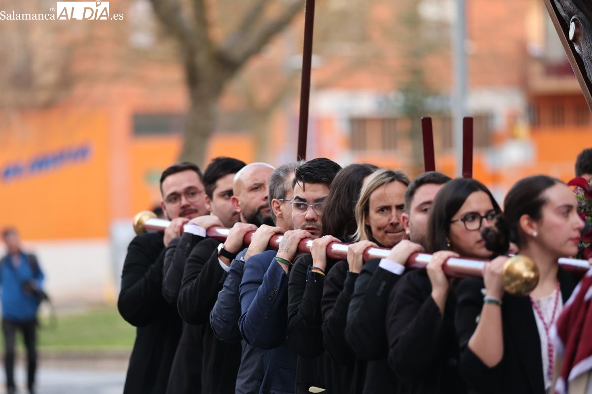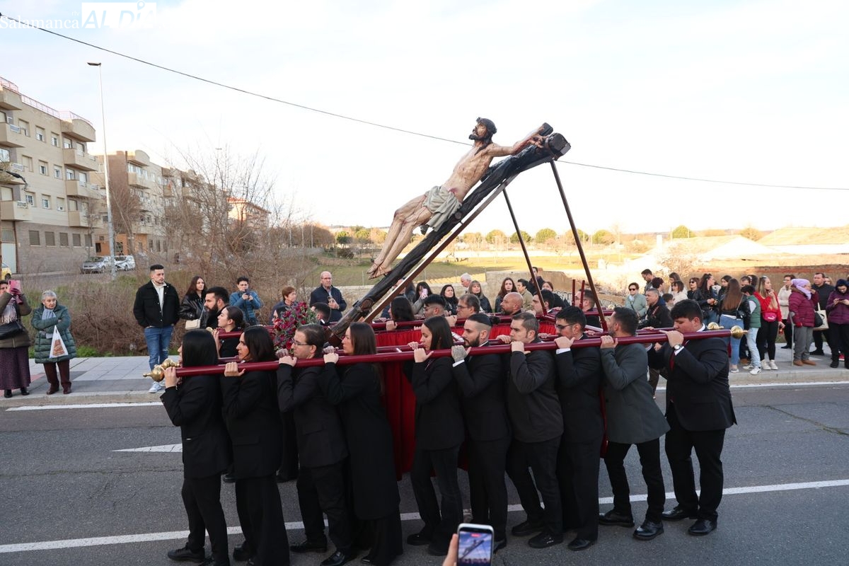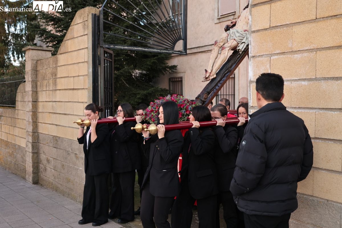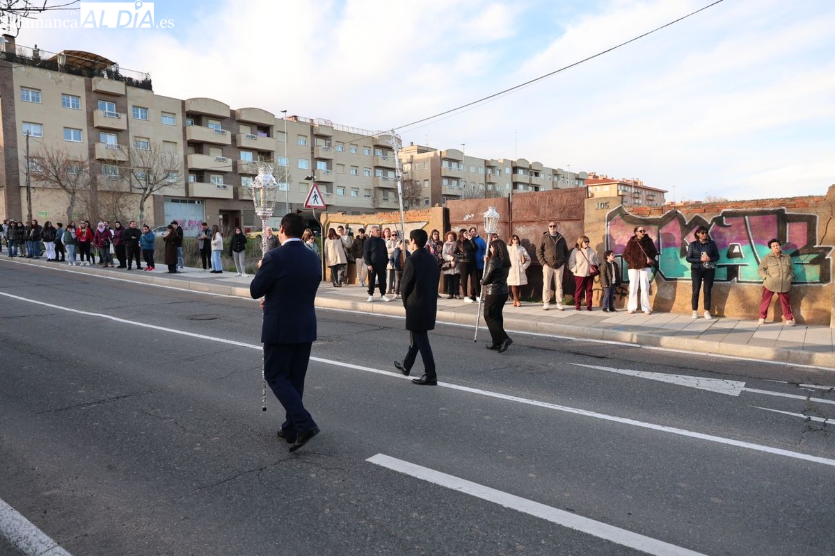 La procesión ha trasladado la talla titular hasta el Centro Residencial de San Rafael, donde se ha realizado el rezo de las correspondientes estaciones del Vía Crucis, compartiendo el acto de oración en las instalaciones de la residencia.