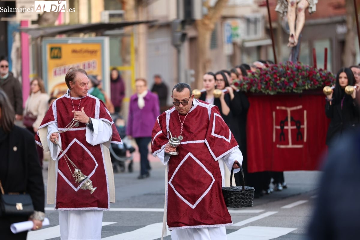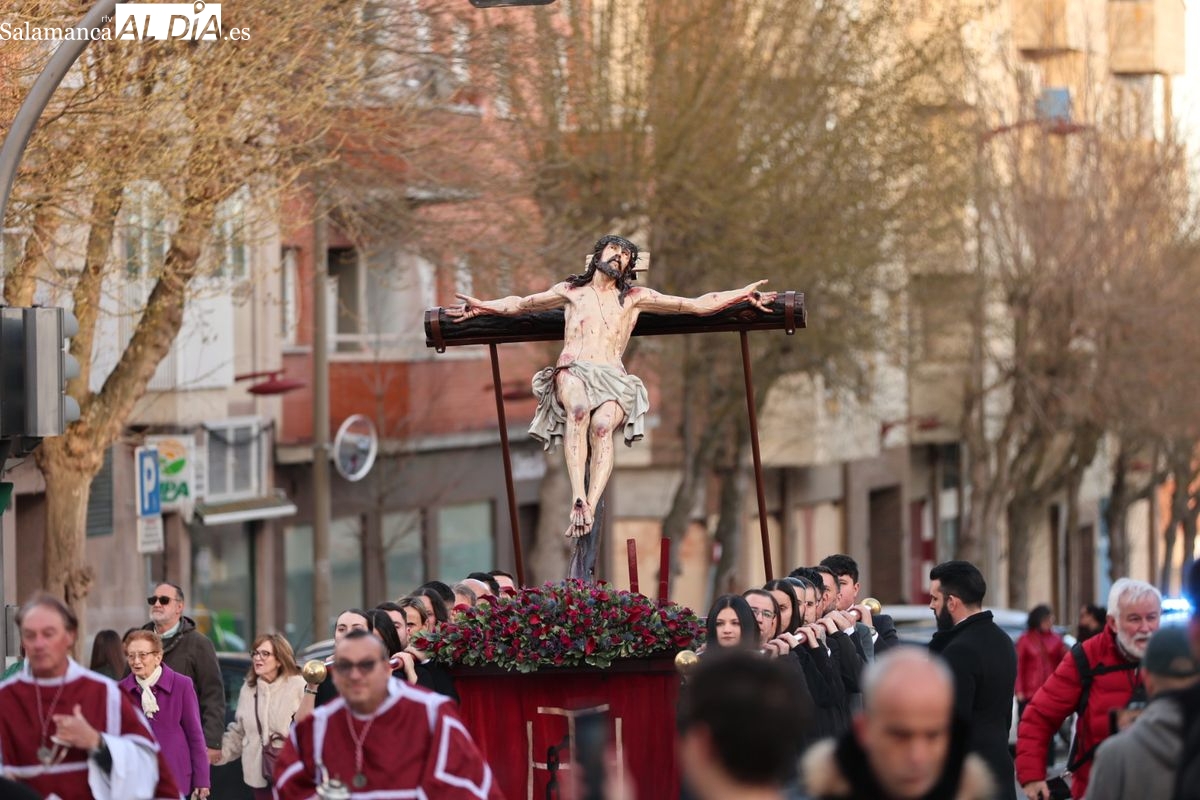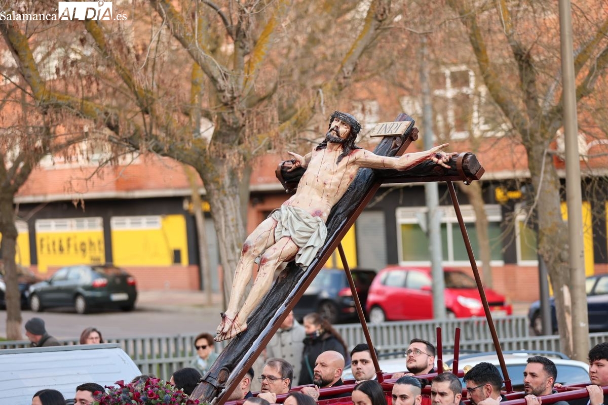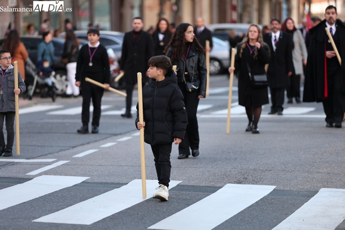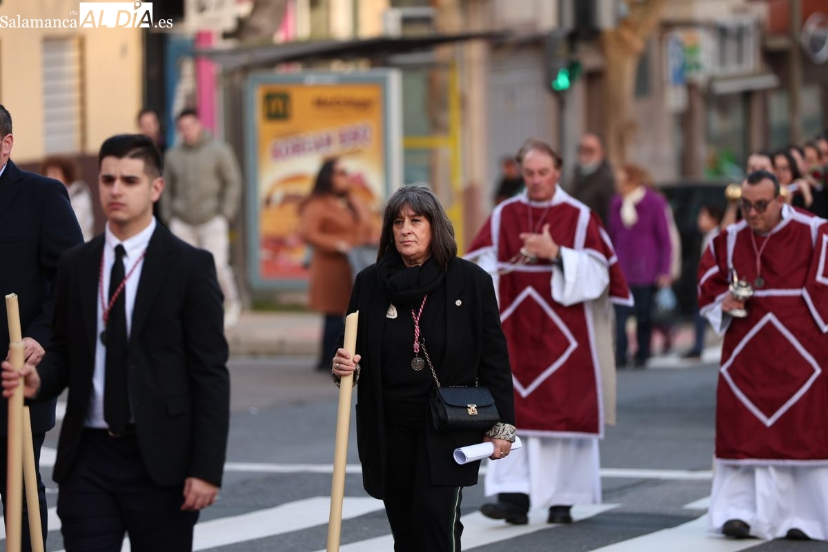 El tradicional Vía Crucis presidido por la imagen de Nuestro Padre Jesús del Perdón ha comenzado alrededor de las 18:00 horas. El cortejo procesional ha iniciado su recorrido desde el Convento de las Madres Bernardas, congregando a hermanos y fieles.