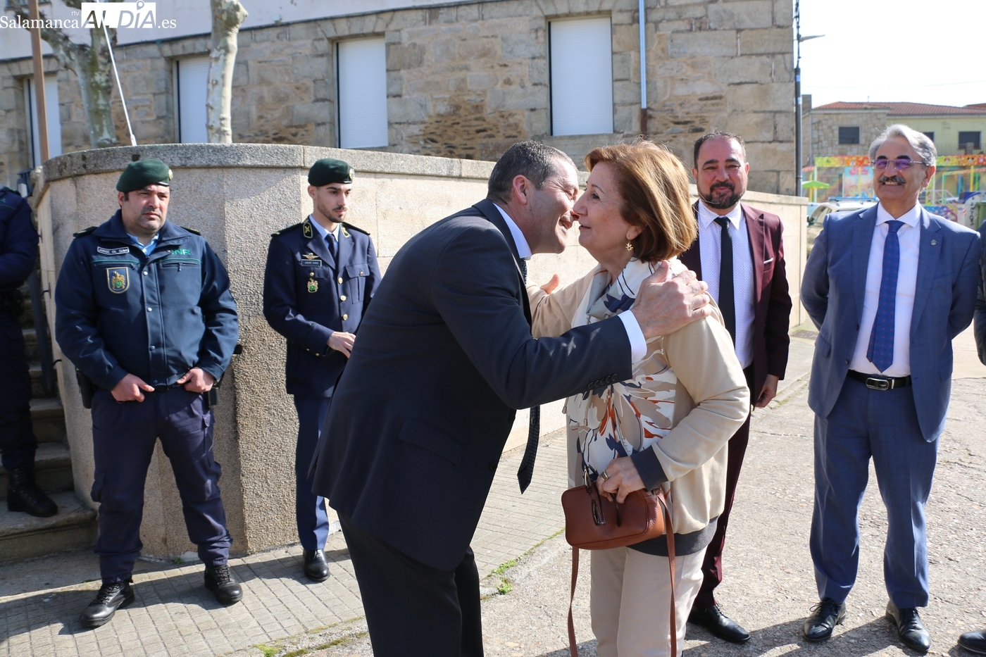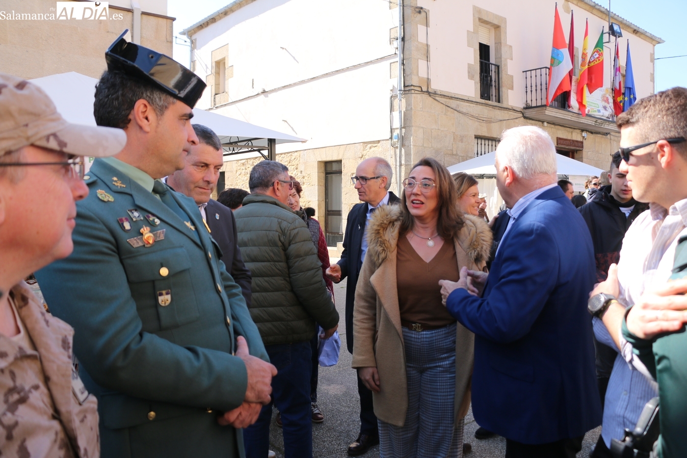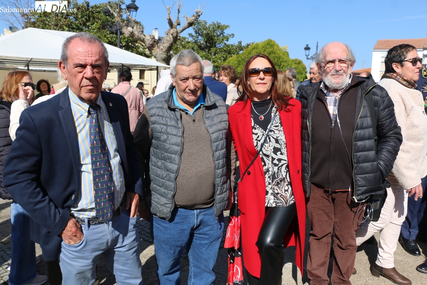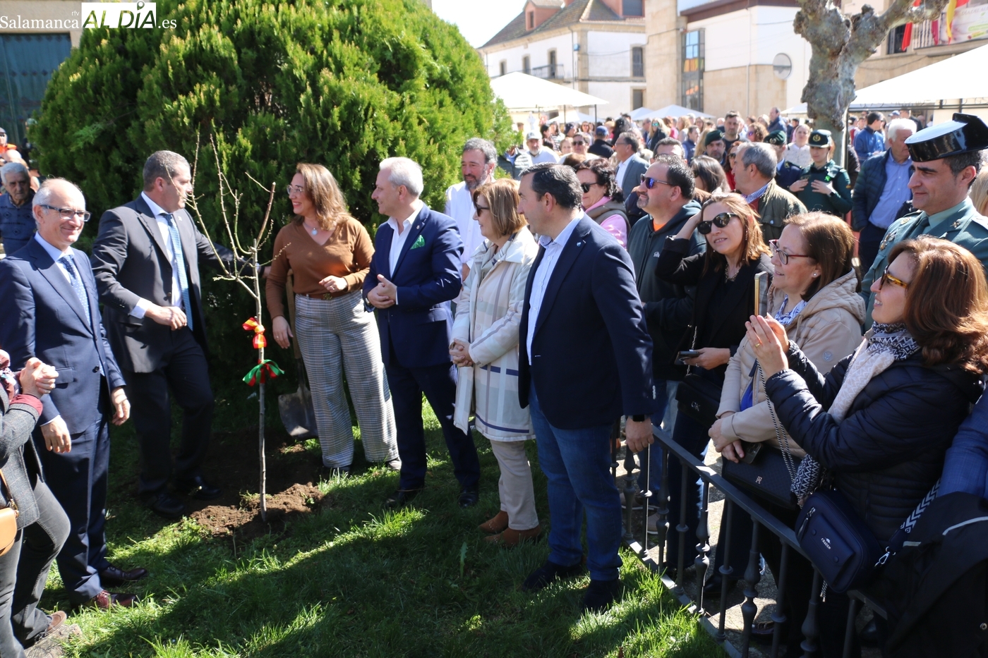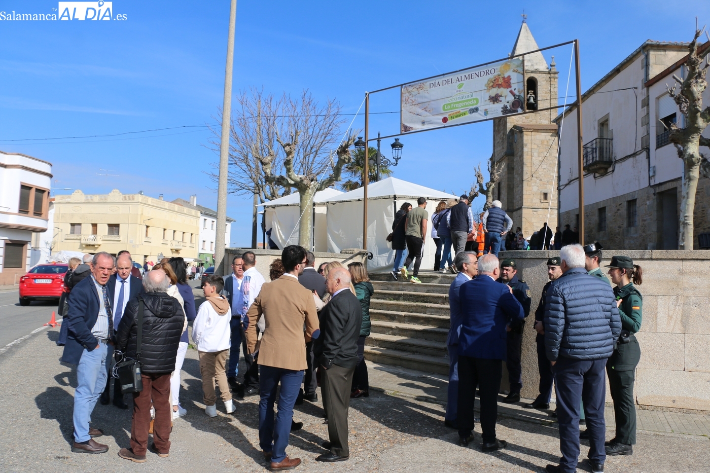 En el apartado institucional, los actos han incluido la tradicional plantación de un almendro en la plaza, símbolo del compromiso con la tierra. La nómina de autoridades ha estado encabezada por el alcalde del municipio, Manuel Alonso; el presidente de la Diputación de Salamanca, Javier Iglesias; y la consejera de Agricultura, Ganadería y Desarrollo Rural de la Junta de Castilla y León, María González Corral, quien ha ejercido como pregonera de esta edición.