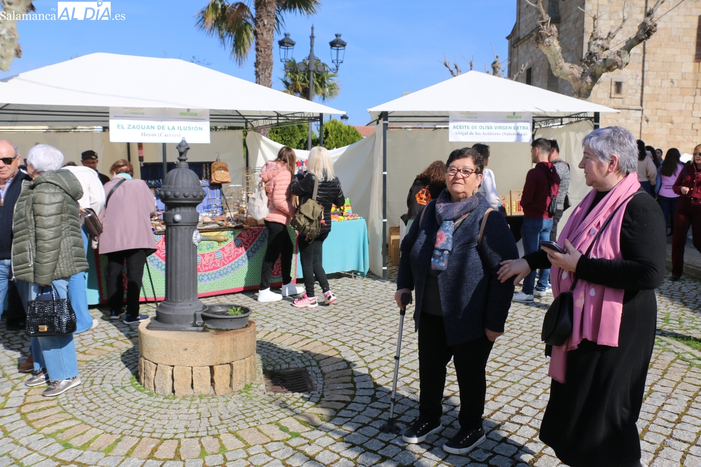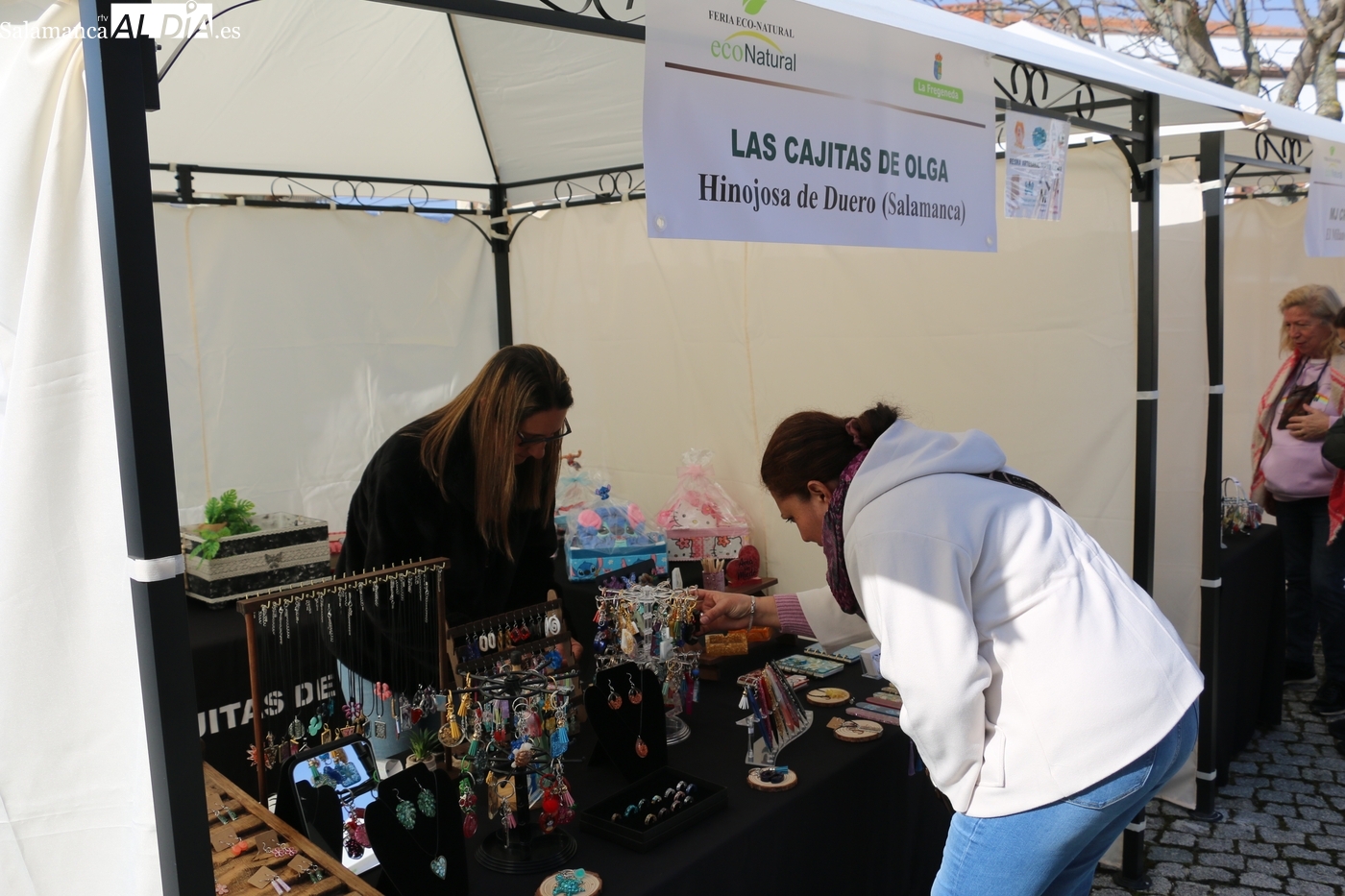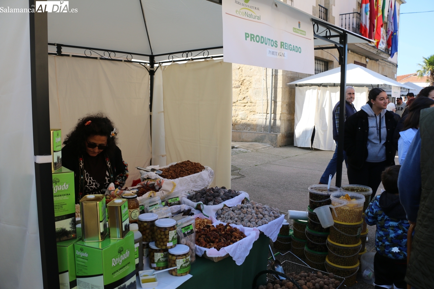 La actividad comercial se ha concentrado en la Plaza de La Fregeneda con la apertura de la Feria Eco-Natural. Un total de 27 expositores han mostrado la riqueza agroalimentaria y artesana de la región, destacando los quesos de García Filloy, los productos derivados de la almendra de la firma local Con-Almendra, así como una variada oferta de embutidos, vinos y aceites de oliva de Las Arribes.