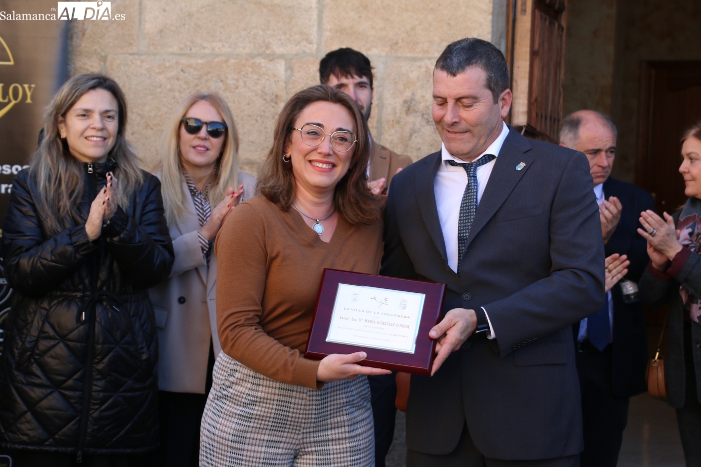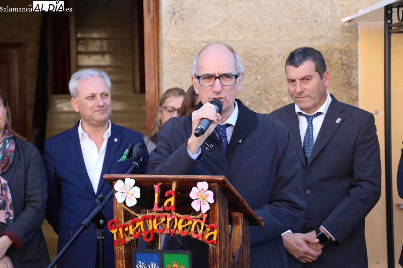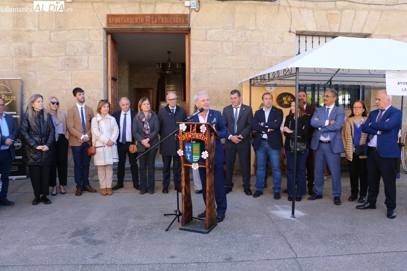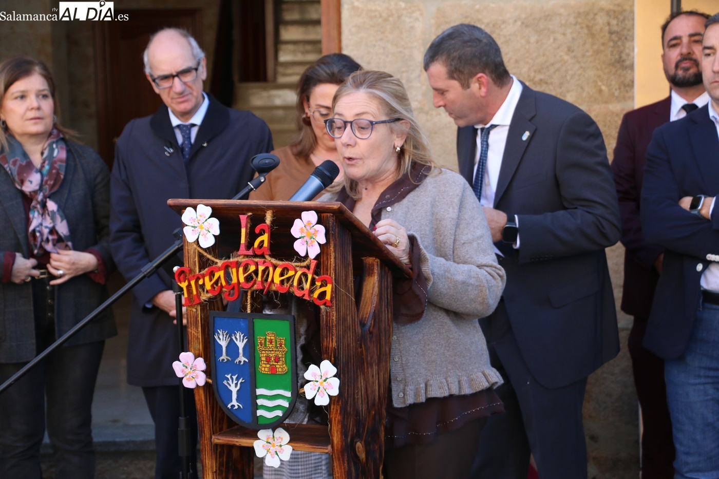 El momento central ha sido el pregón de la consejera María González Corral, quien ha ensalzado las virtudes del almendro no solo como paisaje, sino como "indiscutible motor de actividad económica para esta zona de la Raya". González Corral ha enumerado los beneficios saludables de la almendra y ha lanzado un mensaje de defensa del medio rural, abogando por la igualdad de oportunidades para los vecinos de municipios pequeños. El alcalde ha cerrado el acto entregando una placa conmemorativa a la consejera.