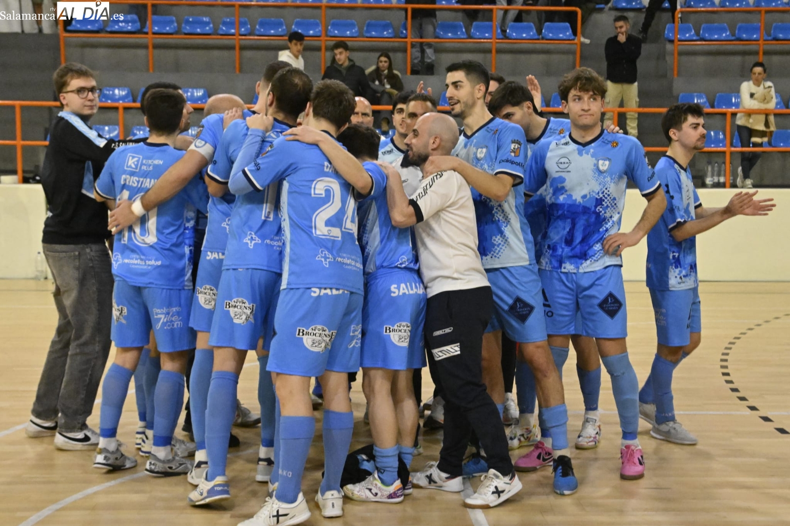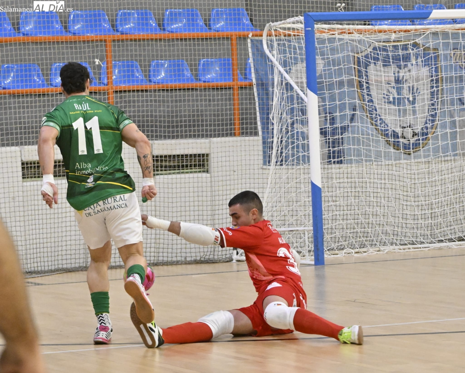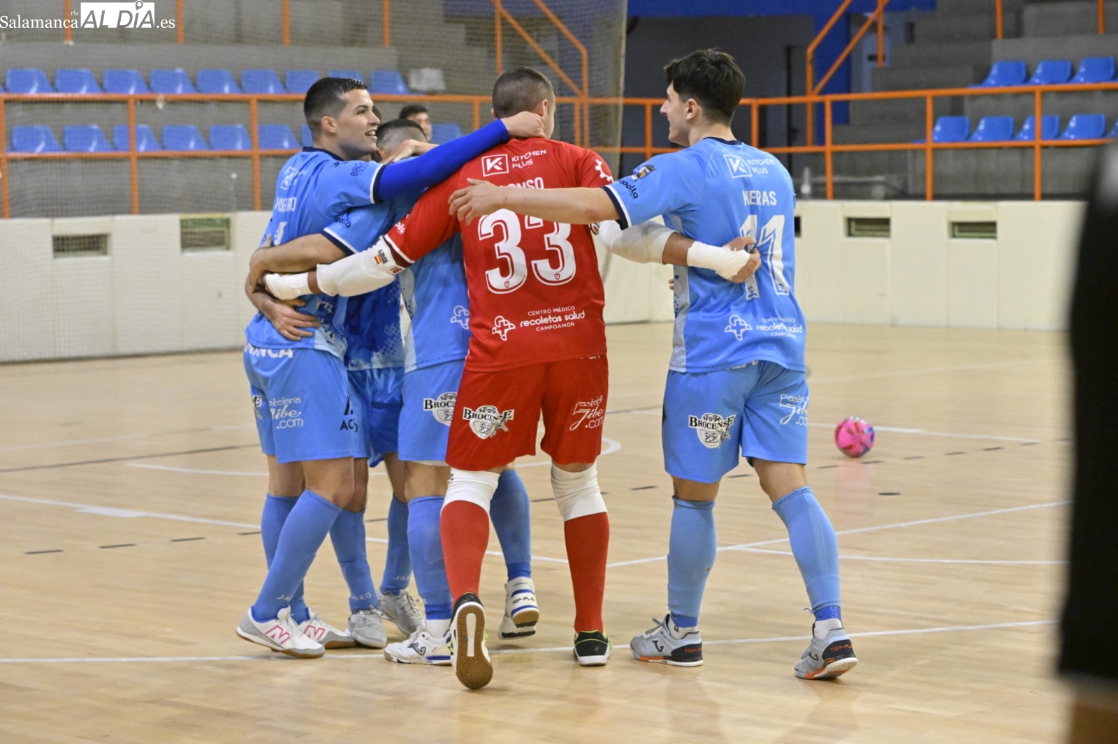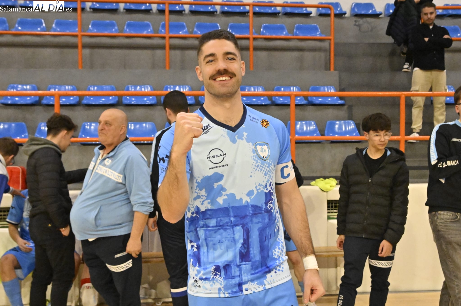 De hecho, Jorge Blázquez ha conseguido su doblete particular a poco más de 10 minutos y ha empatado el derbi, por lo que la emoción ha estado servida. Pese a ello, el Salamanca FS se ha vuelto a adelantar con el segundo gol de Heras a 8' y todo se les ha puesto muy de cara con el 5-3 de un Cristian -hat-trick mediante- en estado de gracia. Finalmente, Tomi ha sentenciado con el 6-3 un bonito duelo y Moreiro se ha recreado con dos tantos para el definitivo 8-3 -Ratero, expulsado por doble amarilla-.