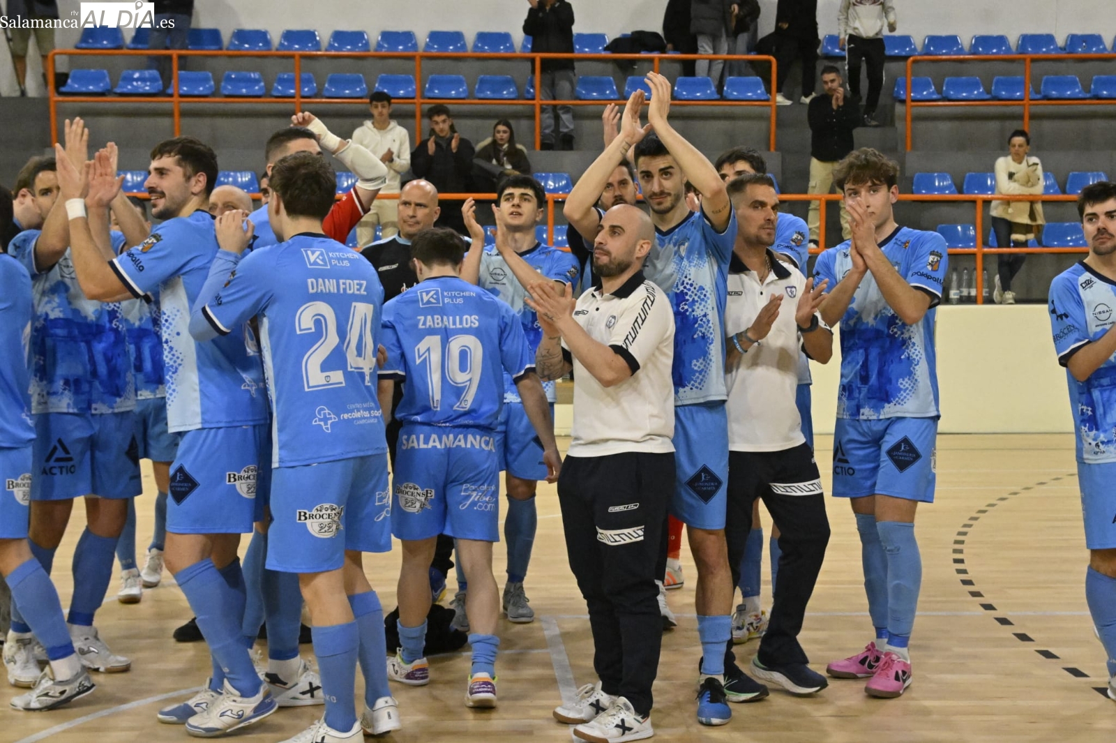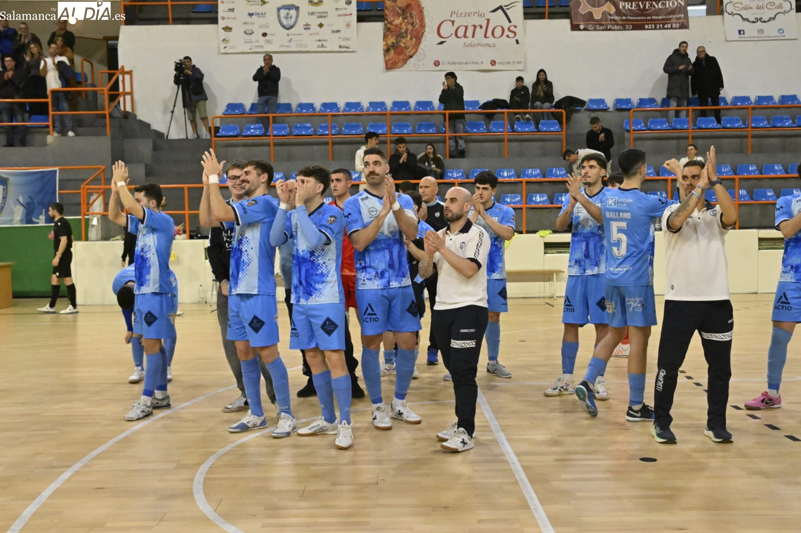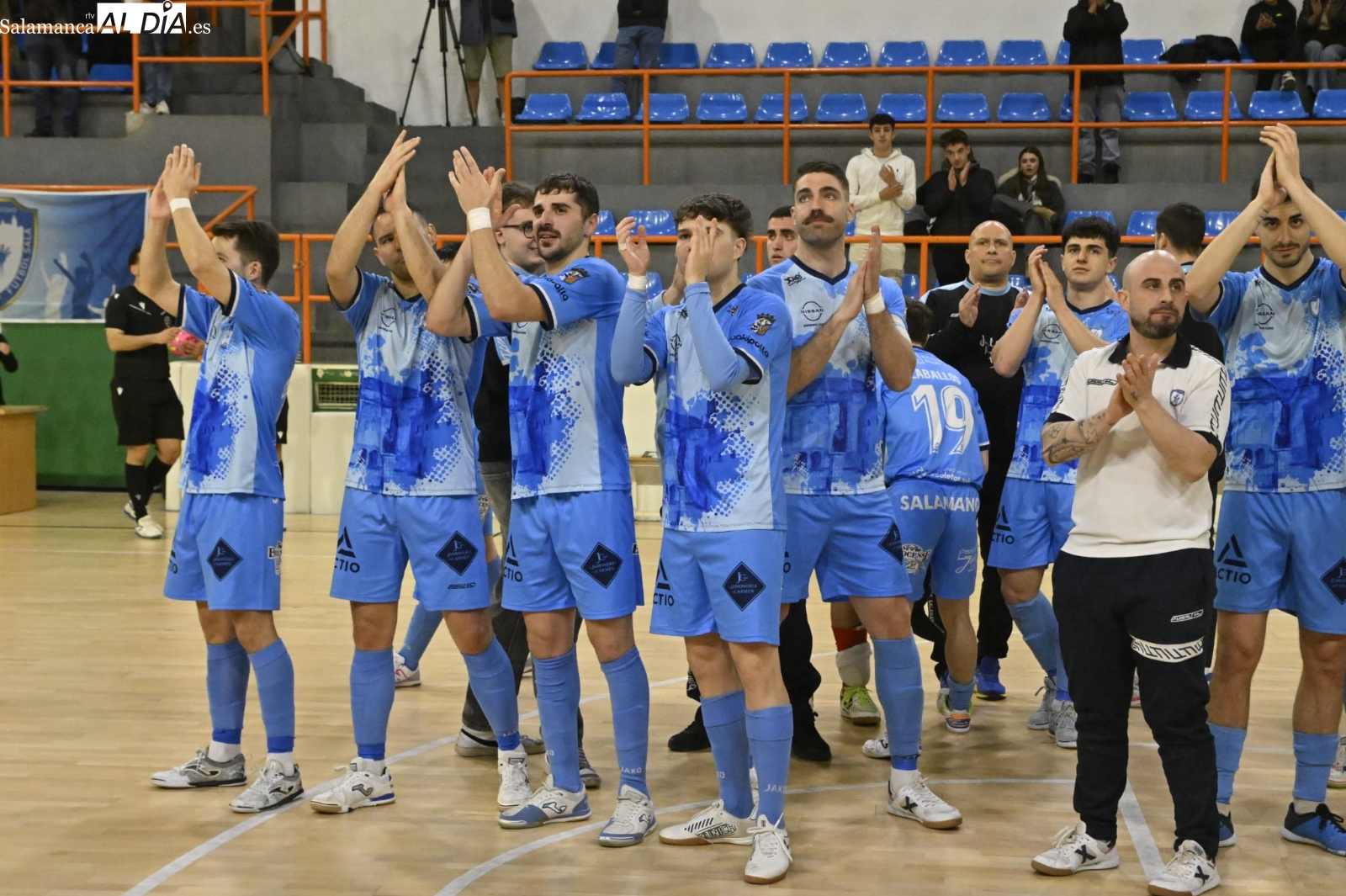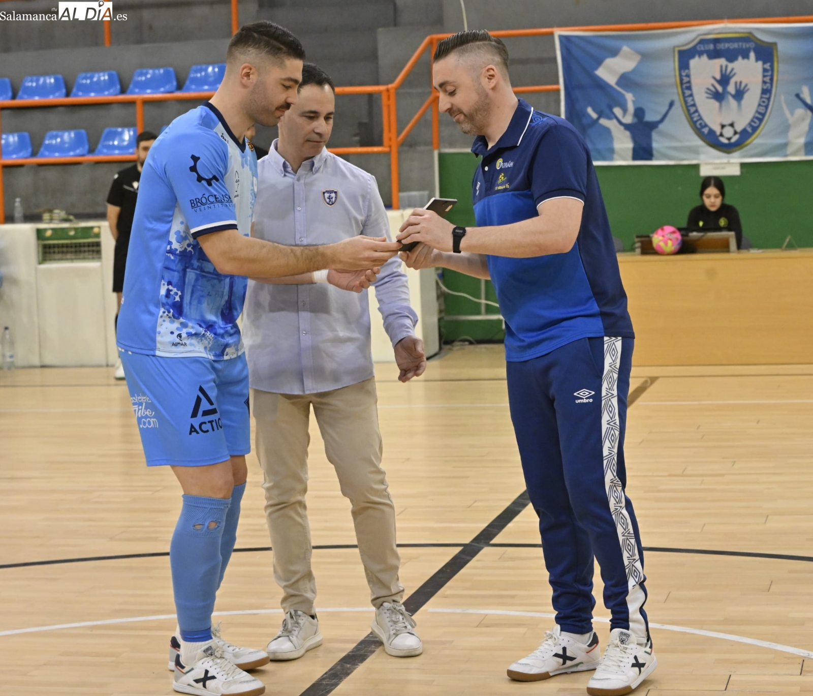 De hecho, Jorge Blázquez ha conseguido su doblete particular a poco más de 10 minutos y ha empatado el derbi, por lo que la emoción ha estado servida. Pese a ello, el Salamanca FS se ha vuelto a adelantar con el segundo gol de Heras a 8' y todo se les ha puesto muy de cara con el 5-3 de un Cristian -hat-trick mediante- en estado de gracia. Finalmente, Tomi ha sentenciado con el 6-3 un bonito duelo y Moreiro se ha recreado con dos tantos para el definitivo 8-3 -Ratero, expulsado por doble amarilla-.
