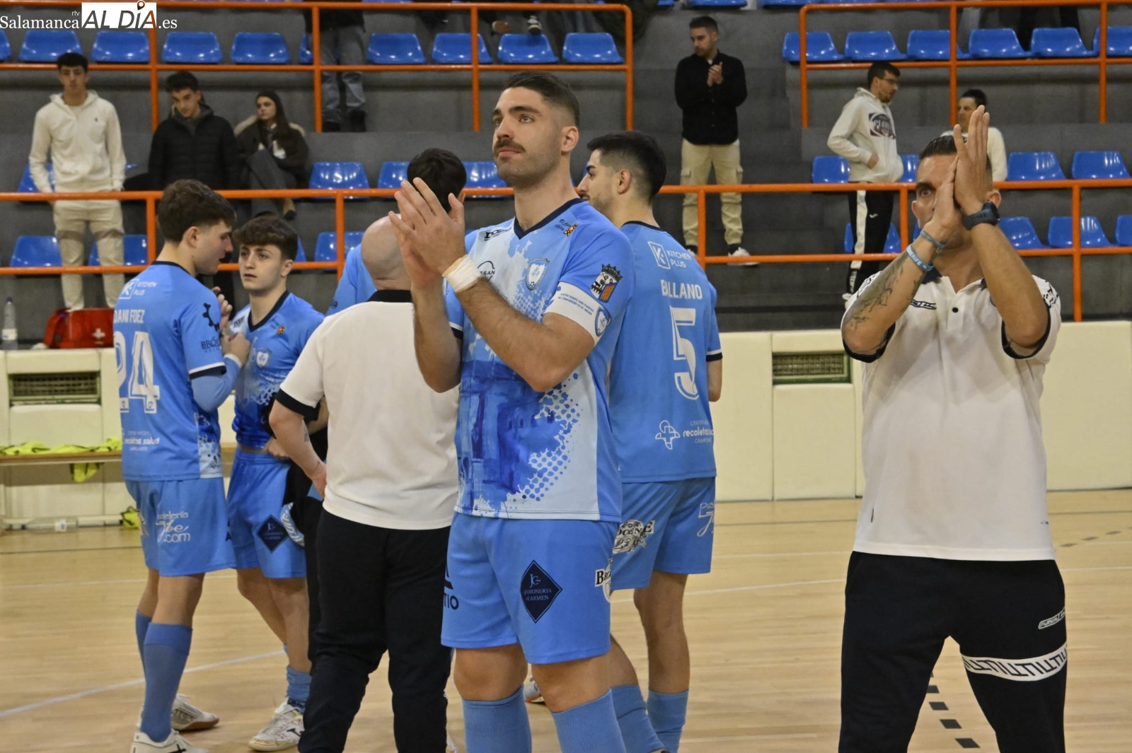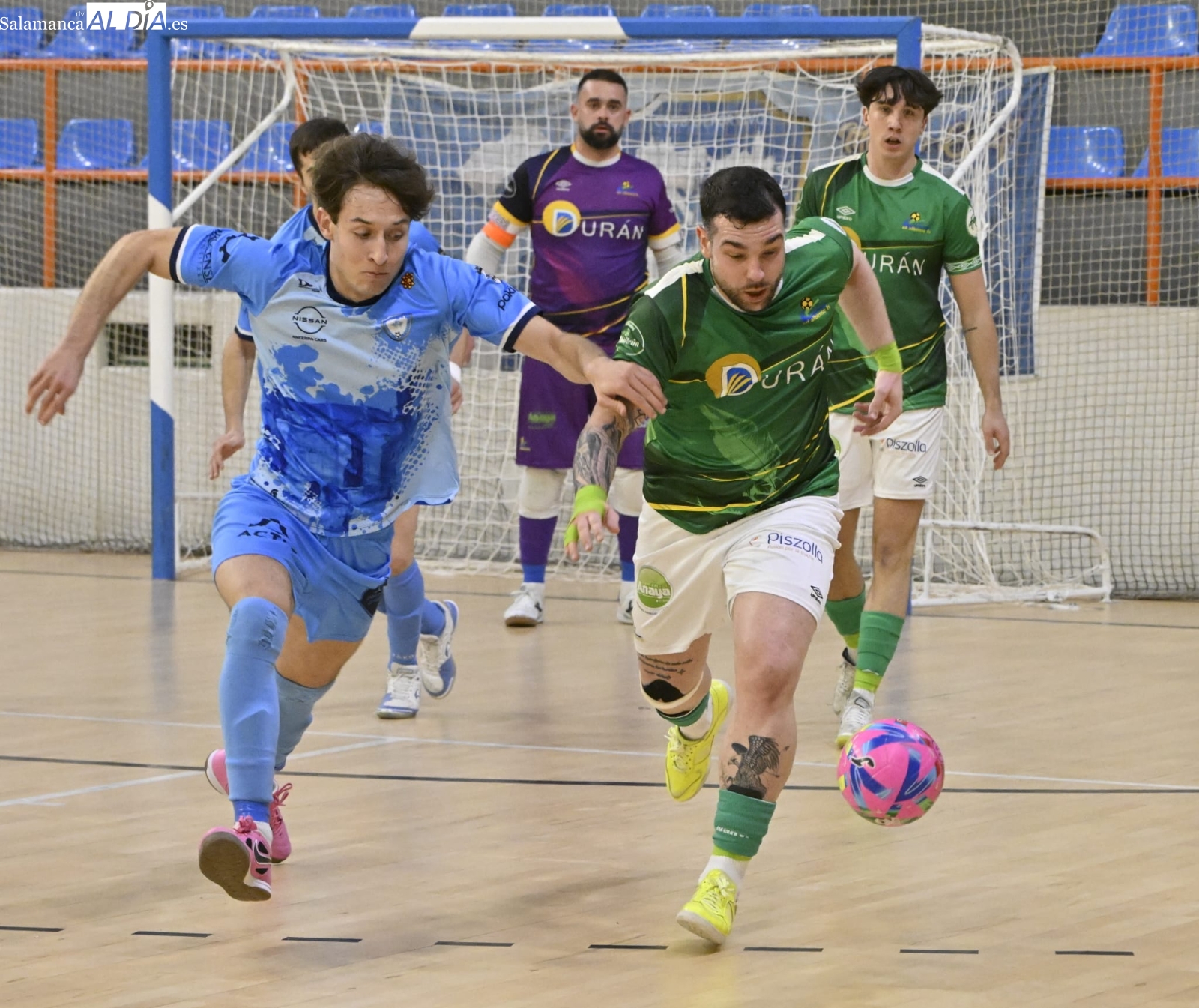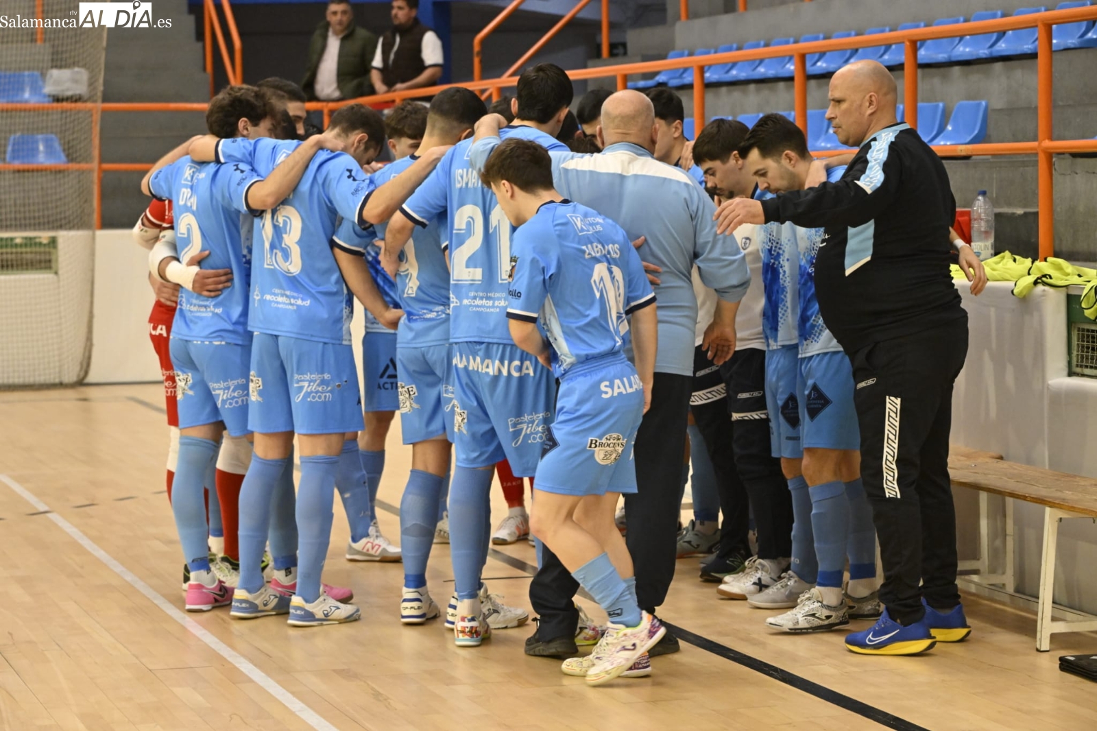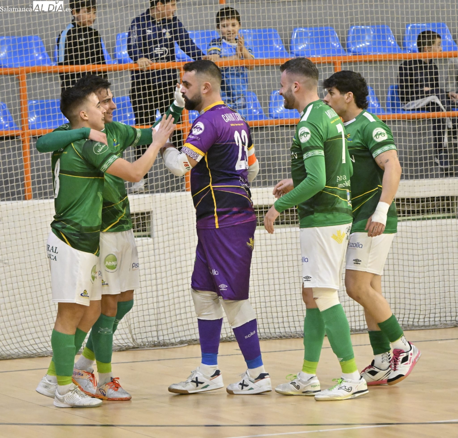 De hecho, Jorge Blázquez ha conseguido su doblete particular a poco más de 10 minutos y ha empatado el derbi, por lo que la emoción ha estado servida. Pese a ello, el Salamanca FS se ha vuelto a adelantar con el segundo gol de Heras a 8' y todo se les ha puesto muy de cara con el 5-3 de un Cristian -hat-trick mediante- en estado de gracia. Finalmente, Tomi ha sentenciado con el 6-3 un bonito duelo y Moreiro se ha recreado con dos tantos para el definitivo 8-3 -Ratero, expulsado por doble amarilla-.