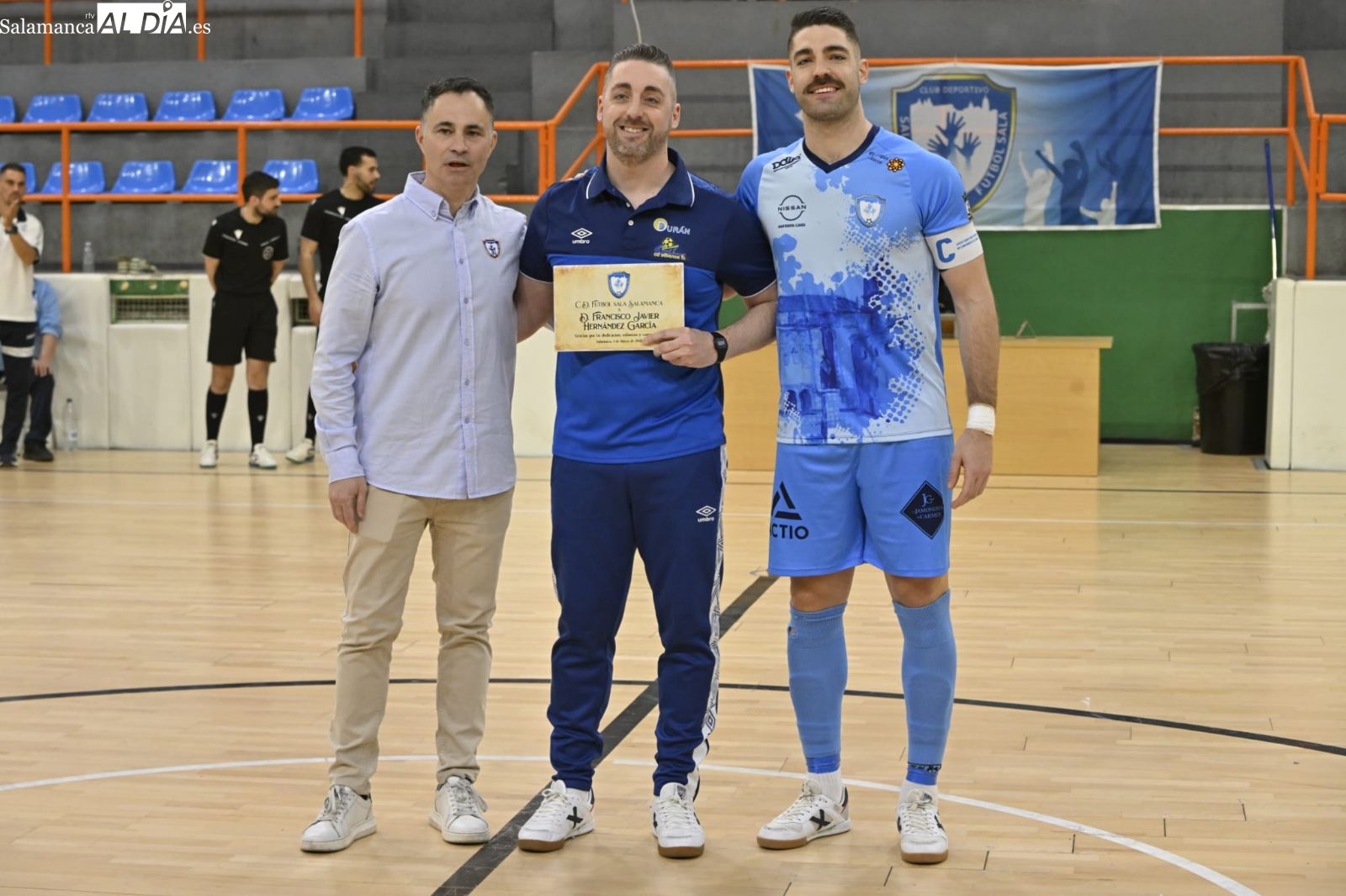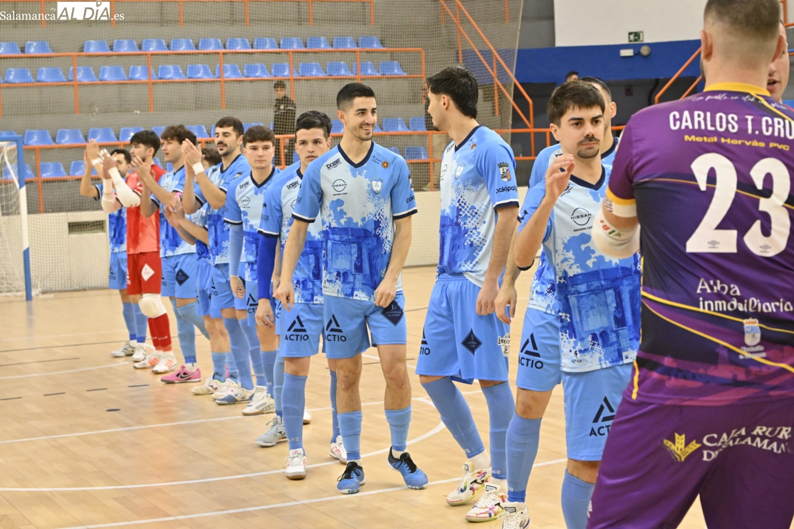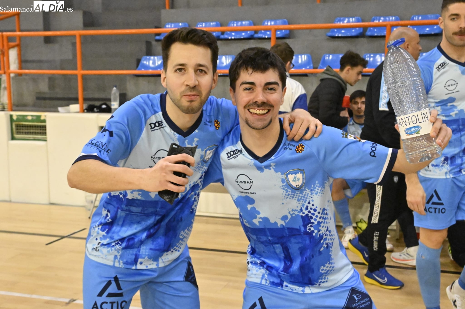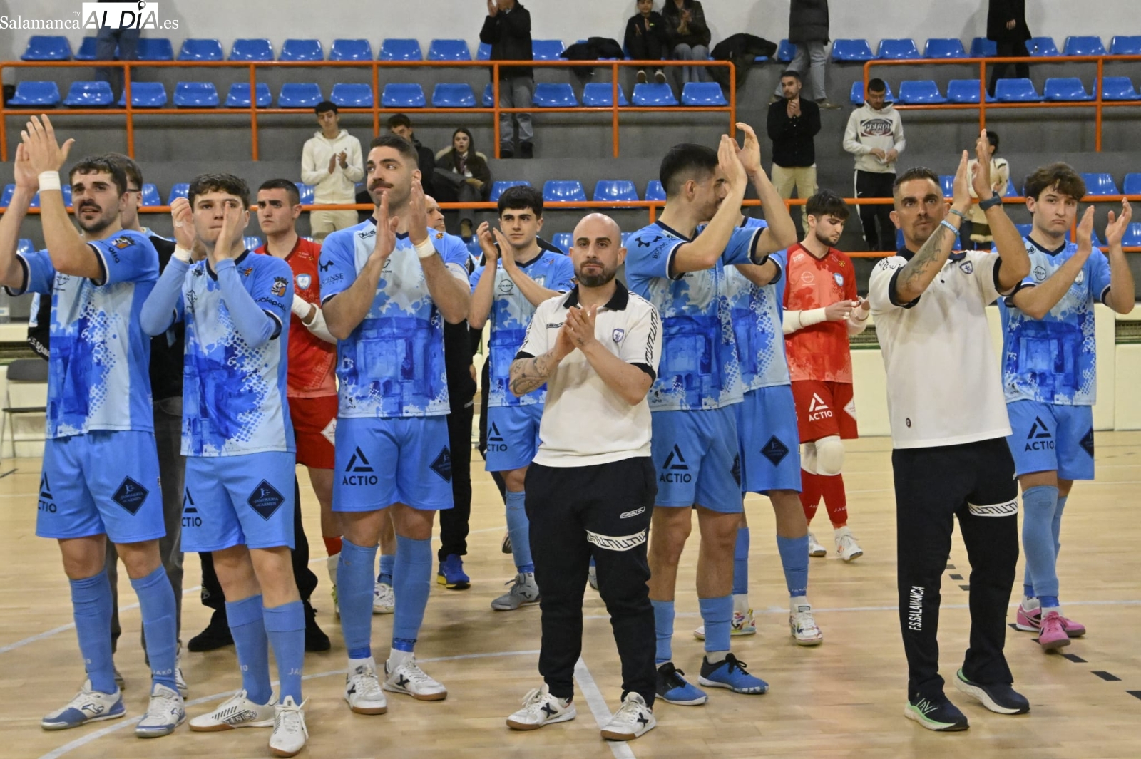 De hecho, Jorge Blázquez ha conseguido su doblete particular a poco más de 10 minutos y ha empatado el derbi, por lo que la emoción ha estado servida. Pese a ello, el Salamanca FS se ha vuelto a adelantar con el segundo gol de Heras a 8' y todo se les ha puesto muy de cara con el 5-3 de un Cristian -hat-trick mediante- en estado de gracia. Finalmente, Tomi ha sentenciado con el 6-3 un bonito duelo y Moreiro se ha recreado con dos tantos para el definitivo 8-3 -Ratero, expulsado por doble amarilla-.