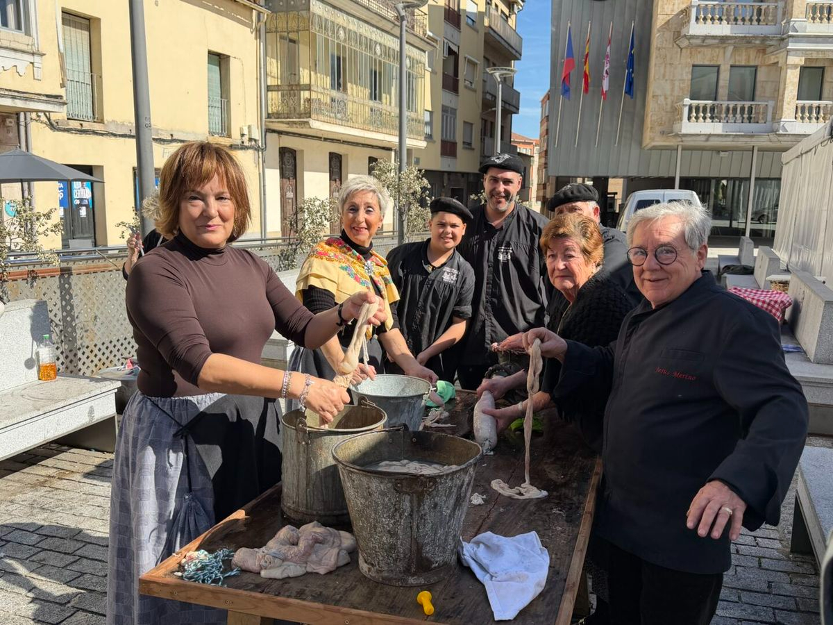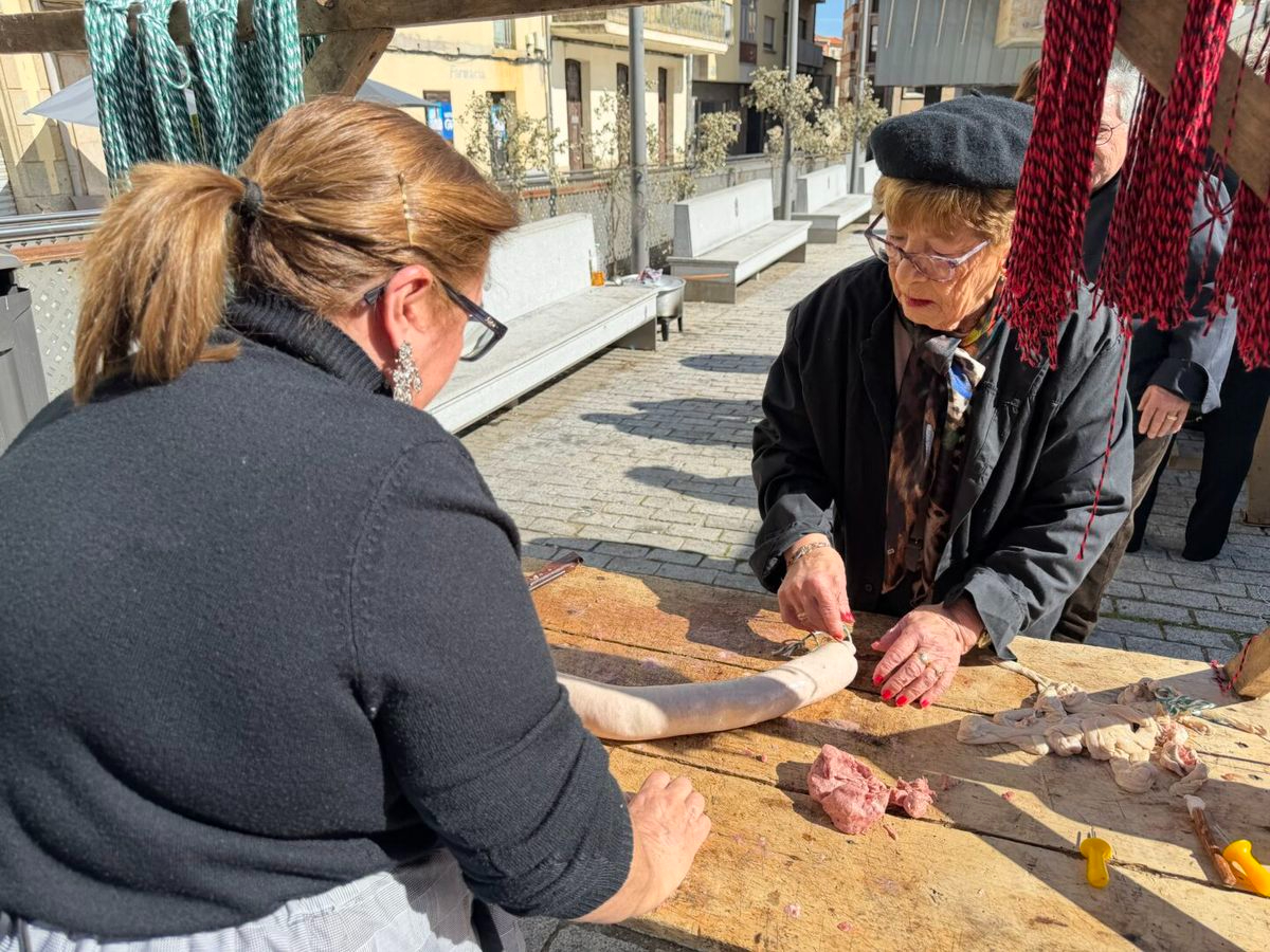 Los asistentes han tenido la oportunidad de presenciar en directo la elaboración artesanal de chorizos y culares. Esta demostración pública mantiene vivo el legado cultural e histórico del municipio salmantino, mostrando los procesos tradicionales de la matanza.