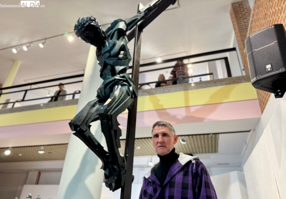 Entre las piezas destacadas se encuentra un Cristo de varios metros de altura que le ha supuesto "un año y medio" de trabajo y cuya base esconde un profundo simbolismo con letras griegas que representan "los 7 pecados capitales".