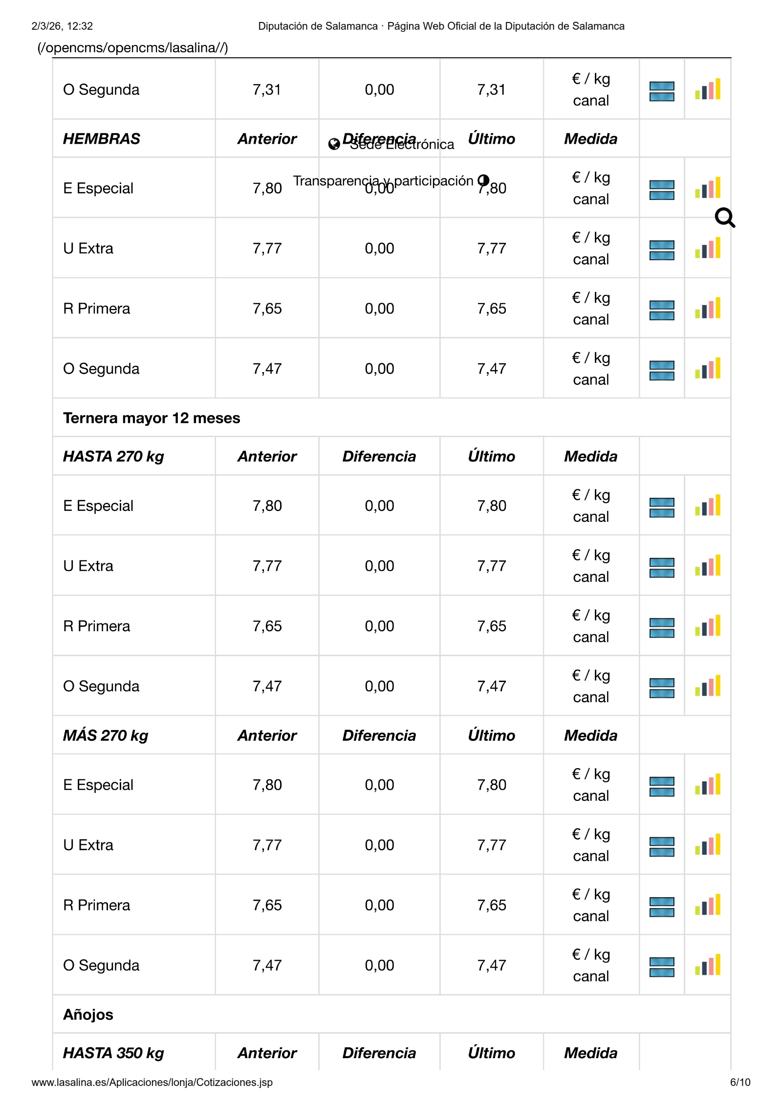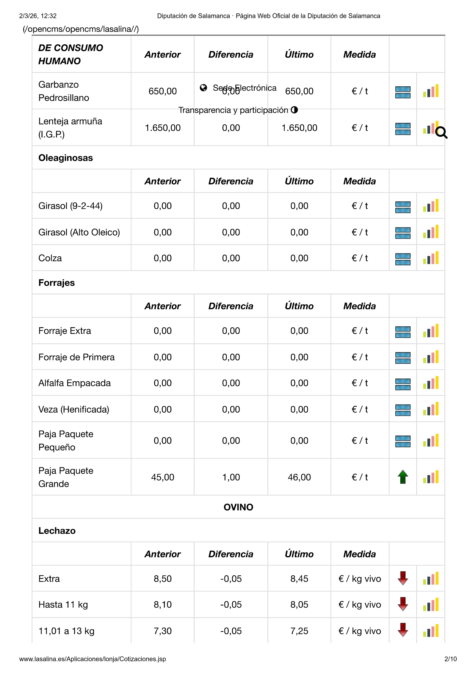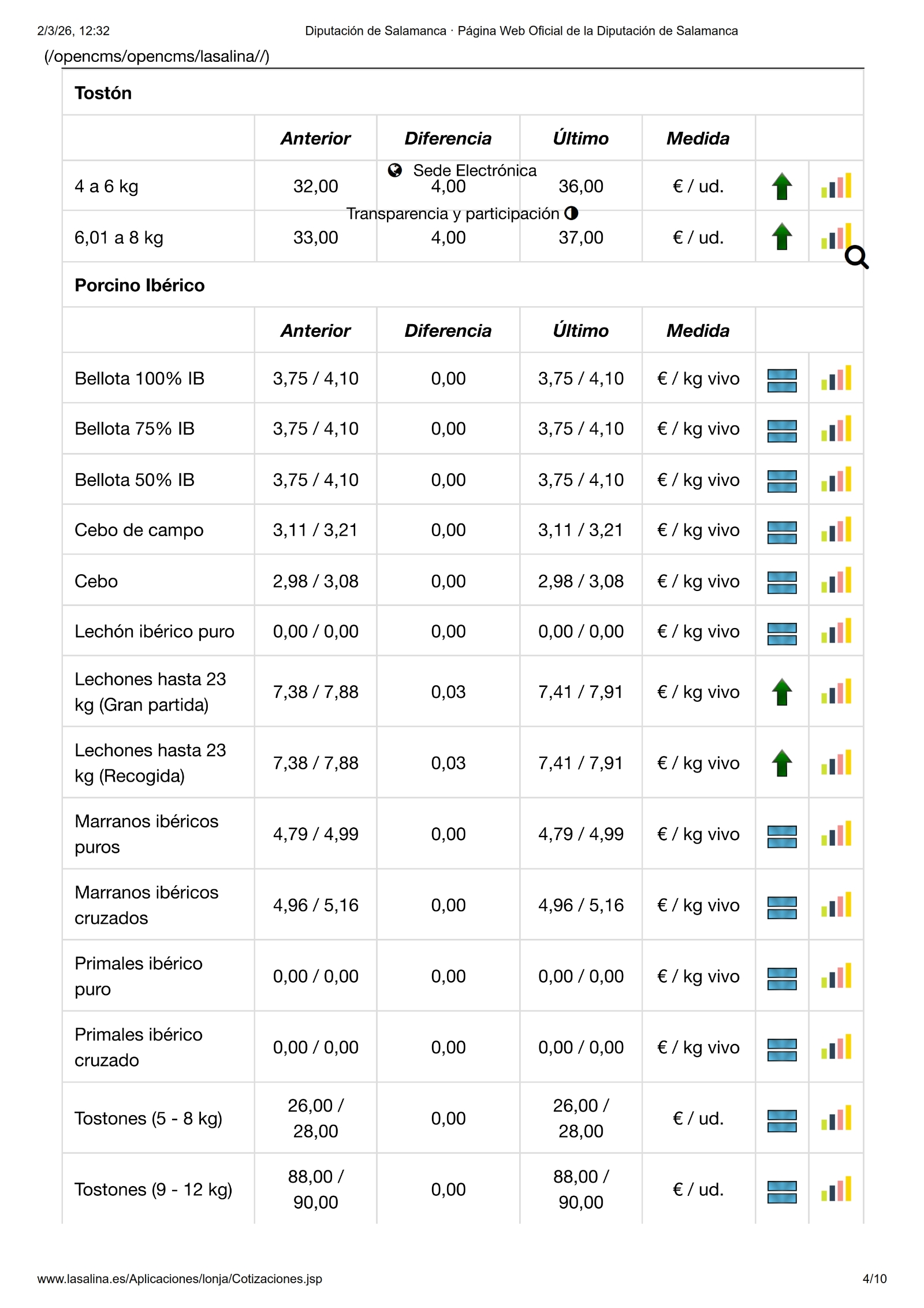 En la Mesa de Ovino, nueva bajada de los lechazos, en esta ocasión de -0,05 €/kg en todas las categorías. Y en la de Porcino Blanco, nueva subida y, ahora, en todas las categorías, 0,04 €(kg para el selecto y el normal, 0,03 €/kg para las cerdas y 0,02 €/kg para el graso. Los lechones suben 5,00 €/ud. y los tostones 4,00 €/ud. en las dos categorías. Por el contrario, en ibérico solo suben los lechones, en esta ocasión 0,03 €/kg en las dos categorías.