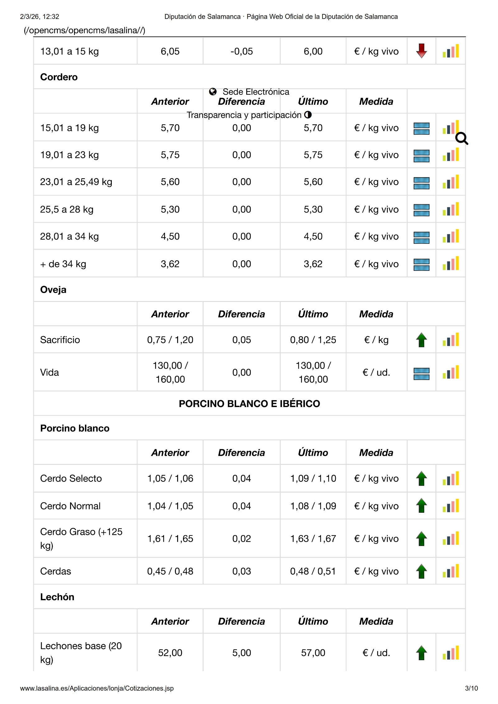El porcino blanco mantiene la tendencia al alza de los precios, no así los lechazos, que registran una nueva caída de los precios