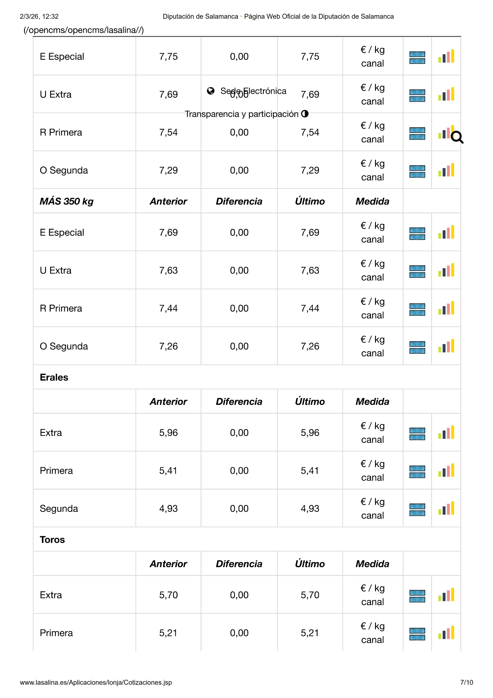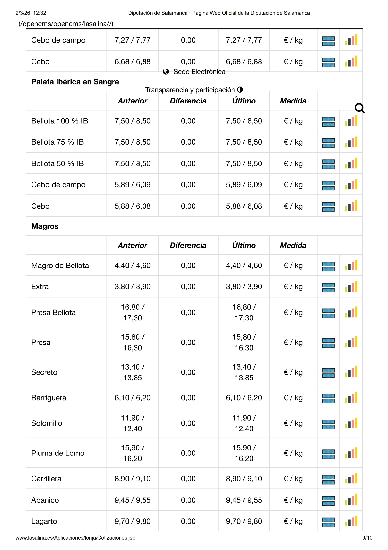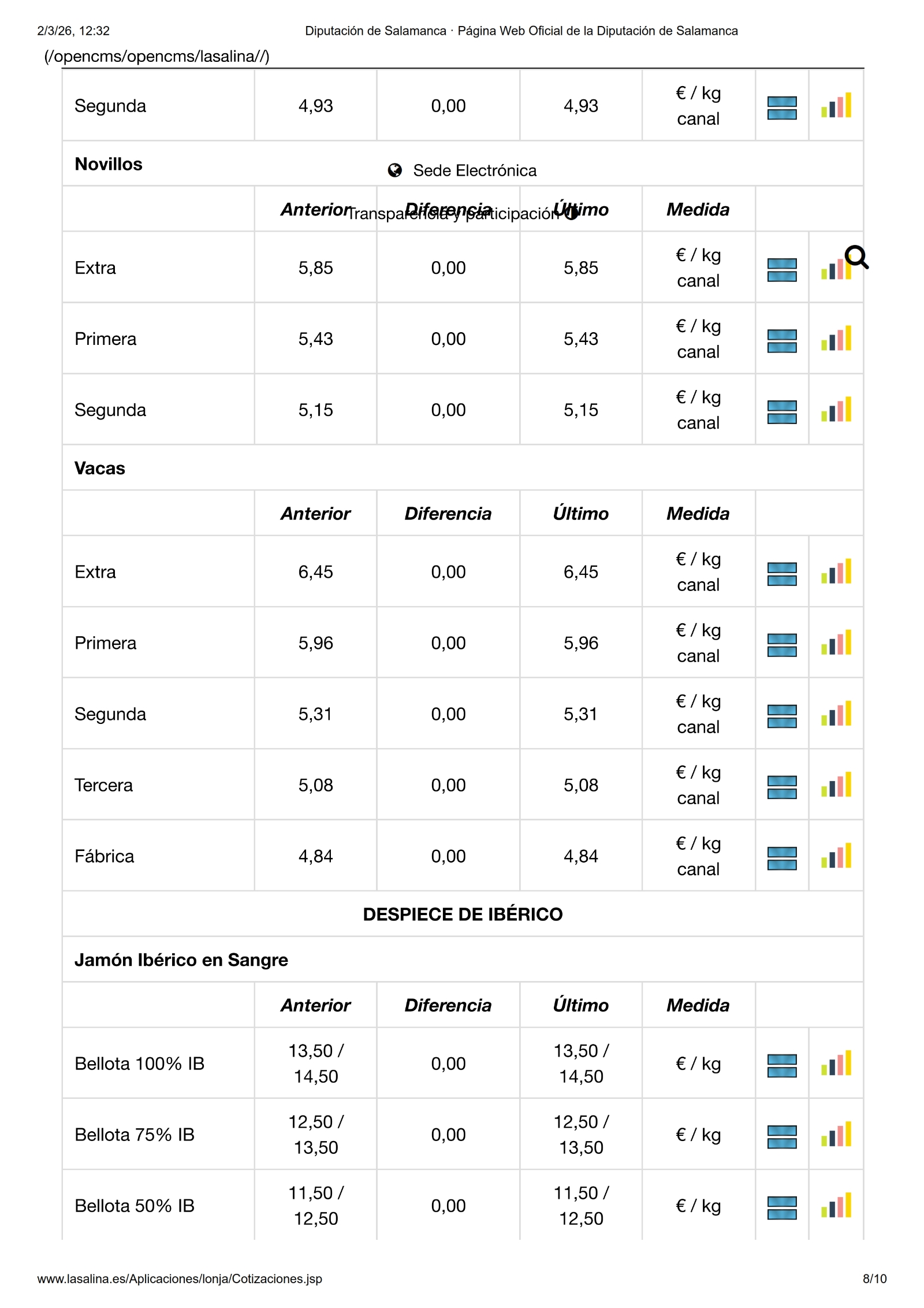 Por último, en la Mesa de Despiece de Ibérico no ha habido cambios.