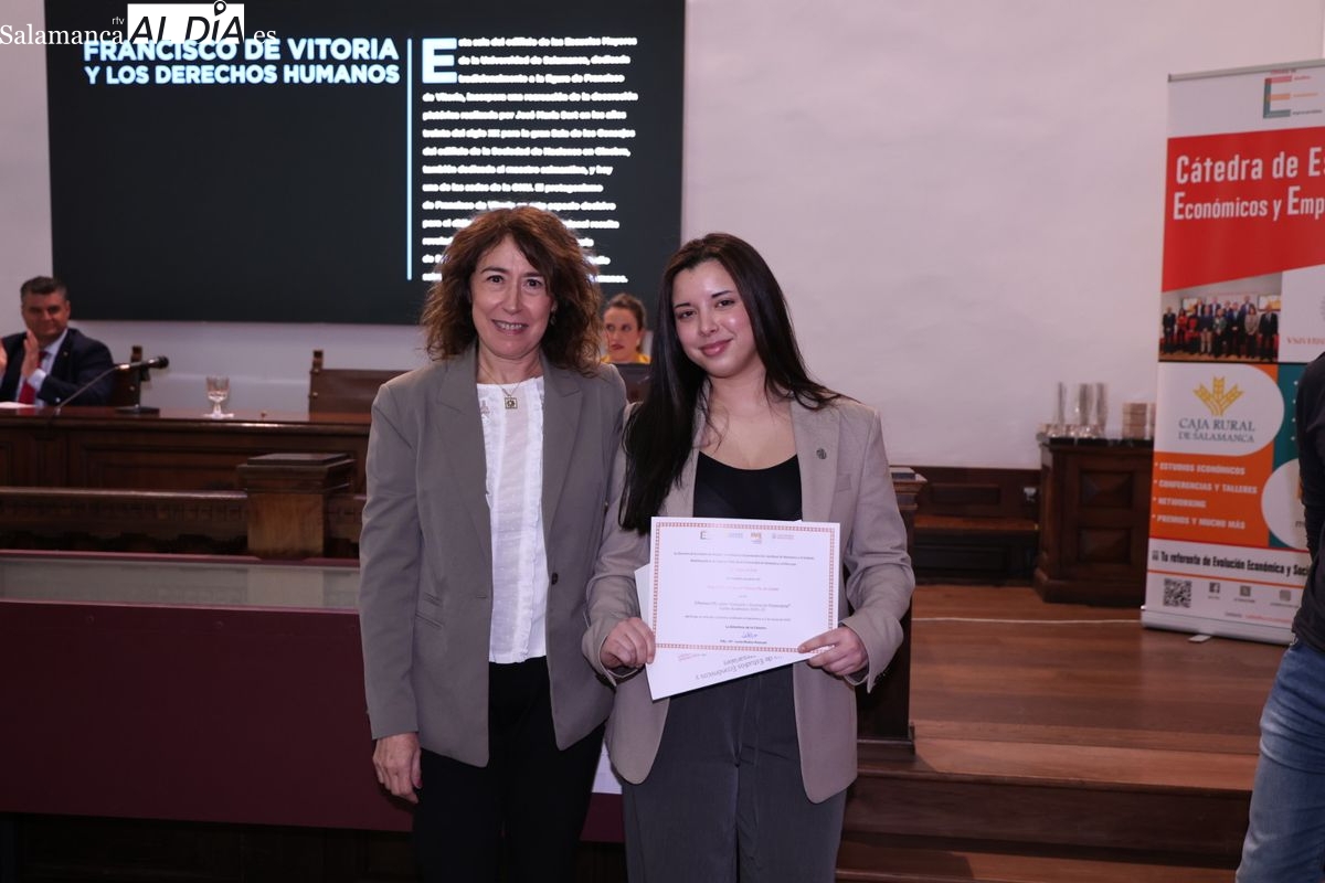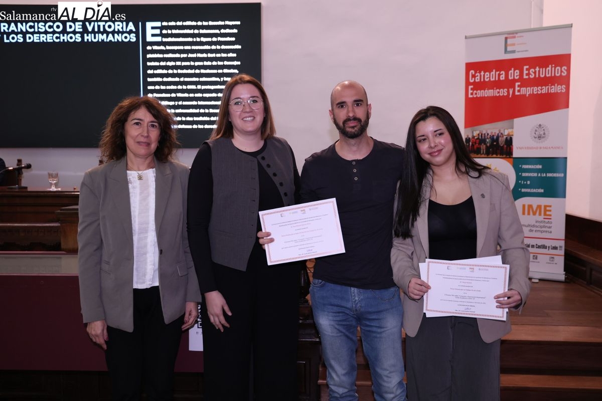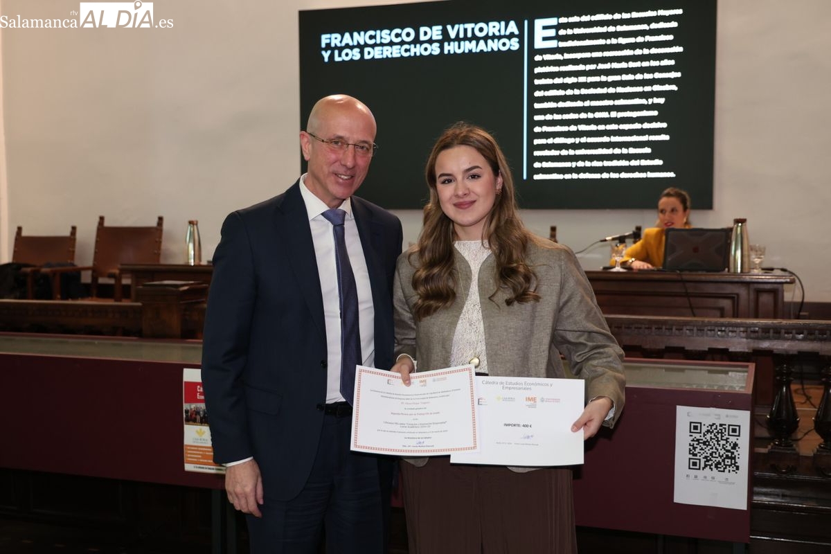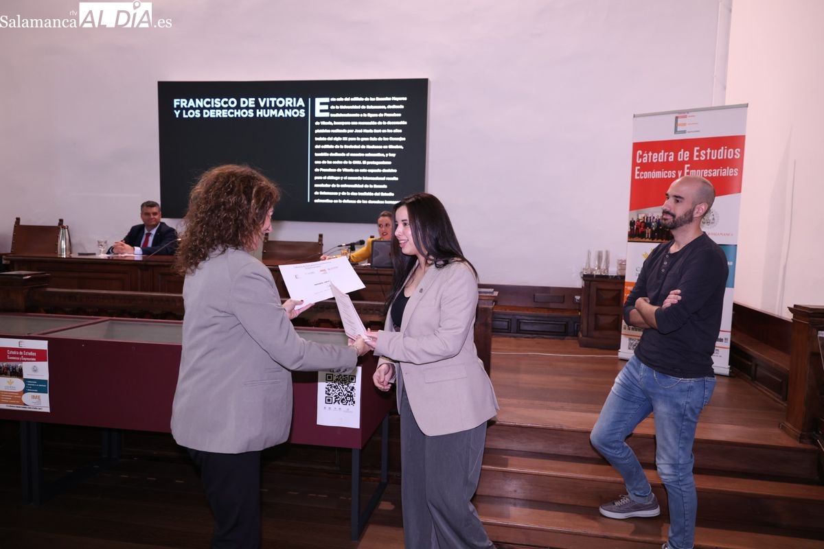 El Aula Francisco de Vitoria acoge un encuentro organizado por el IME y la Cátedra de Caja Rural de Salamanca para fomentar la creación de empresas y reconocer los mejores trabajos académicos.