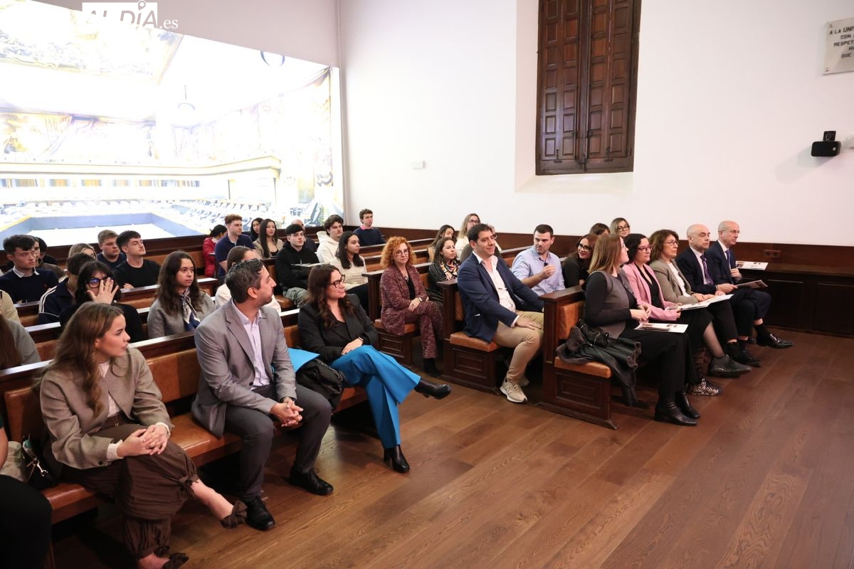 La sesión inaugural ha contado con la participación de destacados representantes de ambas instituciones. El acto se ha abierto con las intervenciones del vicerrector de Transferencia, Innovación y Emprendimiento, Federico Bueno de Mata; el director General de Caja Rural de Salamanca, José Ignacio Juez Marín; y la directora de la Cátedra de Estudios Económicos y Empresariales, Lucía Muñoz Pascual.