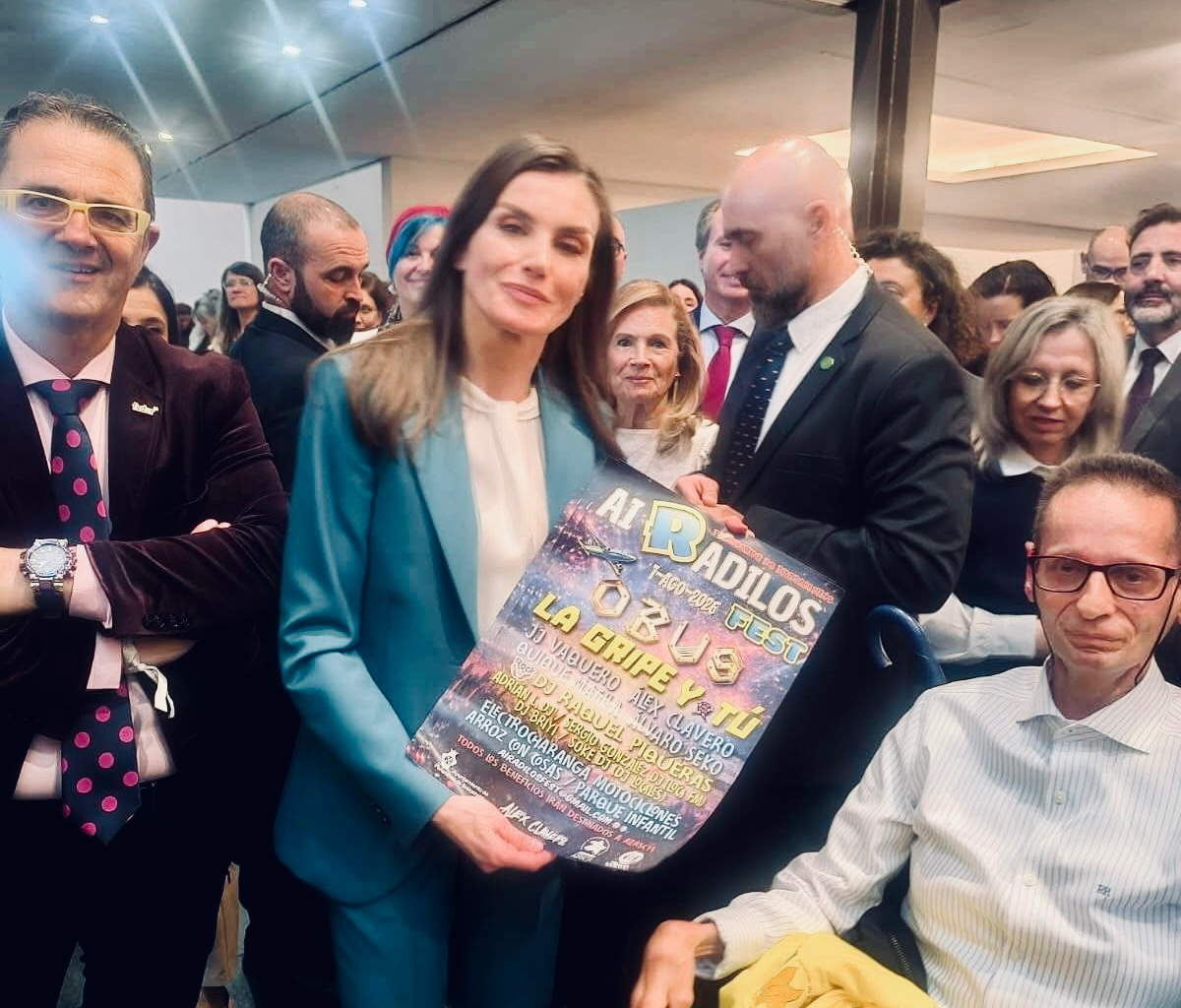 El nombre del Airadilos Fest ha sonado esta semana en un escenario de máximo nivel institucional. Miguel Ángel Sánchez, integrante de Aerscyl, tuvo el honor de saludar a Reina Letizia en el acto oficial organizado por la FEDER con motivo del Día Mundial de las Enfermedades Raras celebrado hace unos días. Durante el encuentro, se hizo entrega del cartel oficial del festival, llevando así el proyecto y su mensaje solidario hasta la Casa Real.