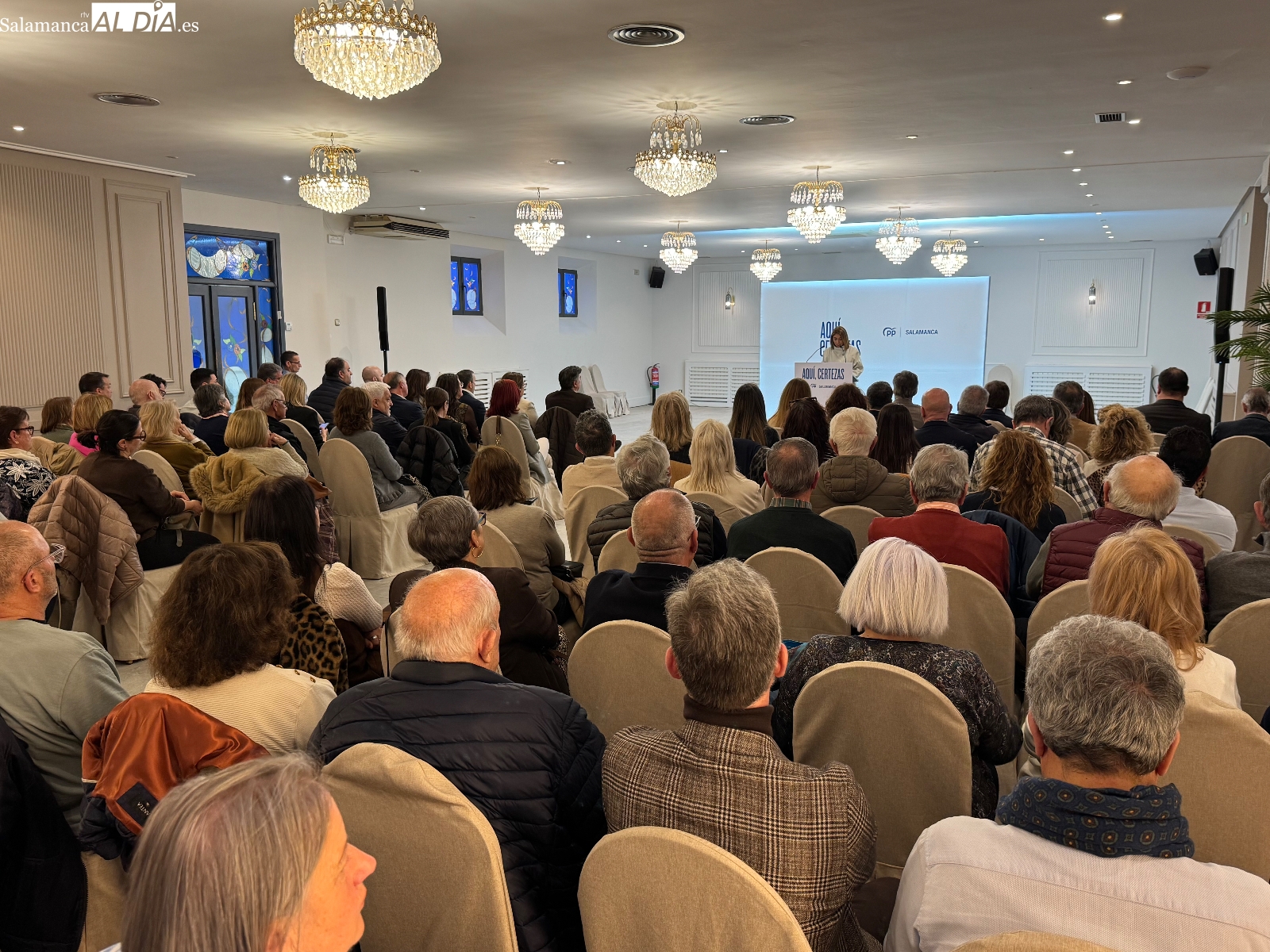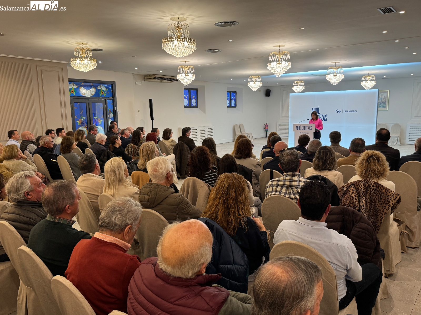 Rosa Esteban alababa la gestión de alcaldes, alcaldesas y concejales del PP en los pequeños municipios, subrayando que “sin nuestros pueblos, sin nuestros vecinos y sin la gente que cada mañana se levanta para ayudar a sus ciudadanos, muchas veces desinteresadamente como en los pequeños pueblos, no existiría España, ni Castilla y León ni Salamanca” y mostraba rotunda a Fernandez Mañueco como “ejemplo de un gobierno esforzado en la gente y la mejora de la calidad de vida”.