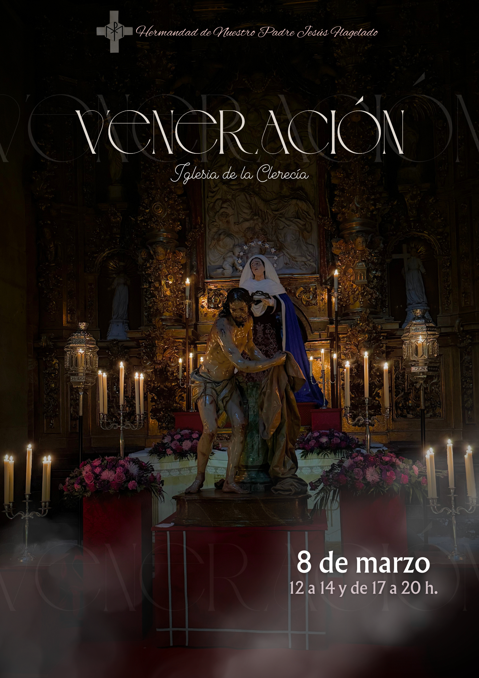 El domingo 8 de marzo, la hermandad celebrará la veneración pública a sus Sagrados Titulares, Nuestro Padre Jesús Flagelado y Nuestra Señora de las Lágrimas. La Iglesia del Espíritu Santo permanecerá abierta en dos turnos: de 12:00 a 14:00 horas y de 17:00 a 20:00 horas.