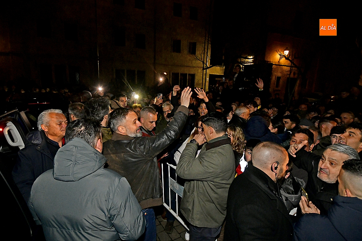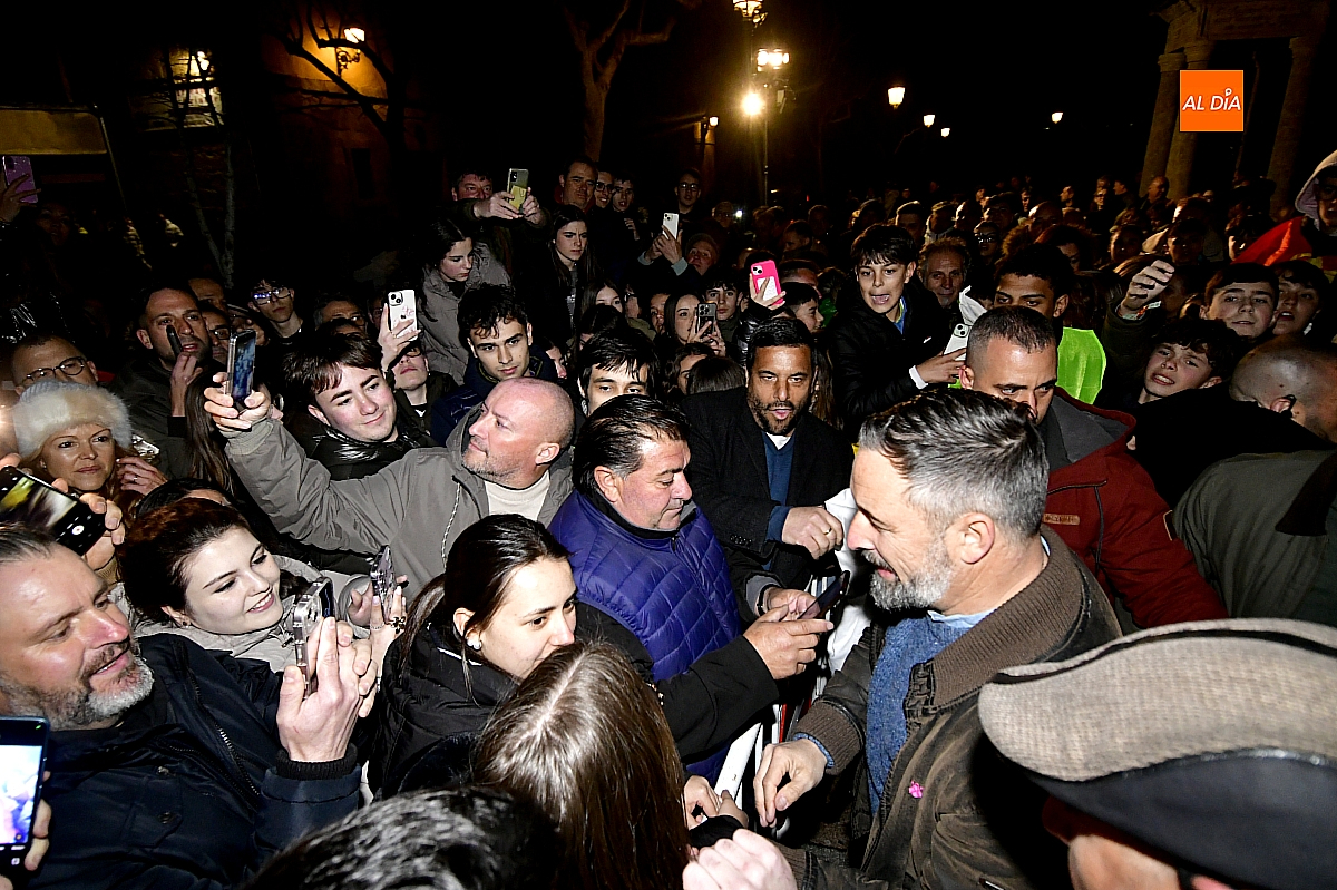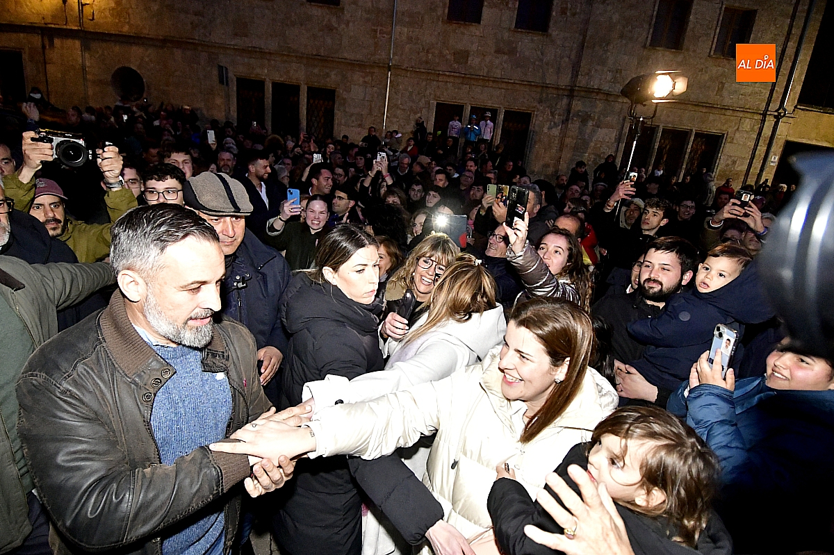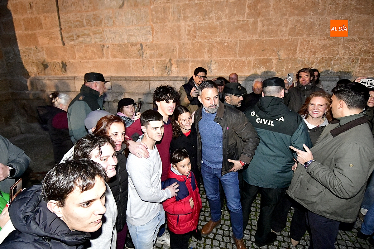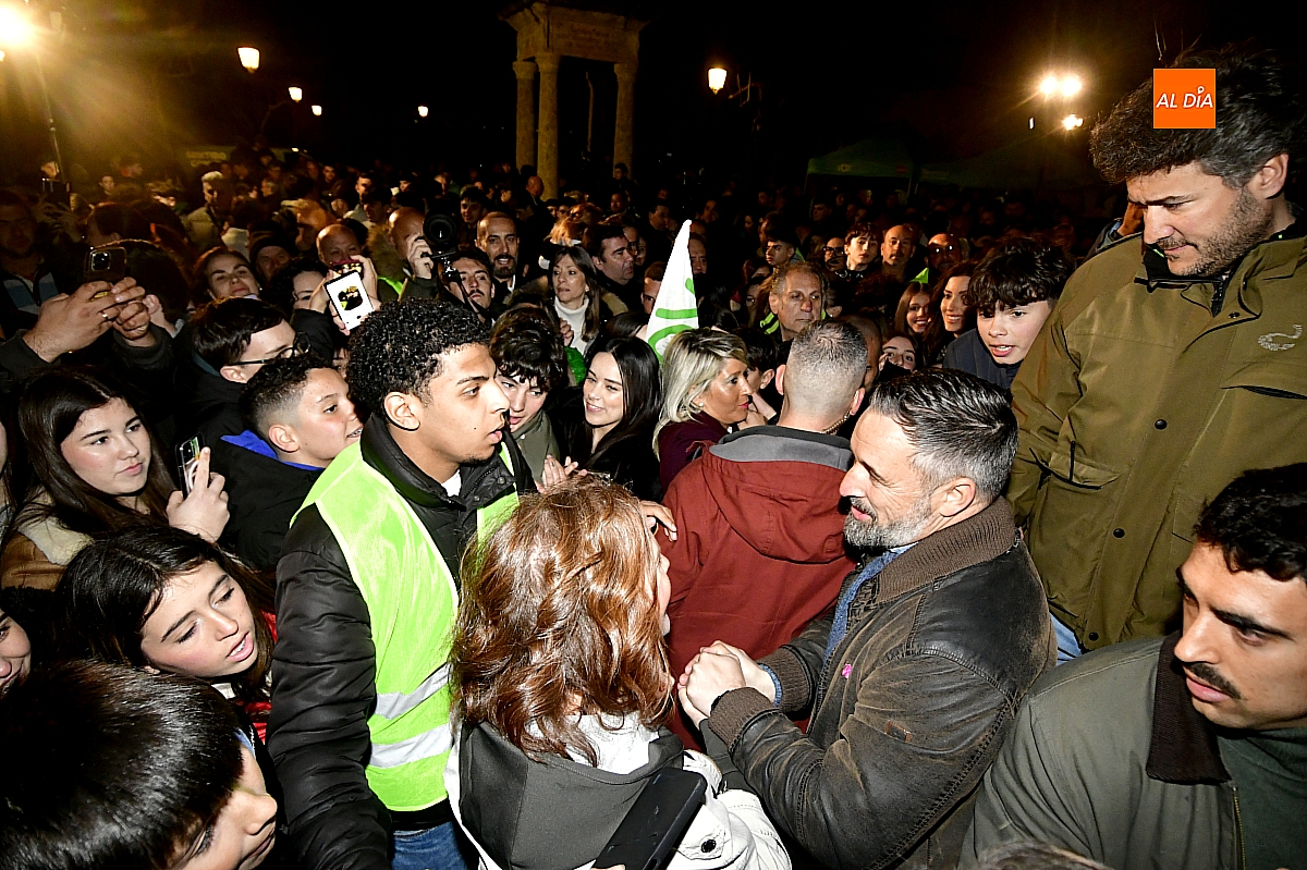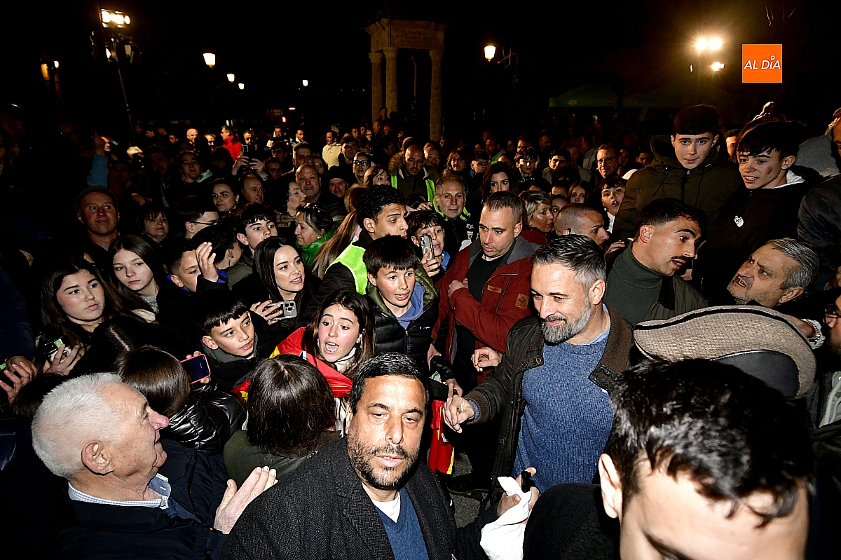 Las tranquilas calles del centro histórico de Ciudad Rodrigo alteraron este viernes su ritmo habitual ante la llegada del líder nacional de Vox, Santiago Abascal, que acudió a Miróbriga para respaldar la candidatura a la Junta de Castilla y León de Carlos Pollán y al procurador por Salamanca, Carlos Menéndez.