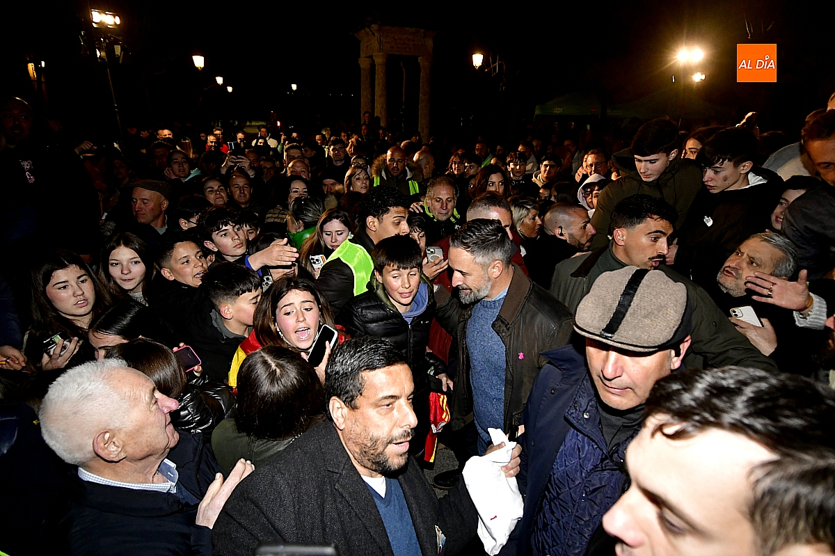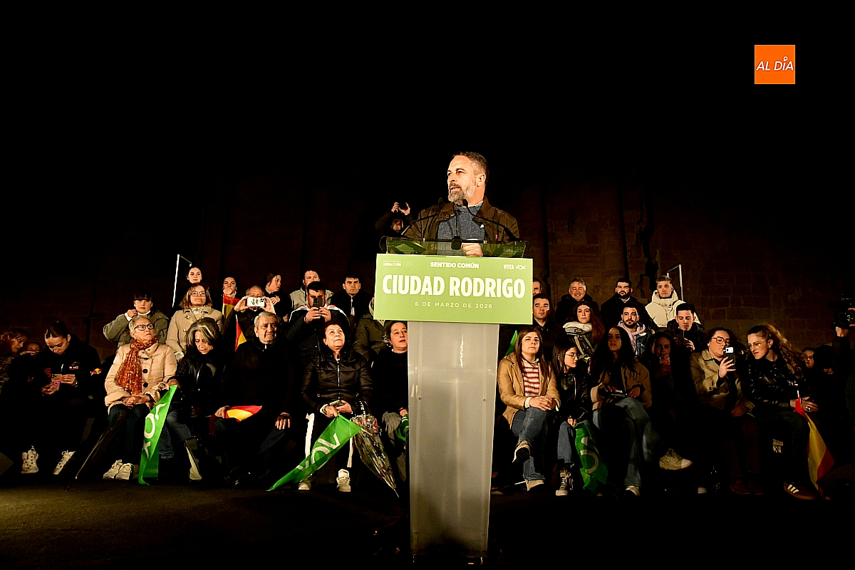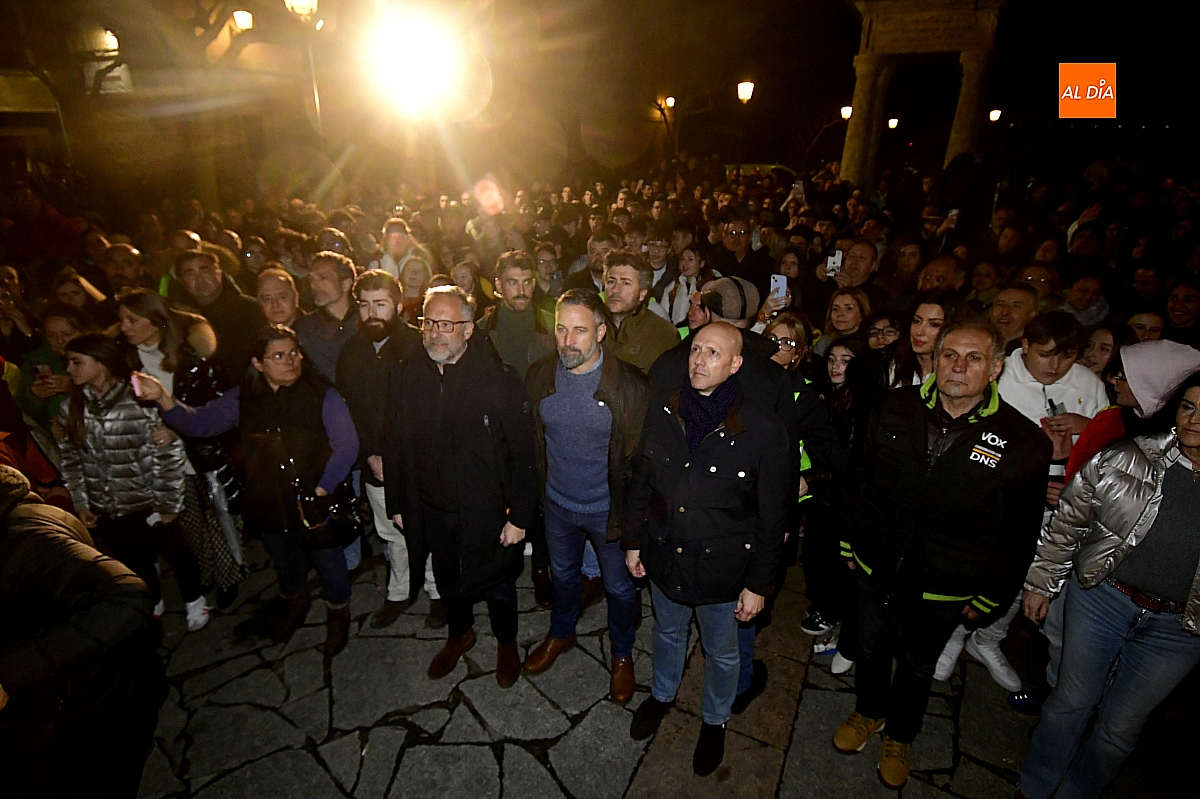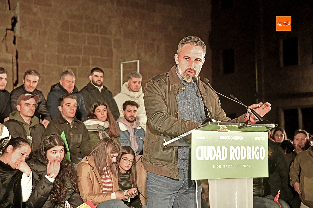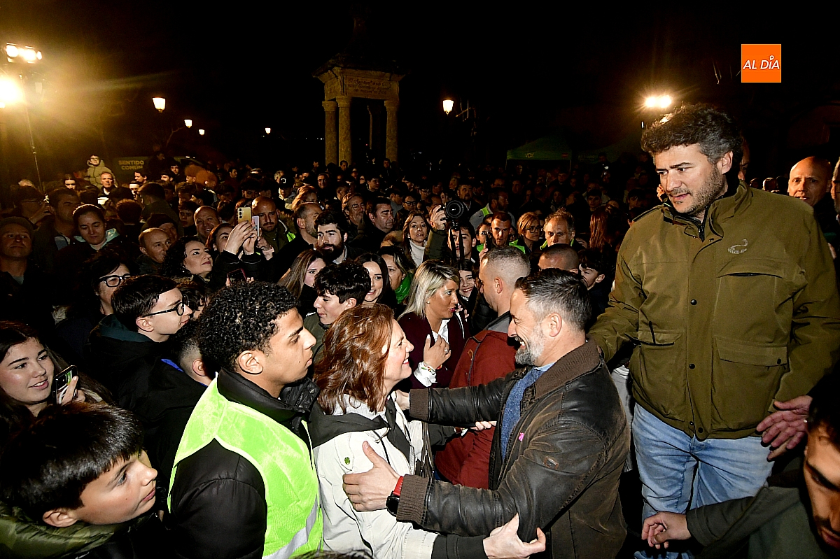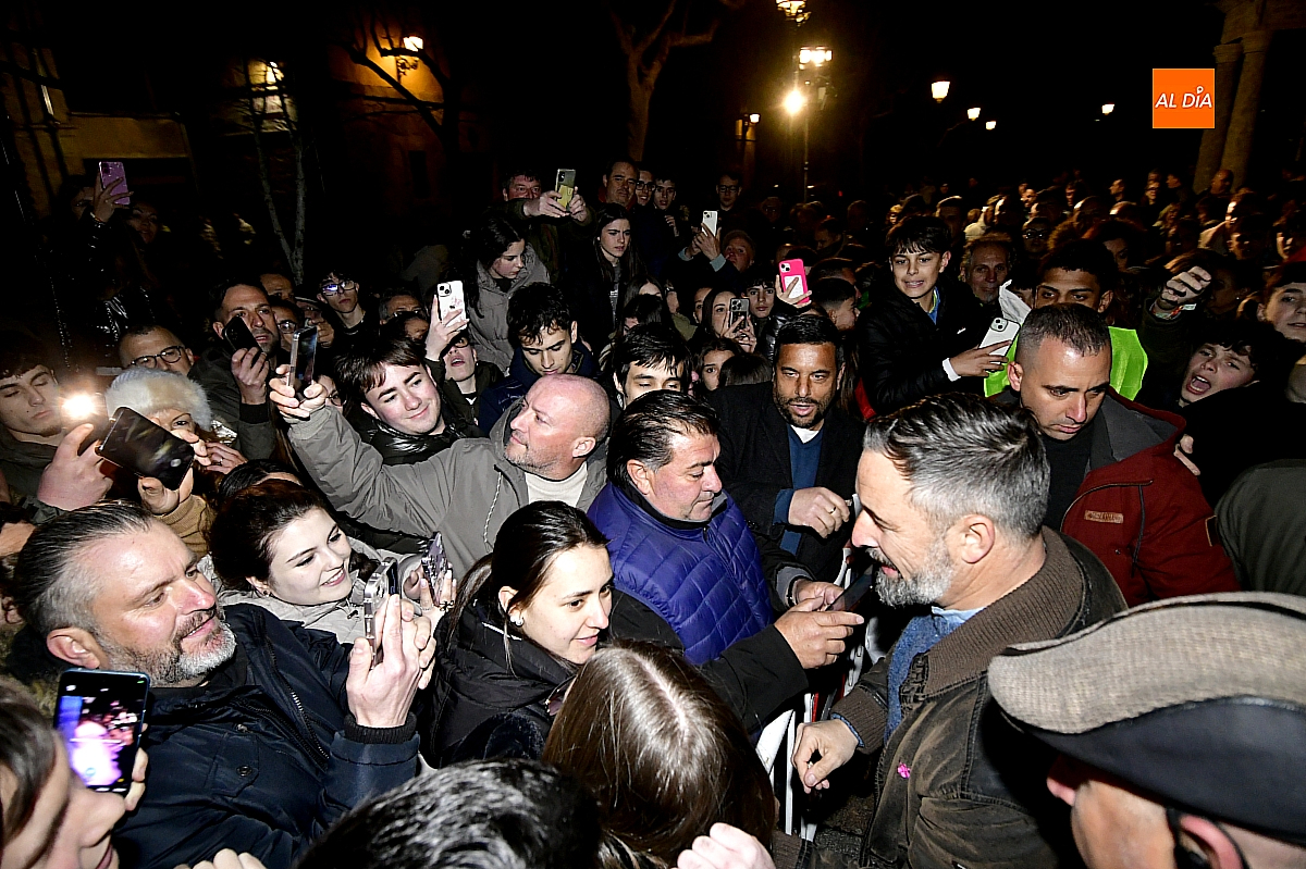 Las tranquilas calles del centro histórico de Ciudad Rodrigo alteraron este viernes su ritmo habitual ante la llegada del líder nacional de Vox, Santiago Abascal, que acudió a Miróbriga para respaldar la candidatura a la Junta de Castilla y León de Carlos Pollán y al procurador por Salamanca, Carlos Menéndez.