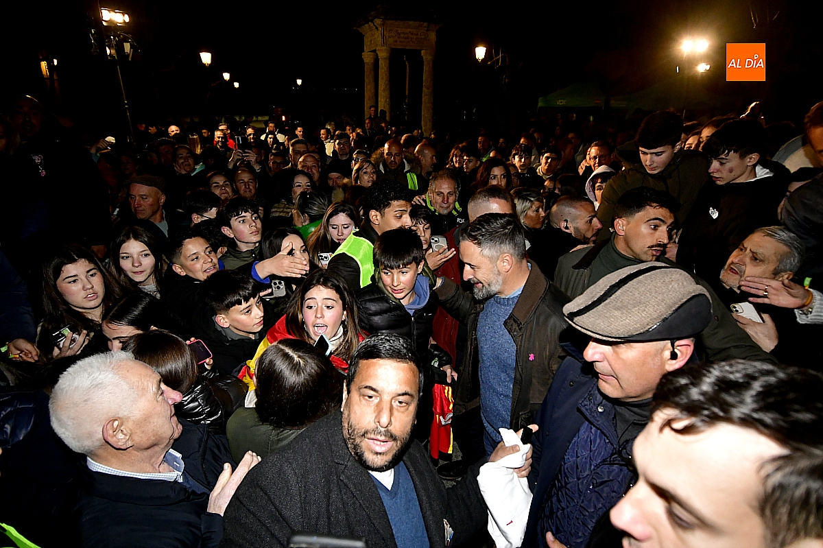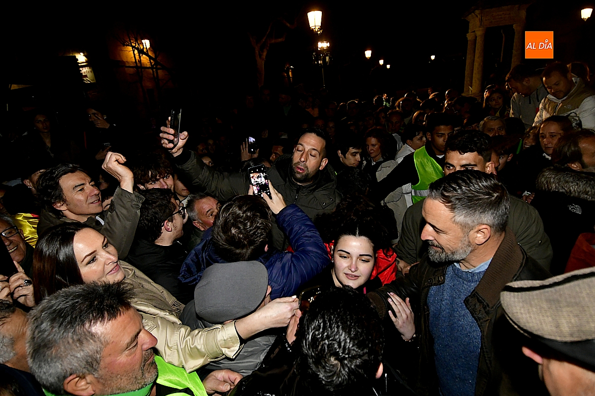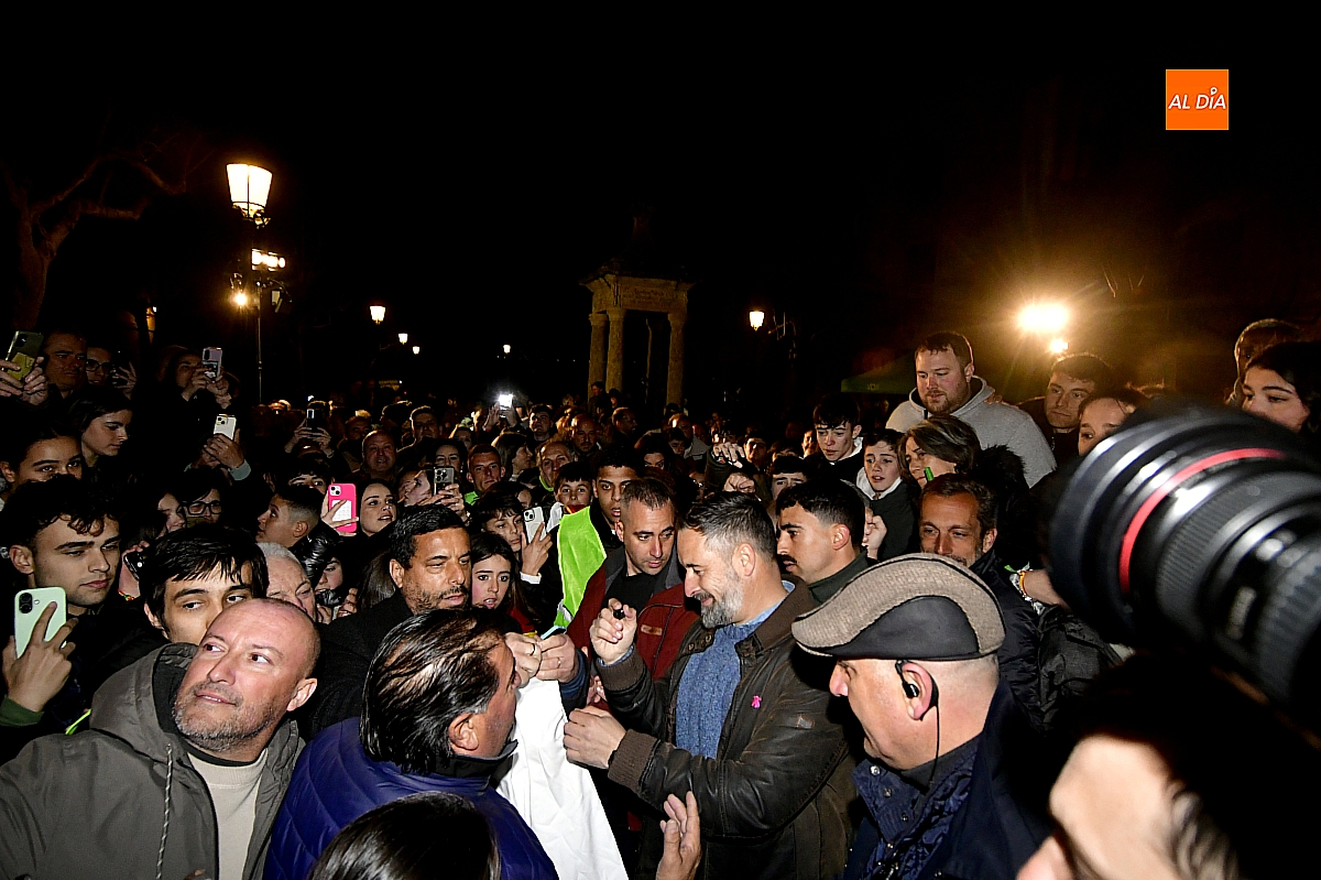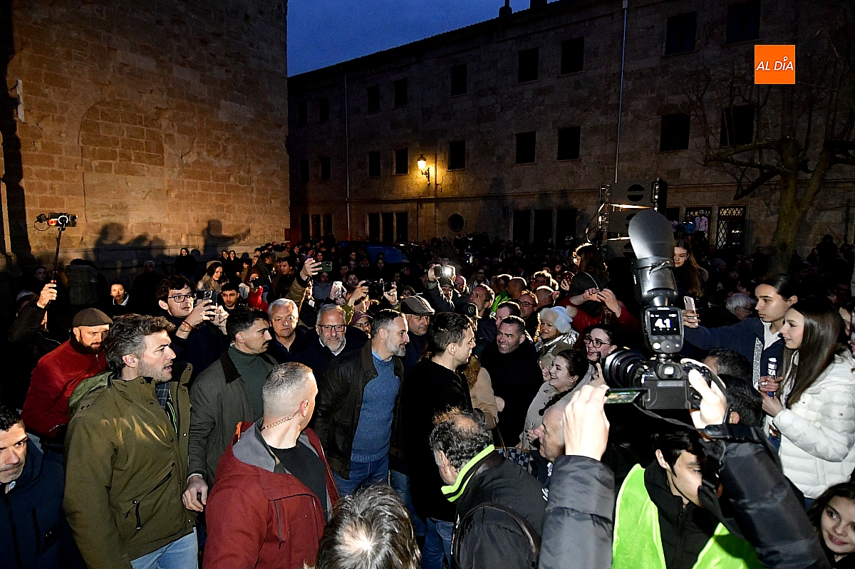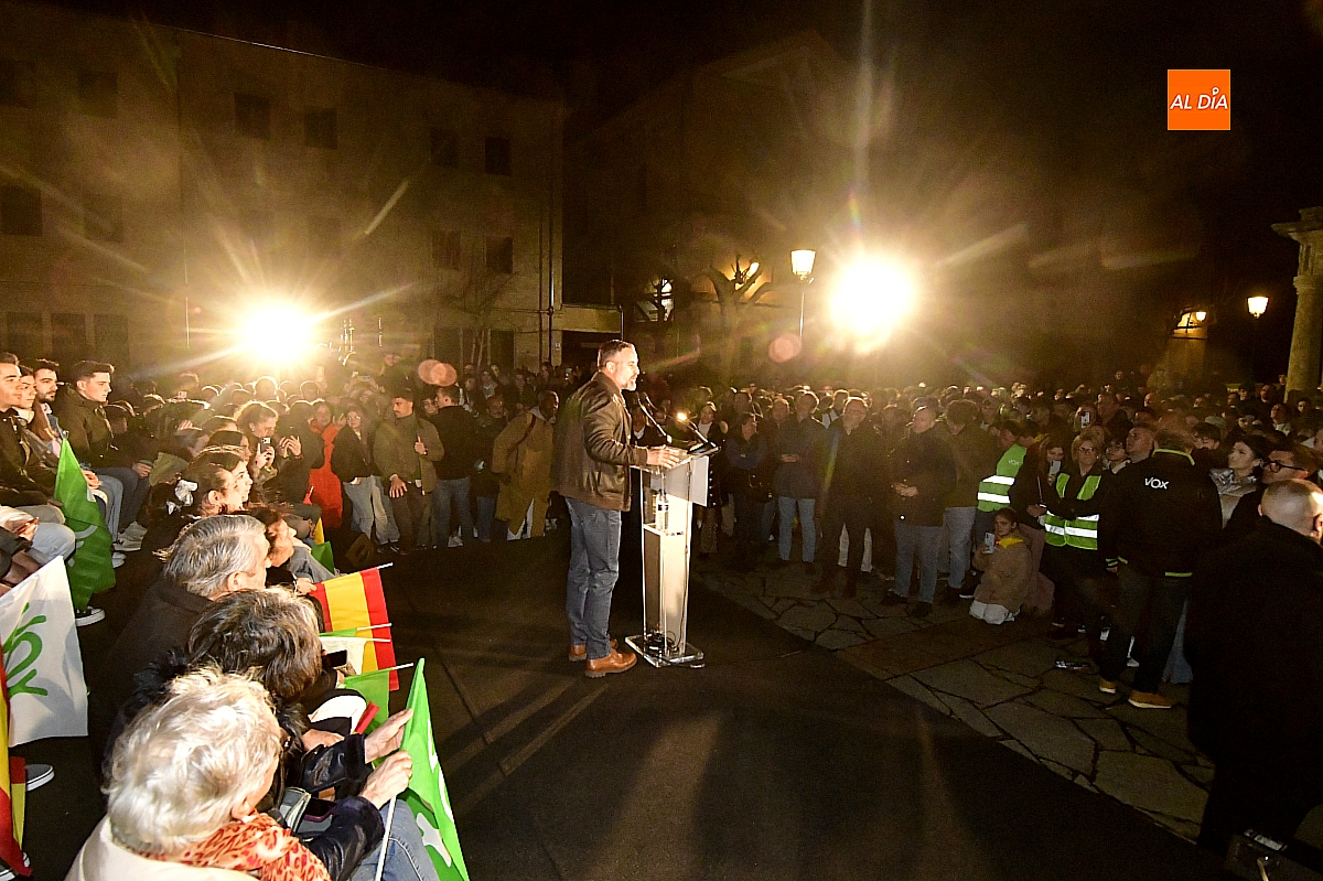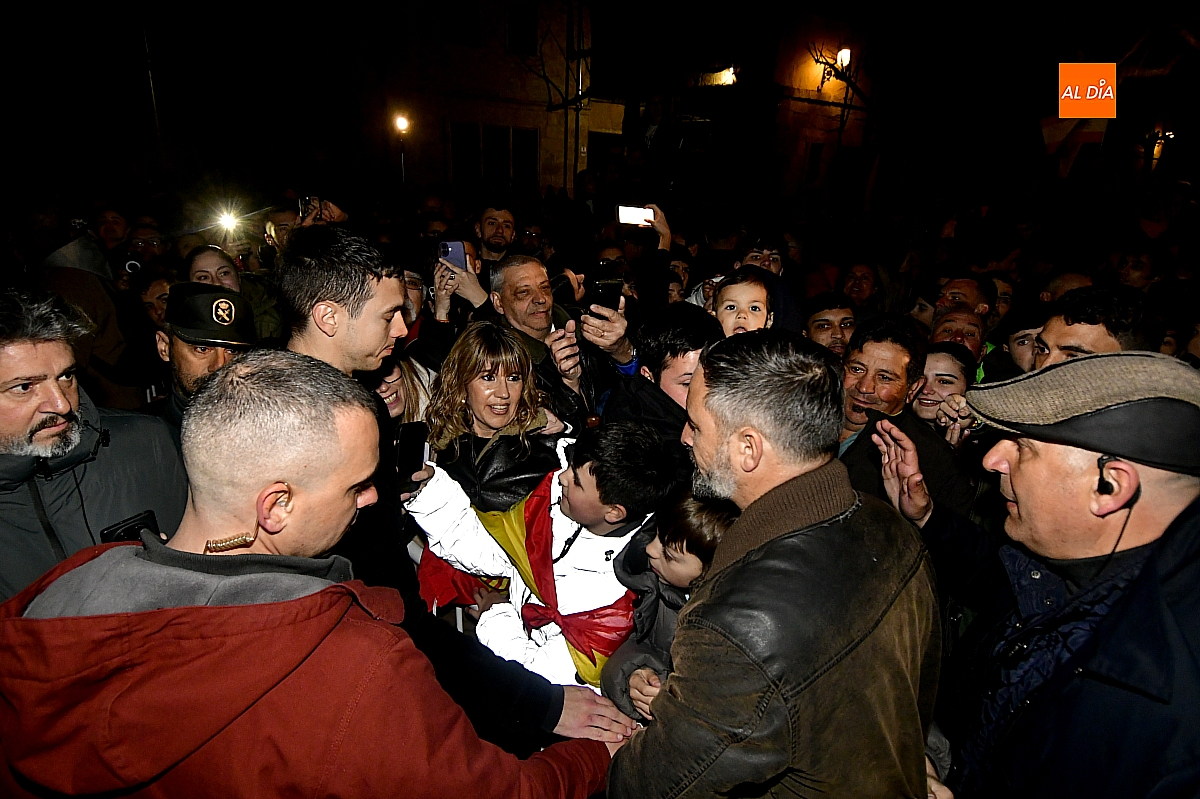 Las tranquilas calles del centro histórico de Ciudad Rodrigo alteraron este viernes su ritmo habitual ante la llegada del líder nacional de Vox, Santiago Abascal, que acudió a Miróbriga para respaldar la candidatura a la Junta de Castilla y León de Carlos Pollán y al procurador por Salamanca, Carlos Menéndez.