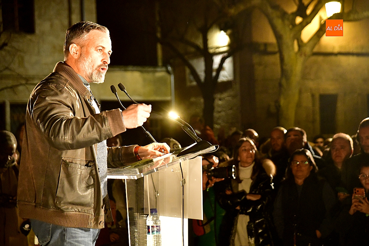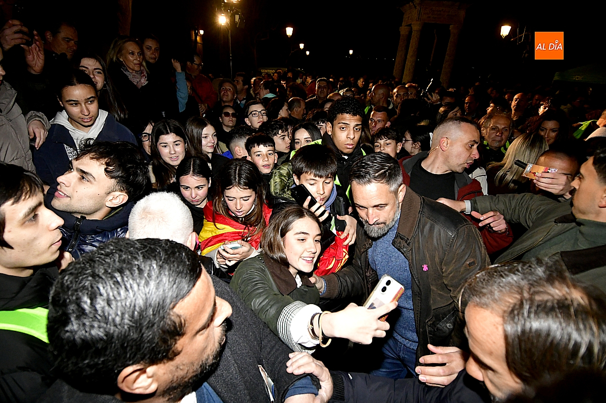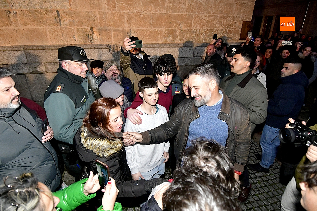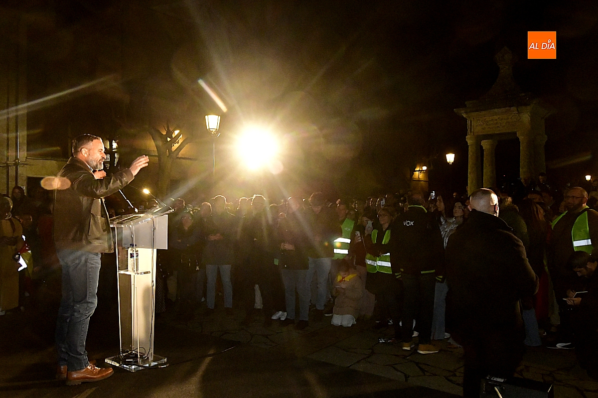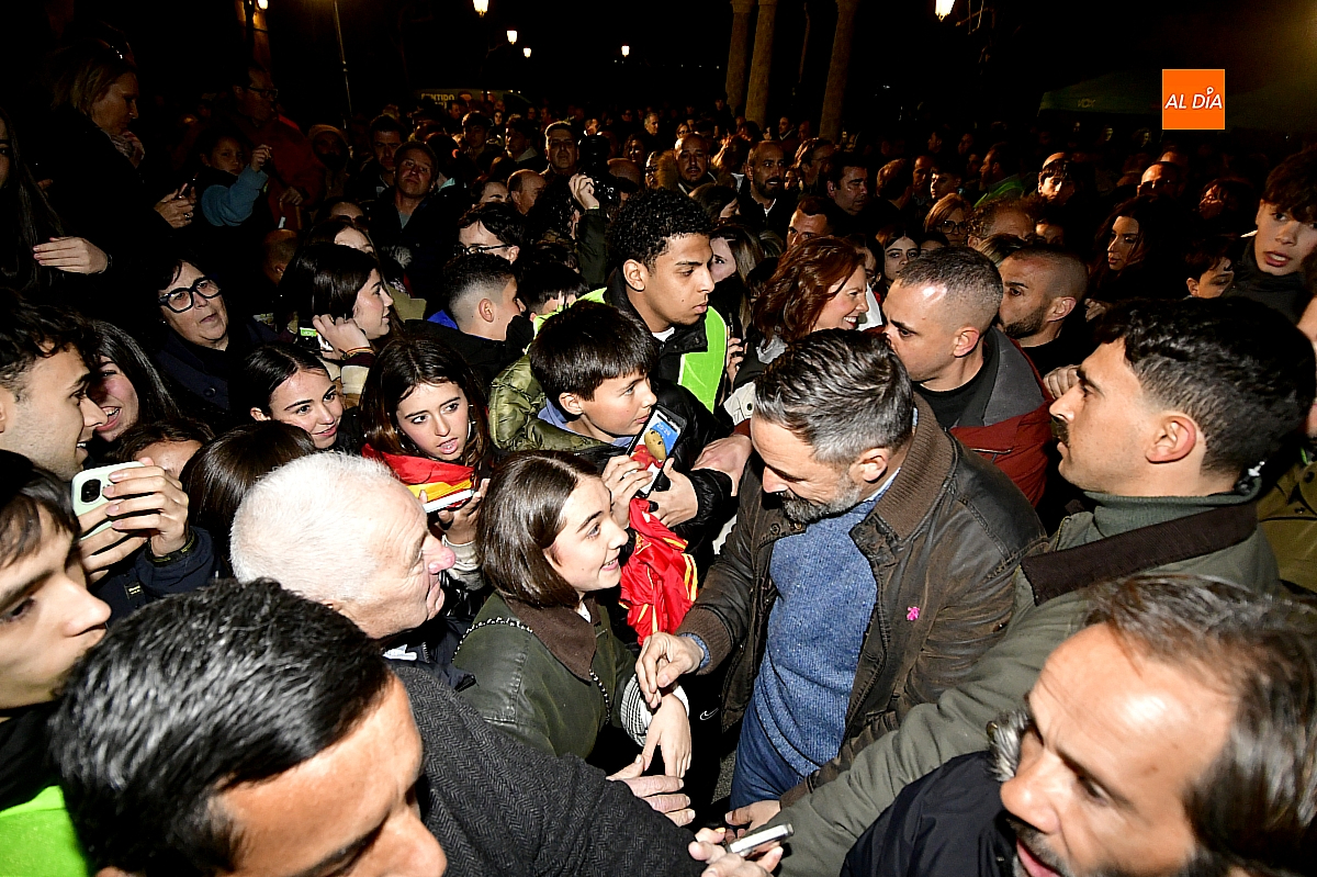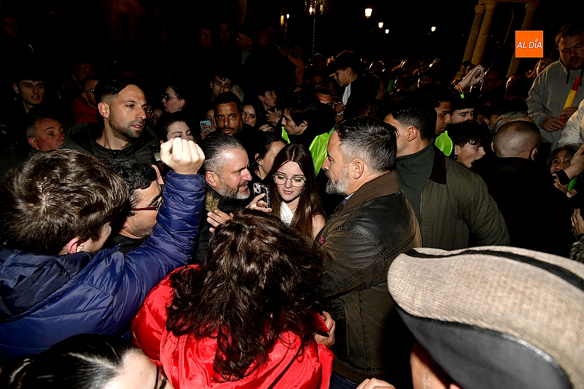 Las tranquilas calles del centro histórico de Ciudad Rodrigo alteraron este viernes su ritmo habitual ante la llegada del líder nacional de Vox, Santiago Abascal, que acudió a Miróbriga para respaldar la candidatura a la Junta de Castilla y León de Carlos Pollán y al procurador por Salamanca, Carlos Menéndez.