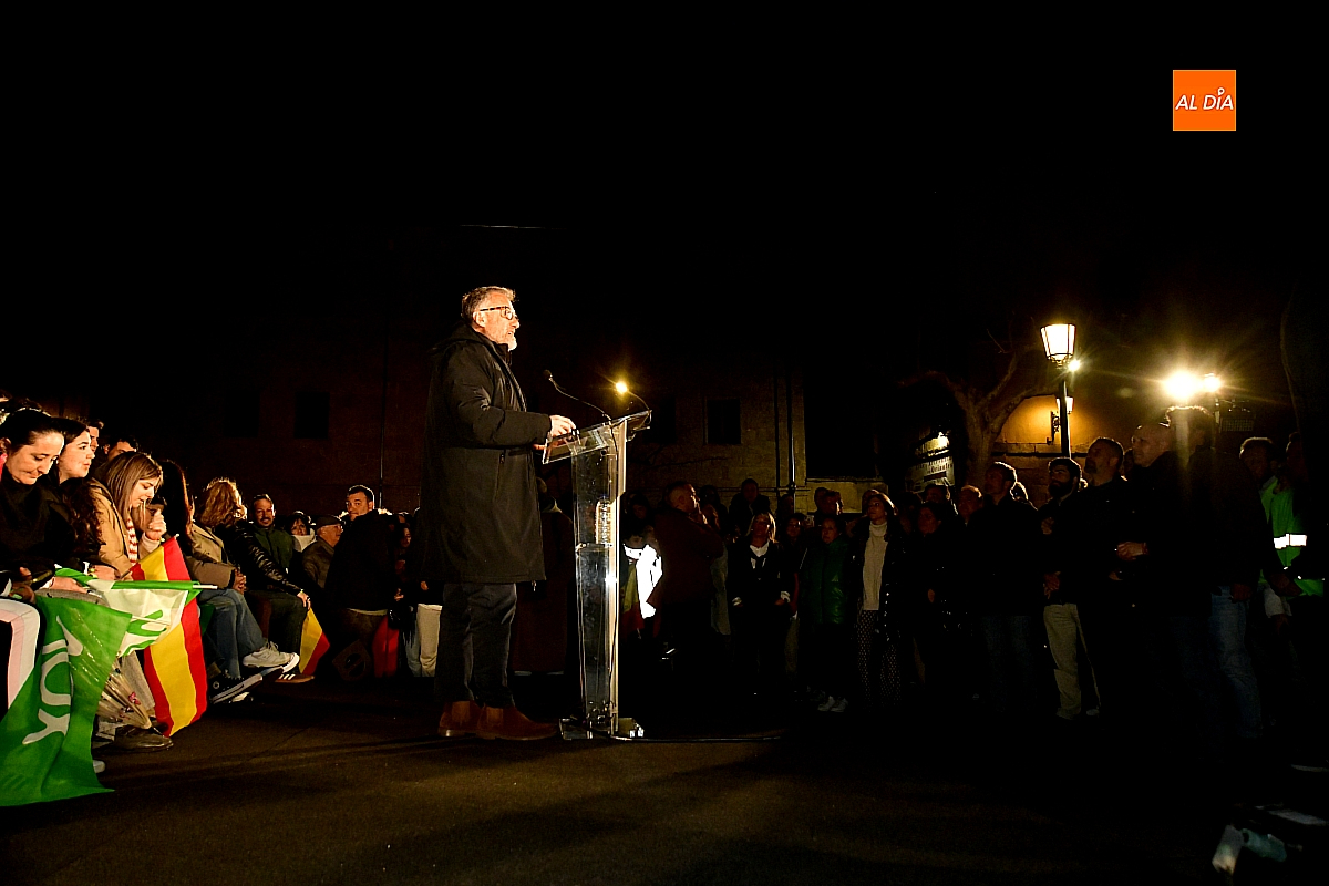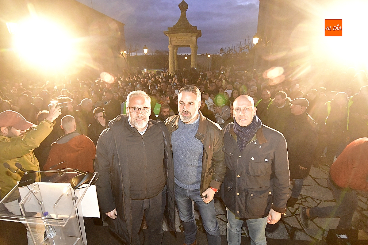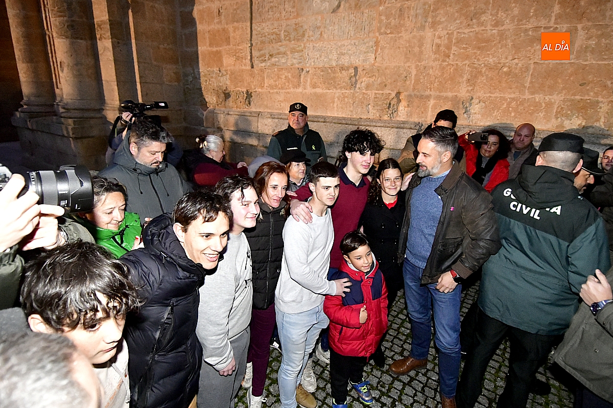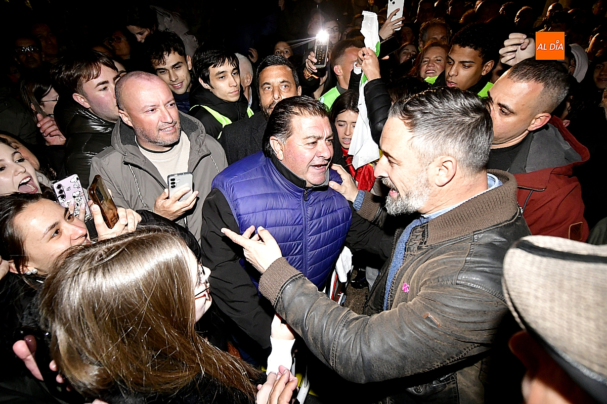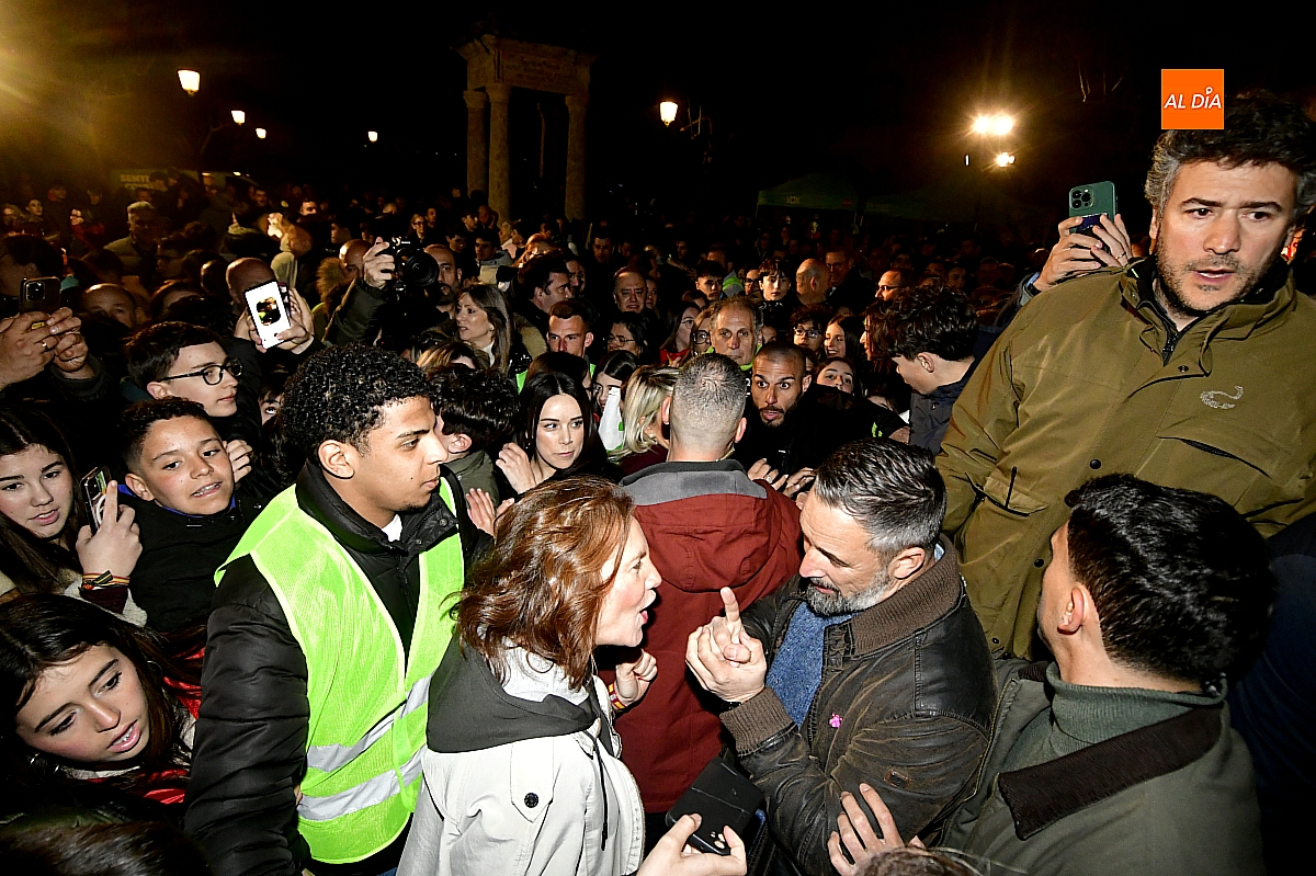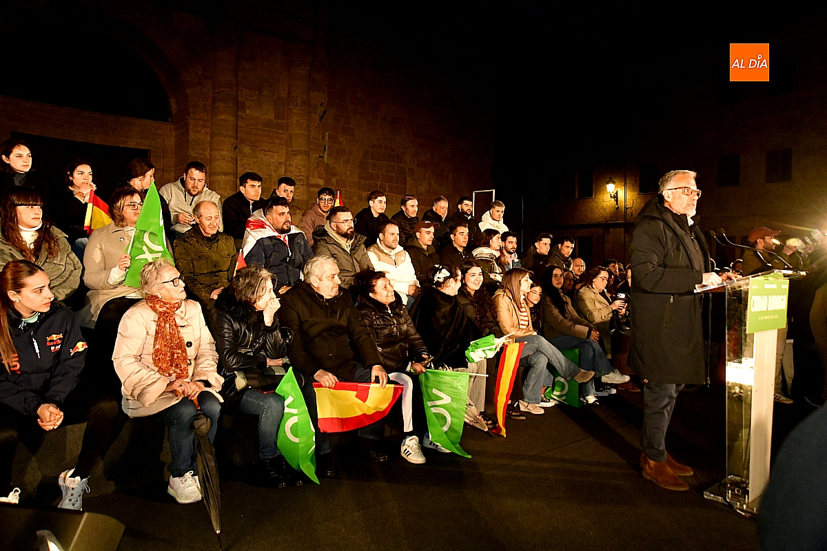 Las tranquilas calles del centro histórico de Ciudad Rodrigo alteraron este viernes su ritmo habitual ante la llegada del líder nacional de Vox, Santiago Abascal, que acudió a Miróbriga para respaldar la candidatura a la Junta de Castilla y León de Carlos Pollán y al procurador por Salamanca, Carlos Menéndez.