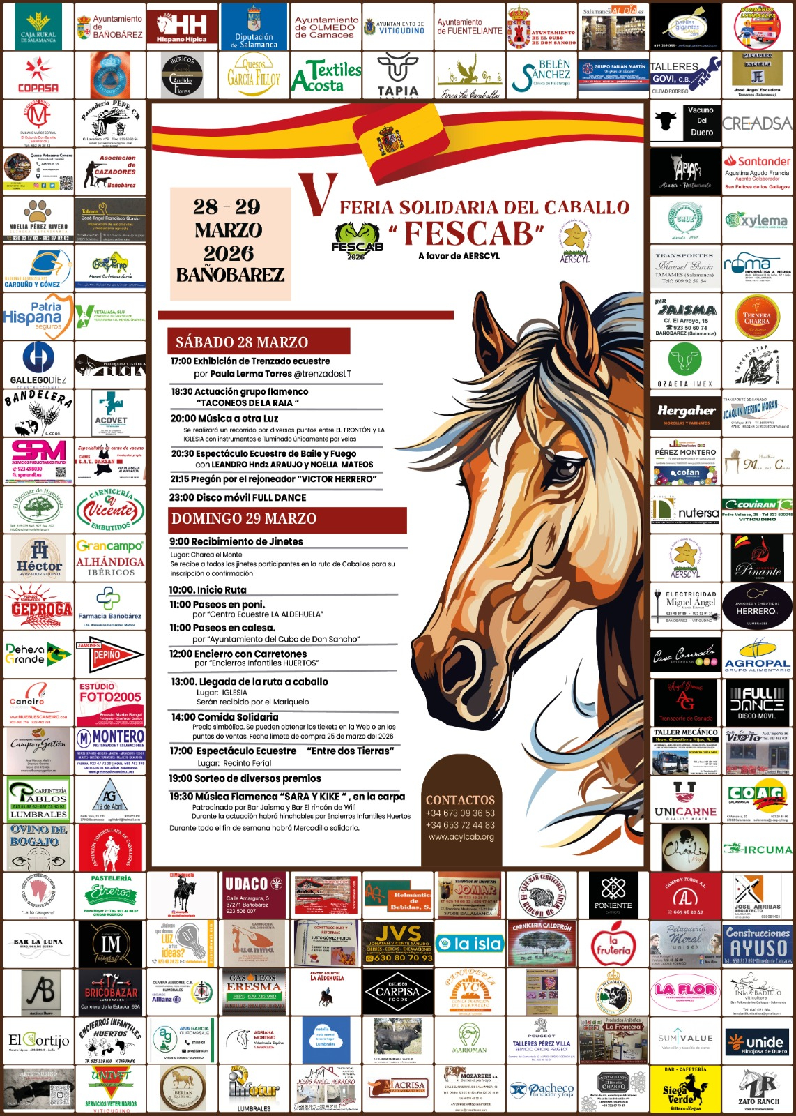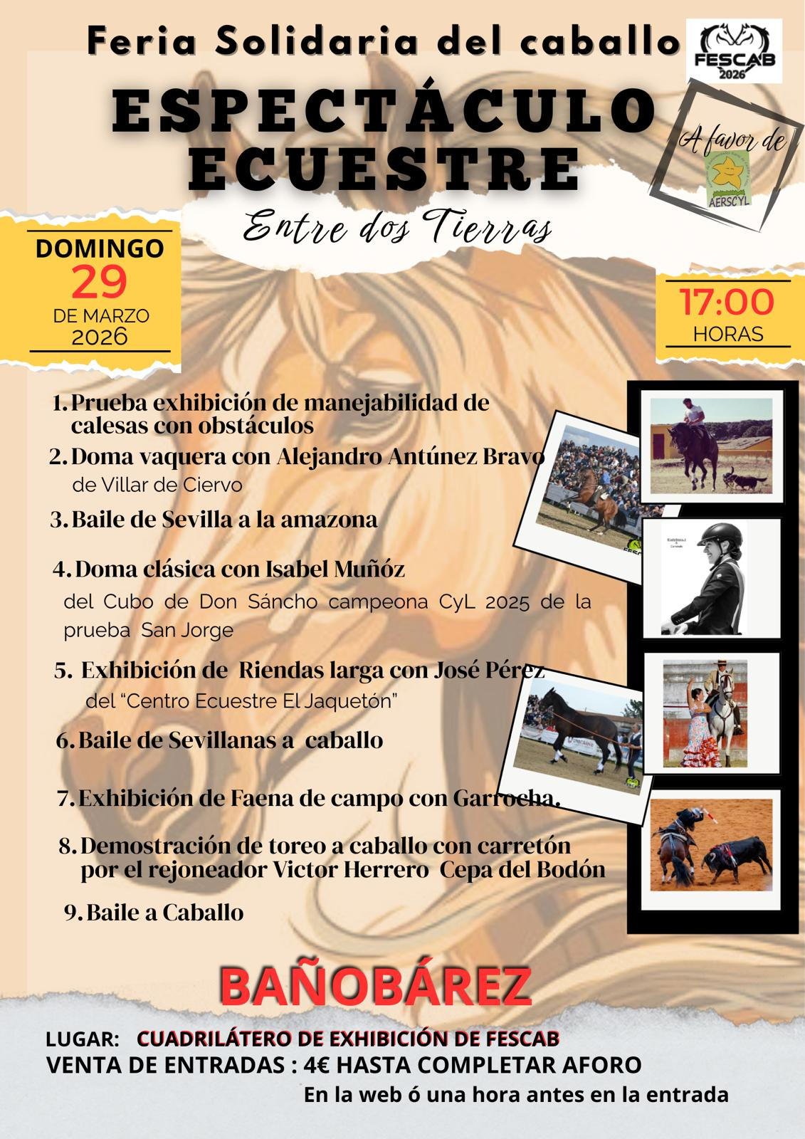 Bañobárez se prepara para convertirse, un año más, en el epicentro de la solidaridad y la afición ecuestre con la celebración de la V Feria Solidaria del Caballo ‘FESCAB’ 2026. Este evento, que tendrá lugar los días 28 y 29 de marzo, está organizado por la Asociación Cultural de Castilla y León del Caballo (AcyLCab), bajo la dirección de Ángel Jesús Agudo, y cuenta con la colaboración del Ayuntamiento, además del patrocinio de cerca de 150 empresas y entidades. En esta quinta edición, la recaudación íntegra de los beneficios se destinará a la Asociación de Enfermedades Raras de Castilla y León (AERSCyL), continuando así con la estela solidaria que caracteriza a esta cita.