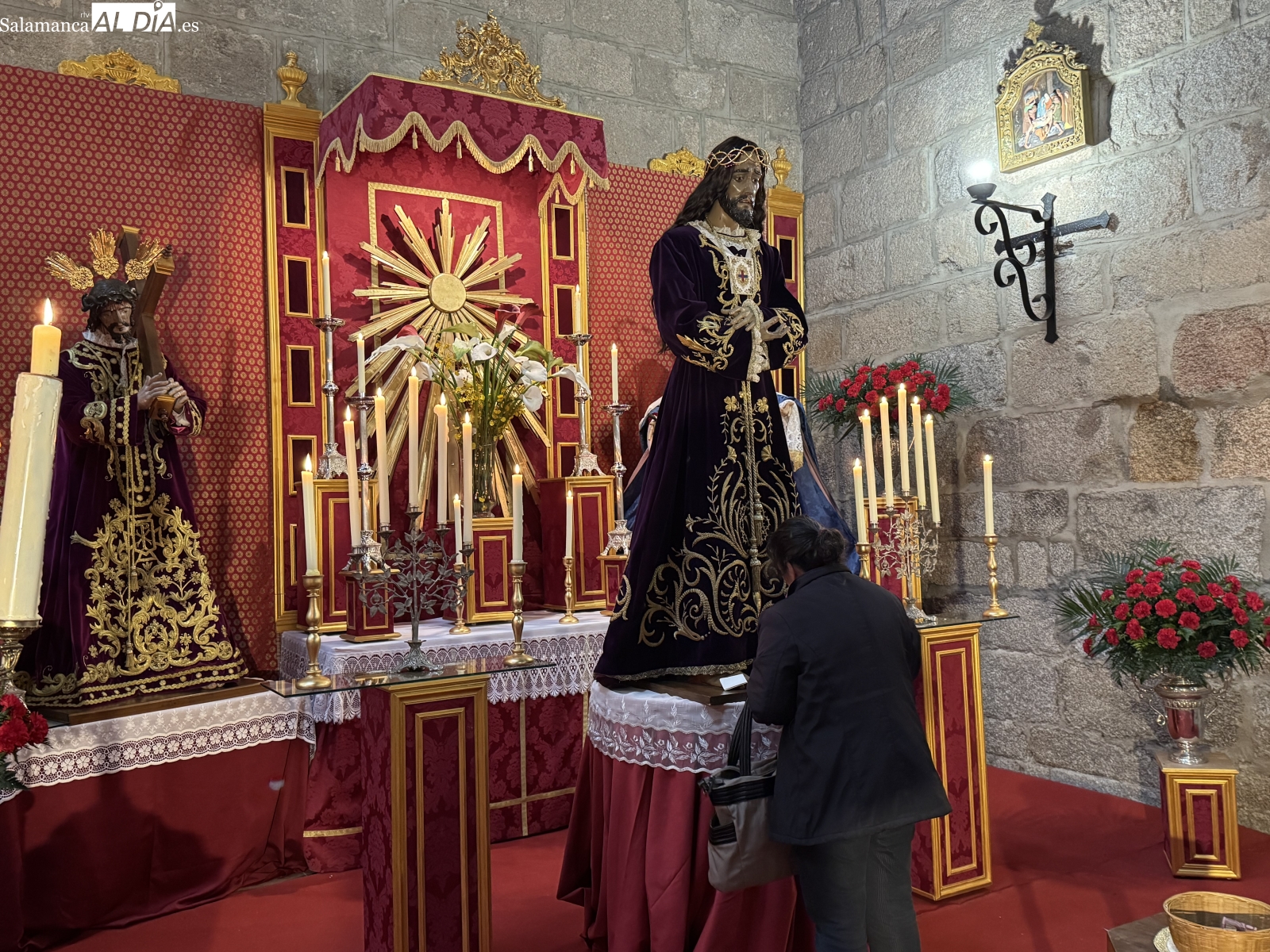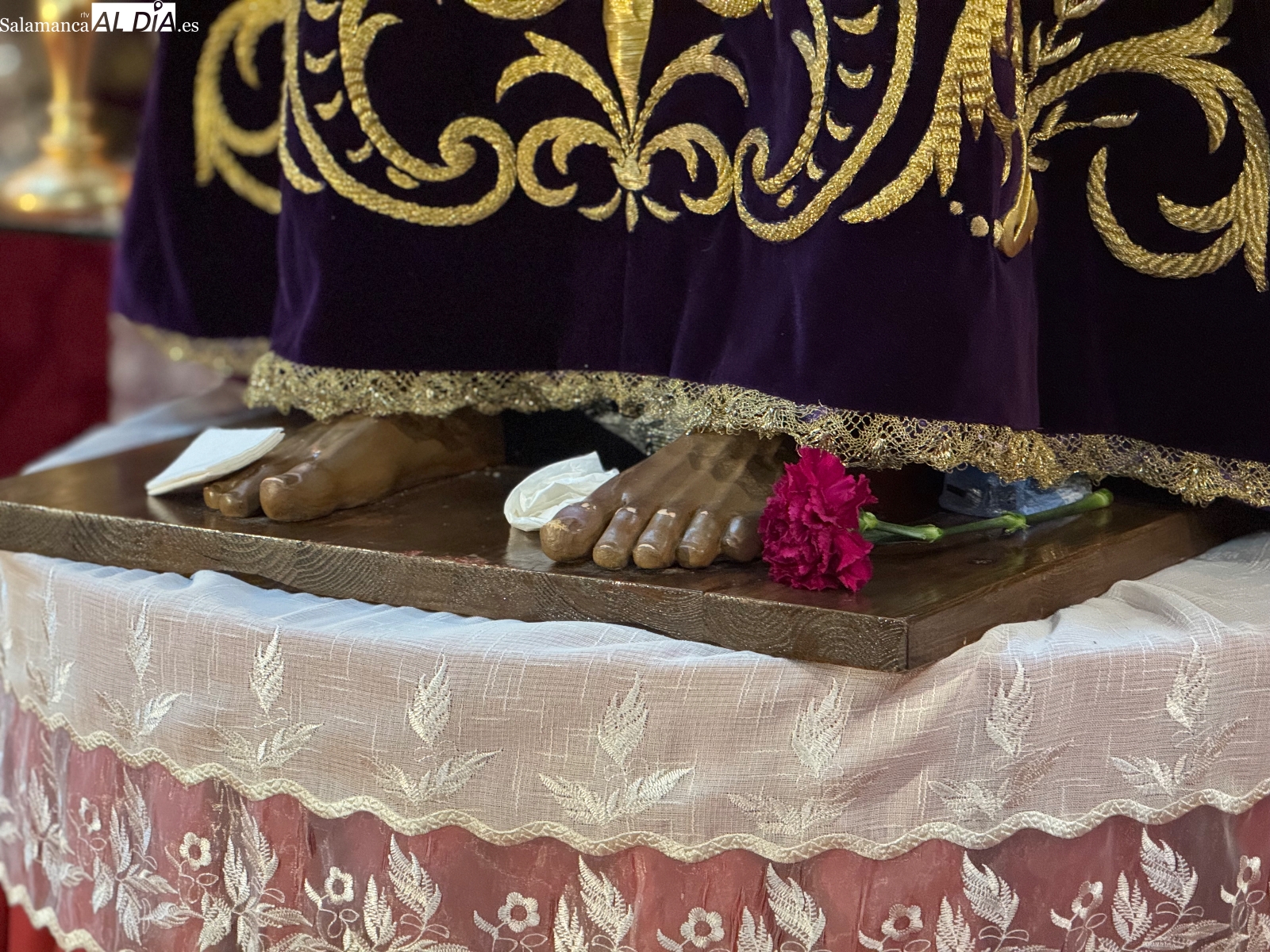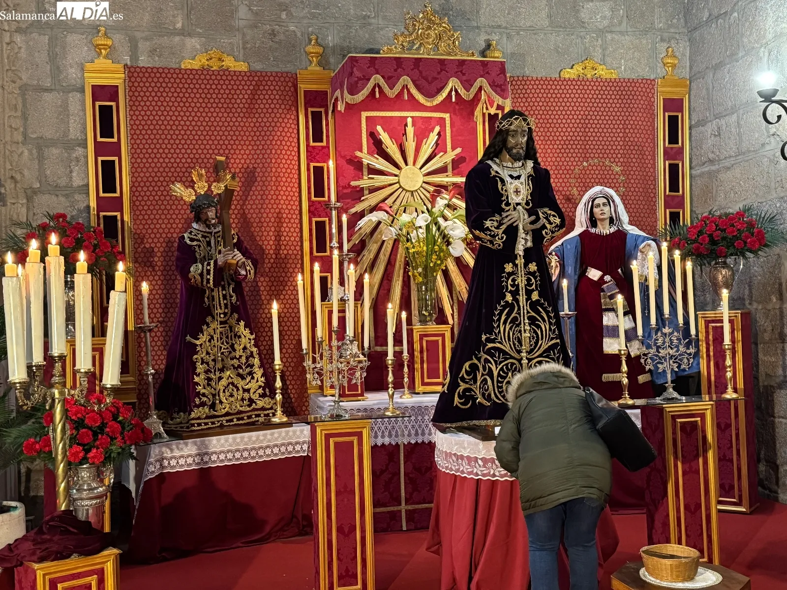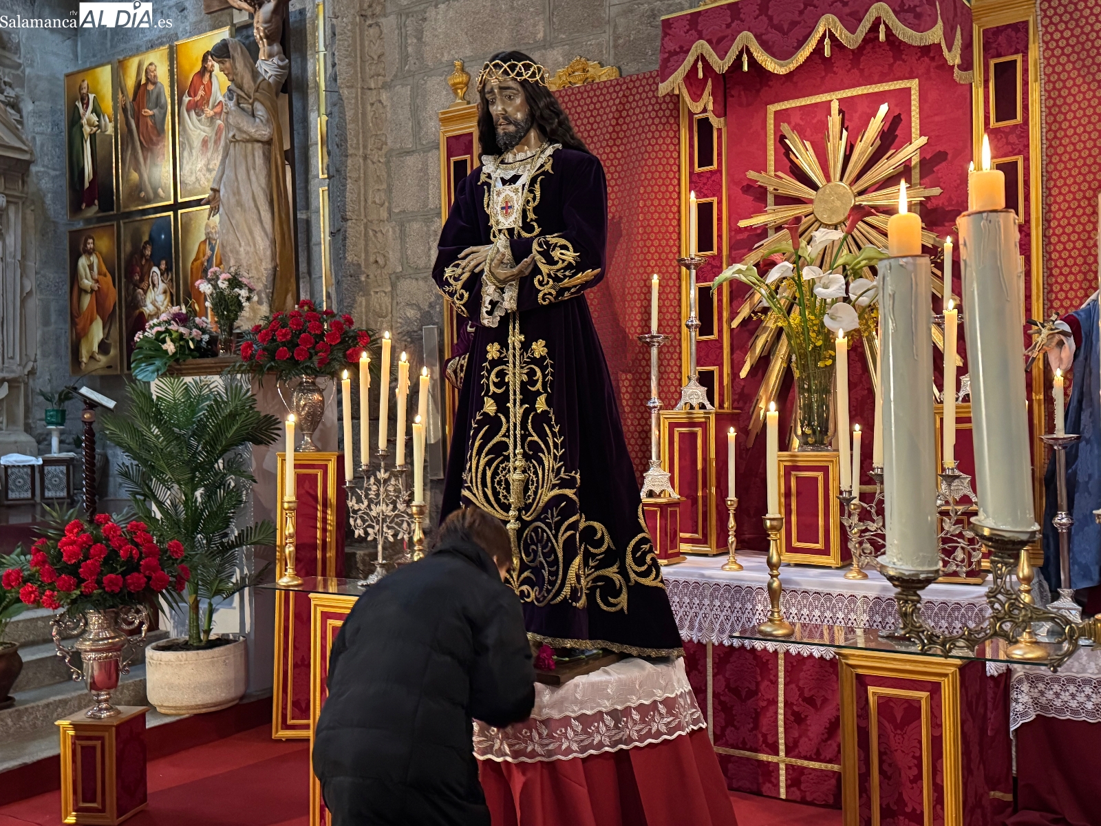 Cientos de fieles han vuelto a demostrar su devoción en el tradicional besapiés a Jesús de Medinaceli celebrado en la iglesia parroquial de San Miguel Arcángel. Ni el mal tiempo ni el intenso frío han impedido que multitud de personas se acercaran al templo desde las 11 de la mañana para participar en este emotivo acto, en el que los devotos ofrecieron sus oraciones y peticiones a esta venerada imagen nazarena antes de realizar el tradicional gesto de respeto y sentimiento al besar sus pies.