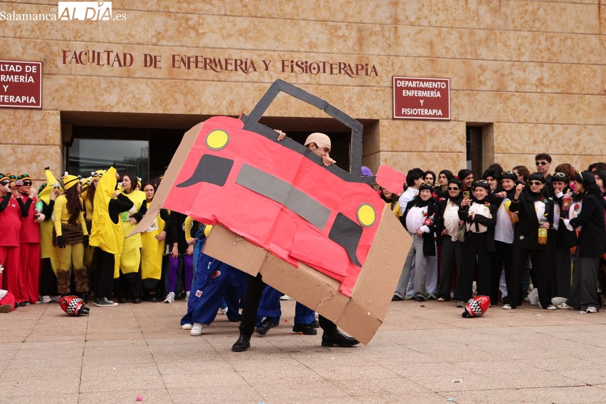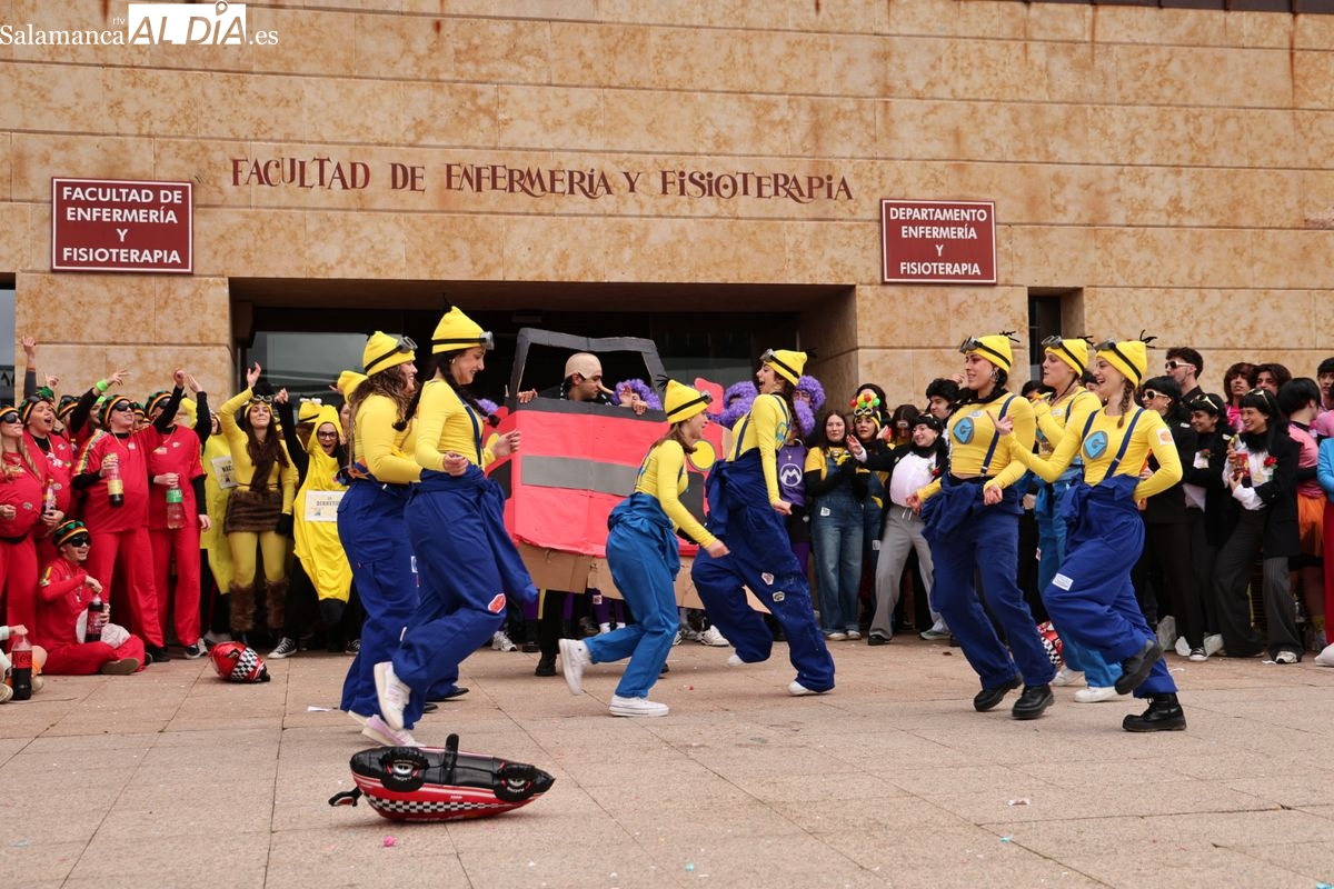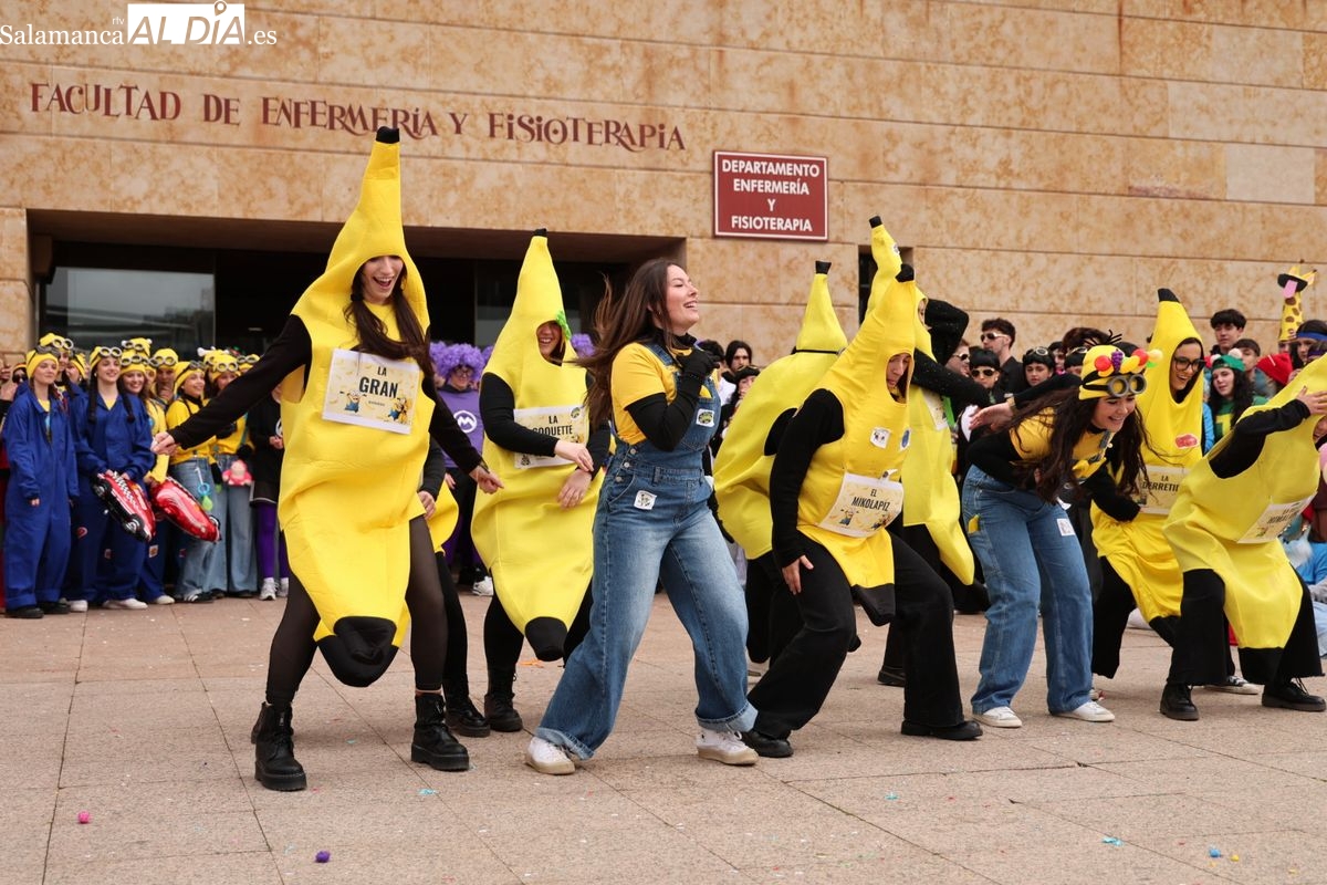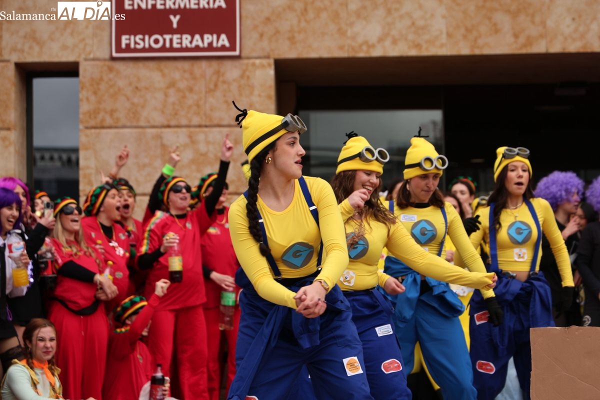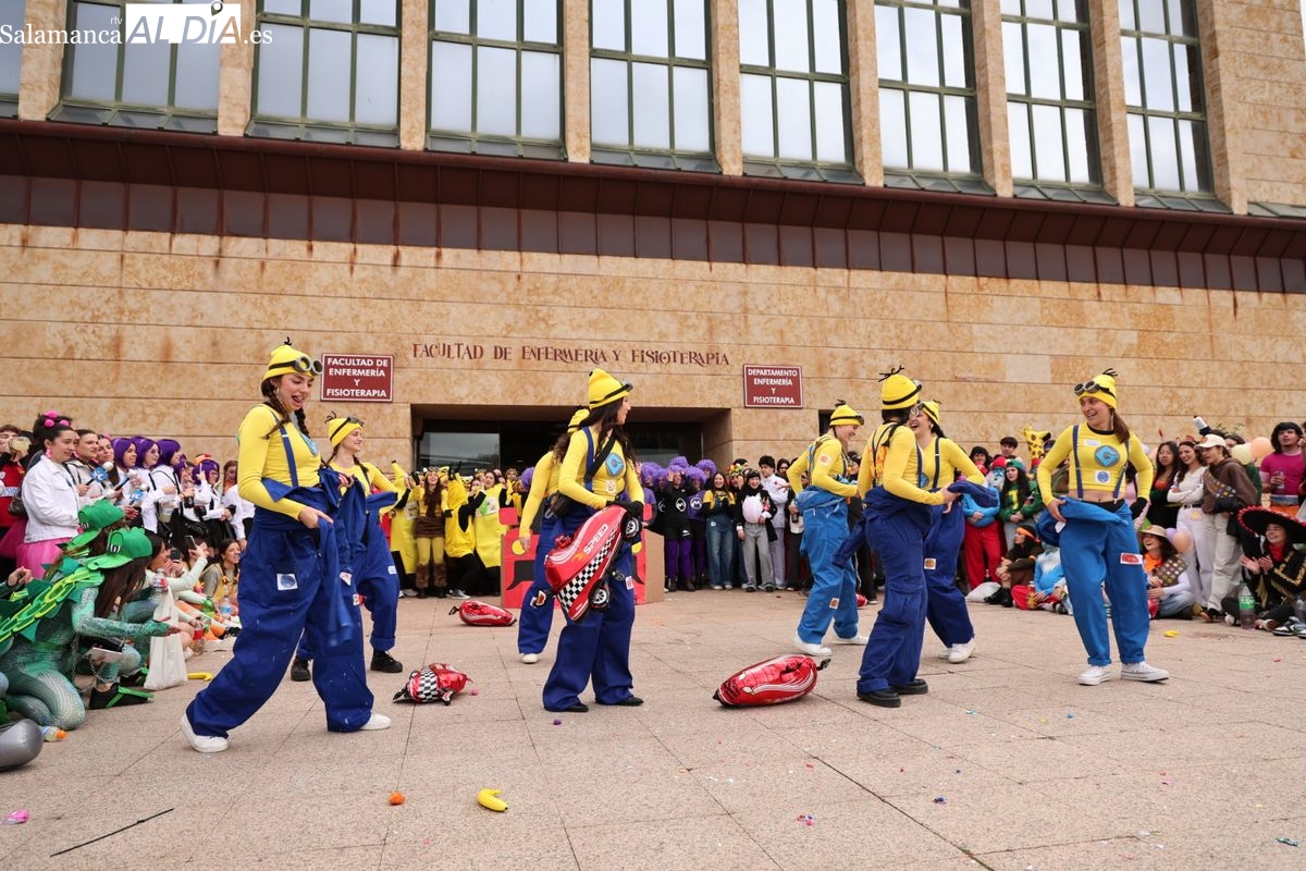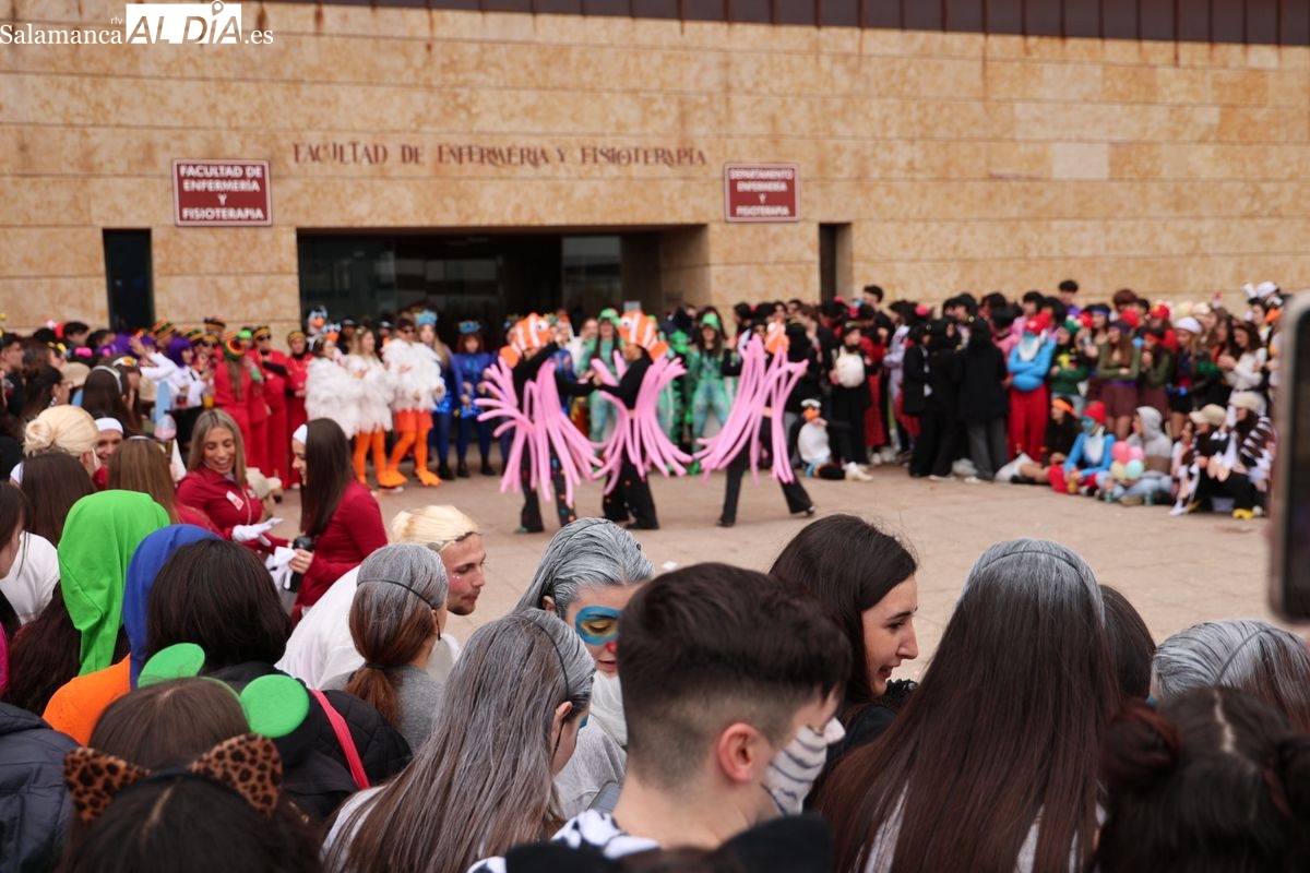 El ambiente festivo ha tomado esta mañana el Campus Unamuno con motivo de las celebraciones de la Facultad de Enfermería. Los universitarios se han congregado en las inmediaciones del centro para disfrutar de su jornada de convivencia.