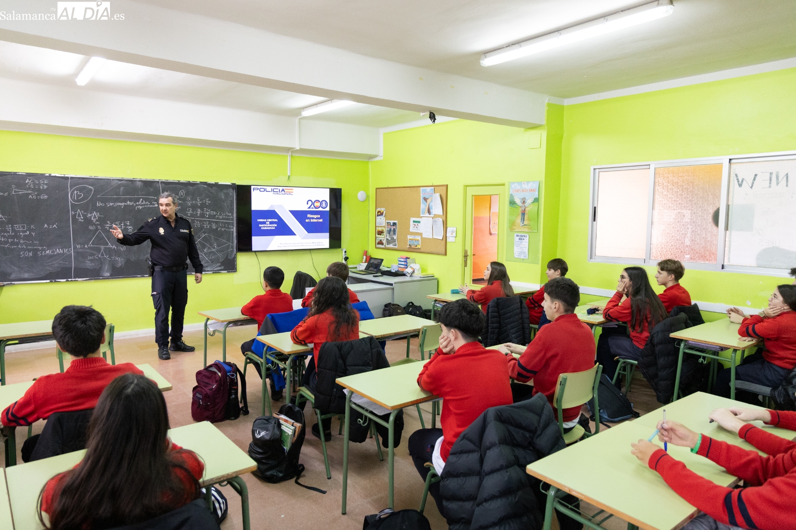 En el ámbito provincial, el encargado de trasladar este mensaje institucional a las aulas es el delegado provincial de Participación Ciudadana, el inspector Rafael Santero. El mando policial acumula cinco años de experiencia directa impartiendo estas ponencias en los institutos, lo que le ha proporcionado una radiografía exacta de las inquietudes y vulnerabilidades de los adolescentes y al que acompañamos en una de esas charlas a alumnos del Colegio Trinitarios de Salamanca.