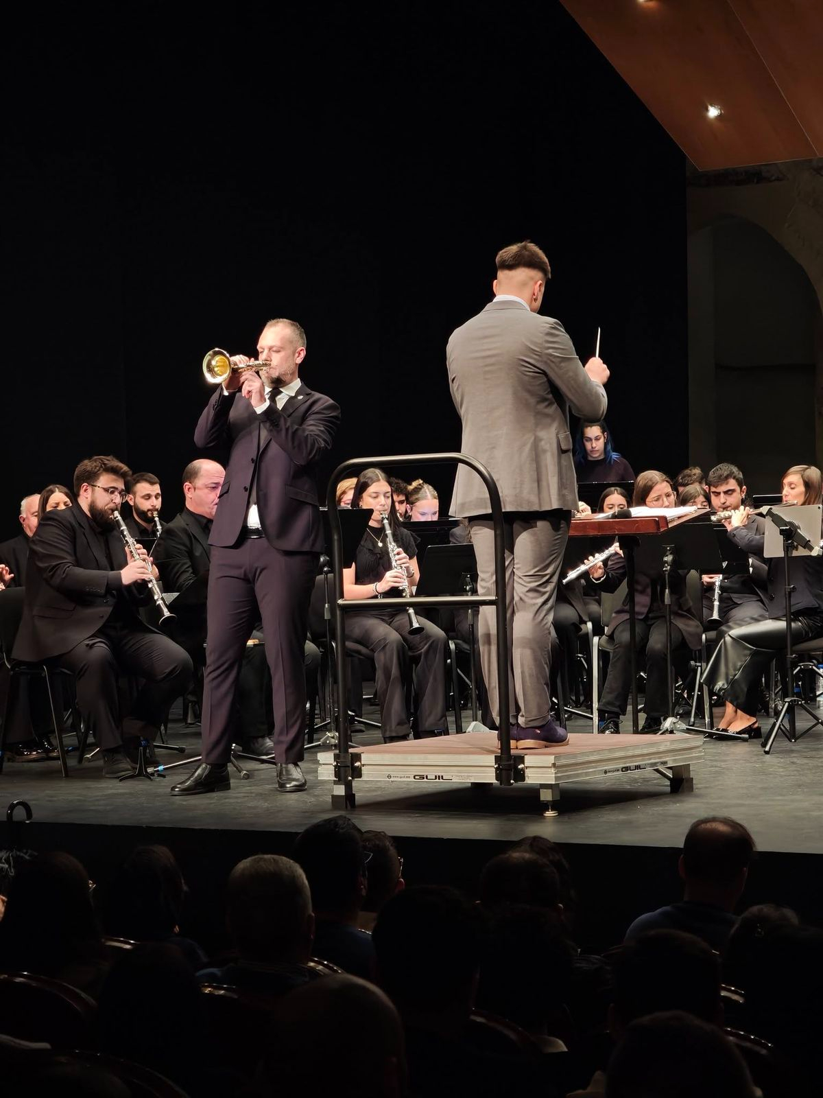 El Teatro Liceo de Salamanca registró este viernes un lleno absoluto para presenciar la actuación conjunta del cornetista Dani de Baza y la Banda de Música de Villamayor. El concierto, organizado por la Junta de Semana Santa de Salamanca, comenzó con la interpretación de la marcha "Pasión en Salamanca", obra de Abel Moreno, que sirvió como apertura para una velada que despertó un gran entusiasmo entre los asistentes.