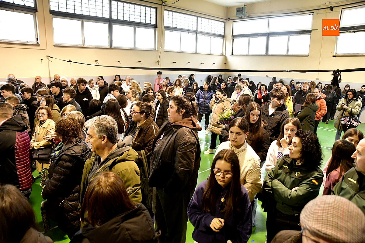 Inicialmente previsto en la Glorieta de Alfonso XIII, el acto hubo de trasladarse al pabellón deportivo del IES Tierra de Ciudad Rodrigo debido a la intensa lluvia que comenzó a caer a la hora programada. El cambio de escenario no restó, sin embargo, concurrencia ni significado al homenaje: ya a cubierto, el espacio deportivo se llenó de público y el programa pudo desarrollarse con normalidad.