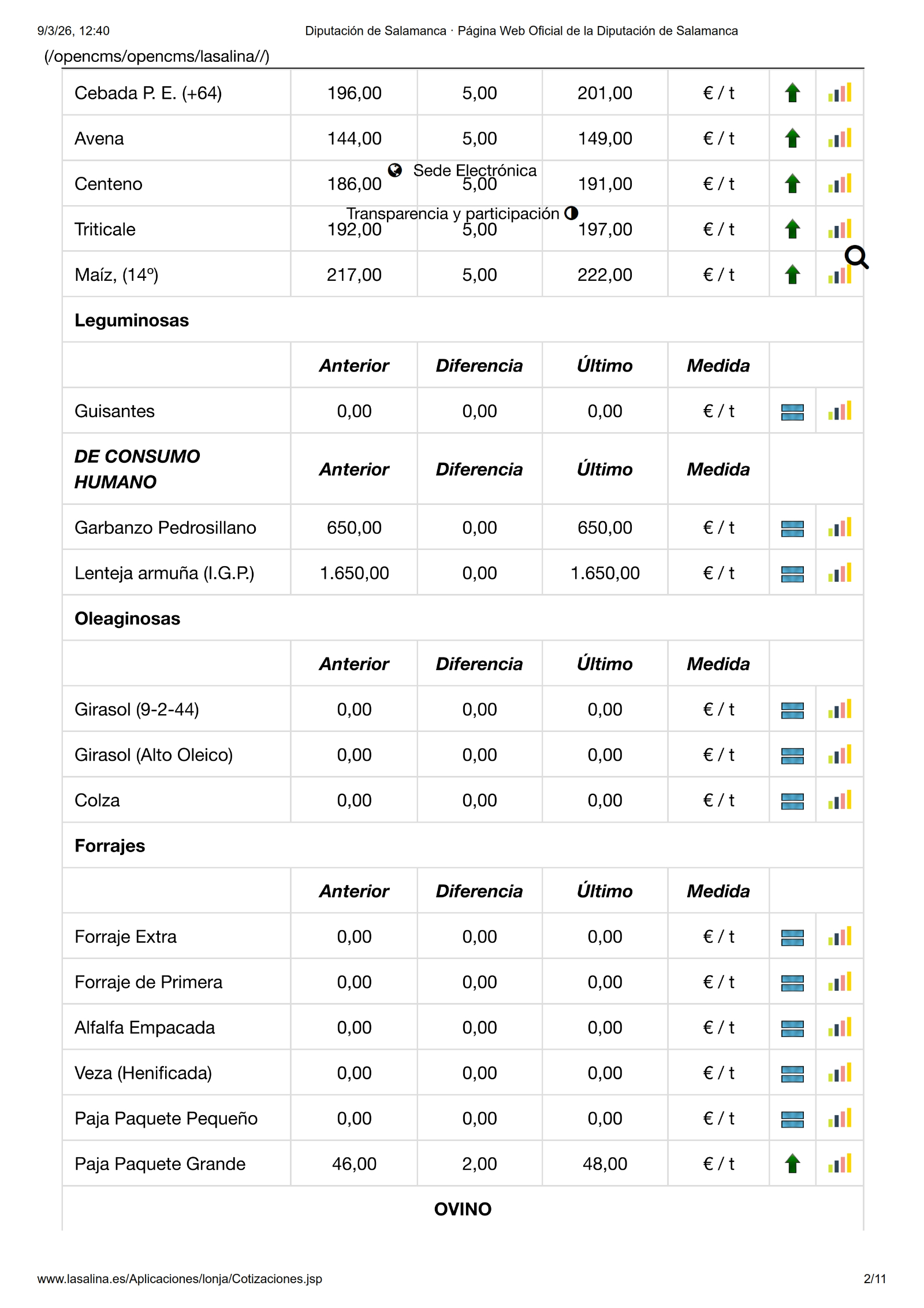 La guerra en Irán ha sido el detonante para que la lonja de Salamanca el cereal haya registrado este lunes, 9 de marzo, una importante subida de precios en todas las categorías después de semanas de incertidumbre, un hecho en el que también ha influido una no menos importante subida en el porcino blanco y una ligera bajada del pecio de teneros y añojos para sacrificio.