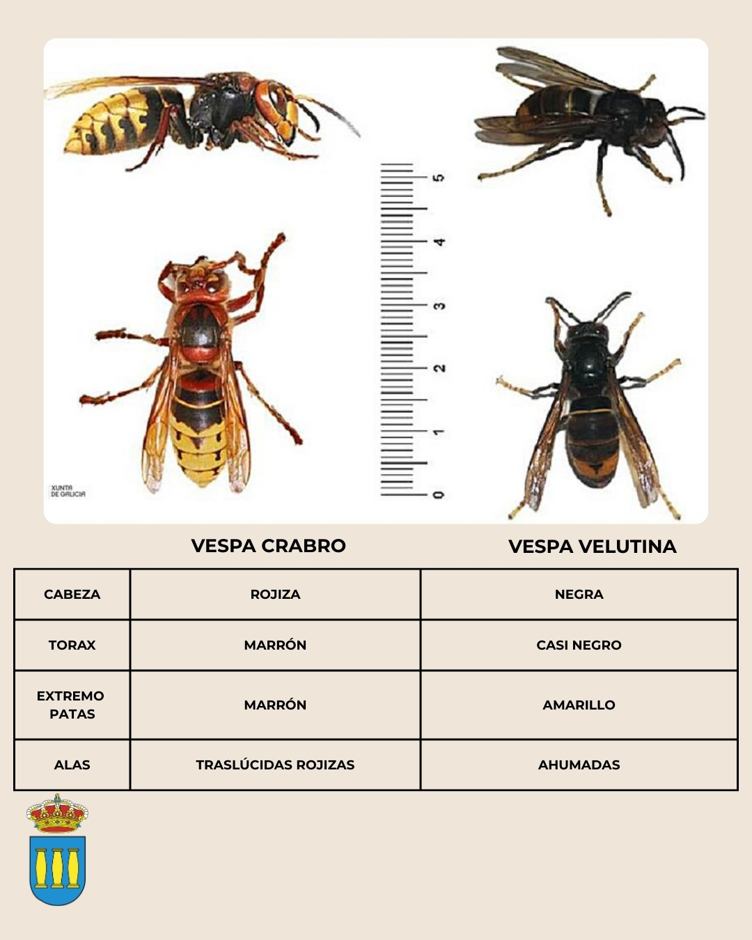 Para evitar confusiones con especies autóctonas como el avispón europeo (Vespa crabro), es fundamental conocer las características físicas distintivas de la avispa asiática: