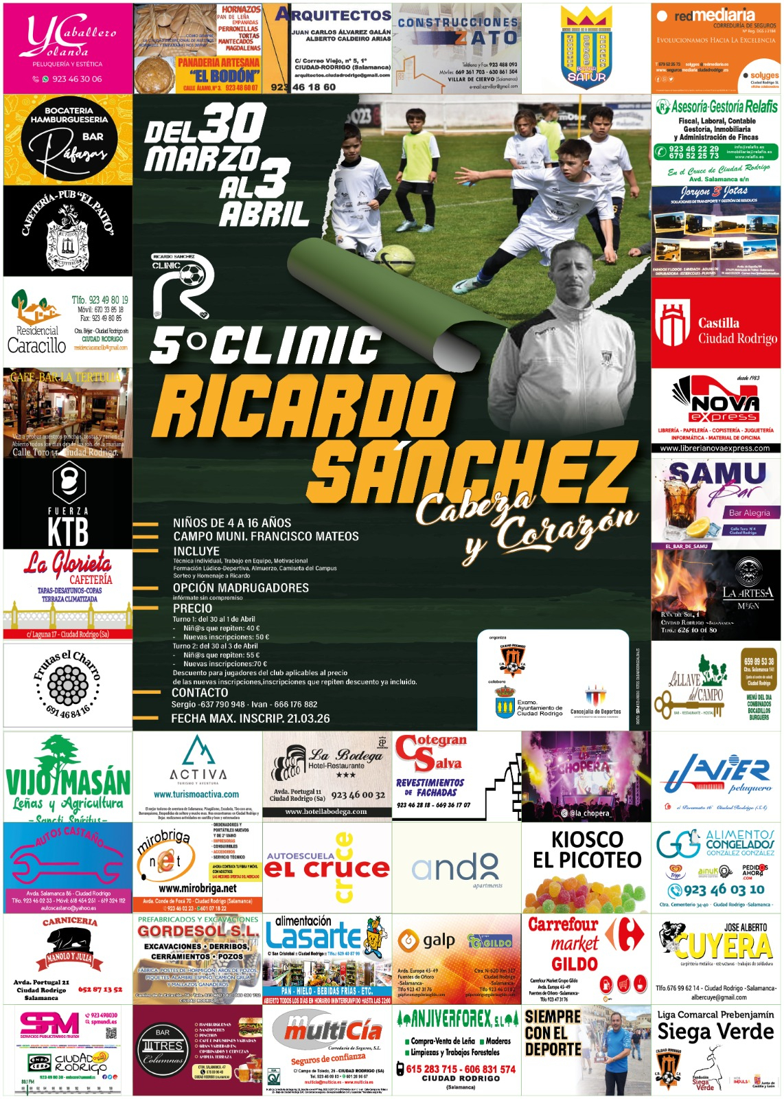 Ciudad Rodrigo se prepara para acoger la quinta edición de su campus de fútbol en honor a Ricardo Sánchez. El evento deportivo, que reunirá nuevamente a los jóvenes talentos de la zona, se desarrollará desde el 30 de marzo hasta el 3 de abril y llega con importantes novedades orientadas a las familias. El campus se desarrollará en el campo municipal Francico Mateos, para niños de 4 a 16 años, en horario de mañana, de 10:00 a 14:00 horas, aunque también se ofrecerá la opción de madrugadores para aquellos padres que necesiten dejar antes a los niños. La iniciativa ha despertado un notable interés, ya que supera los 50 inscritos hasta el momento.