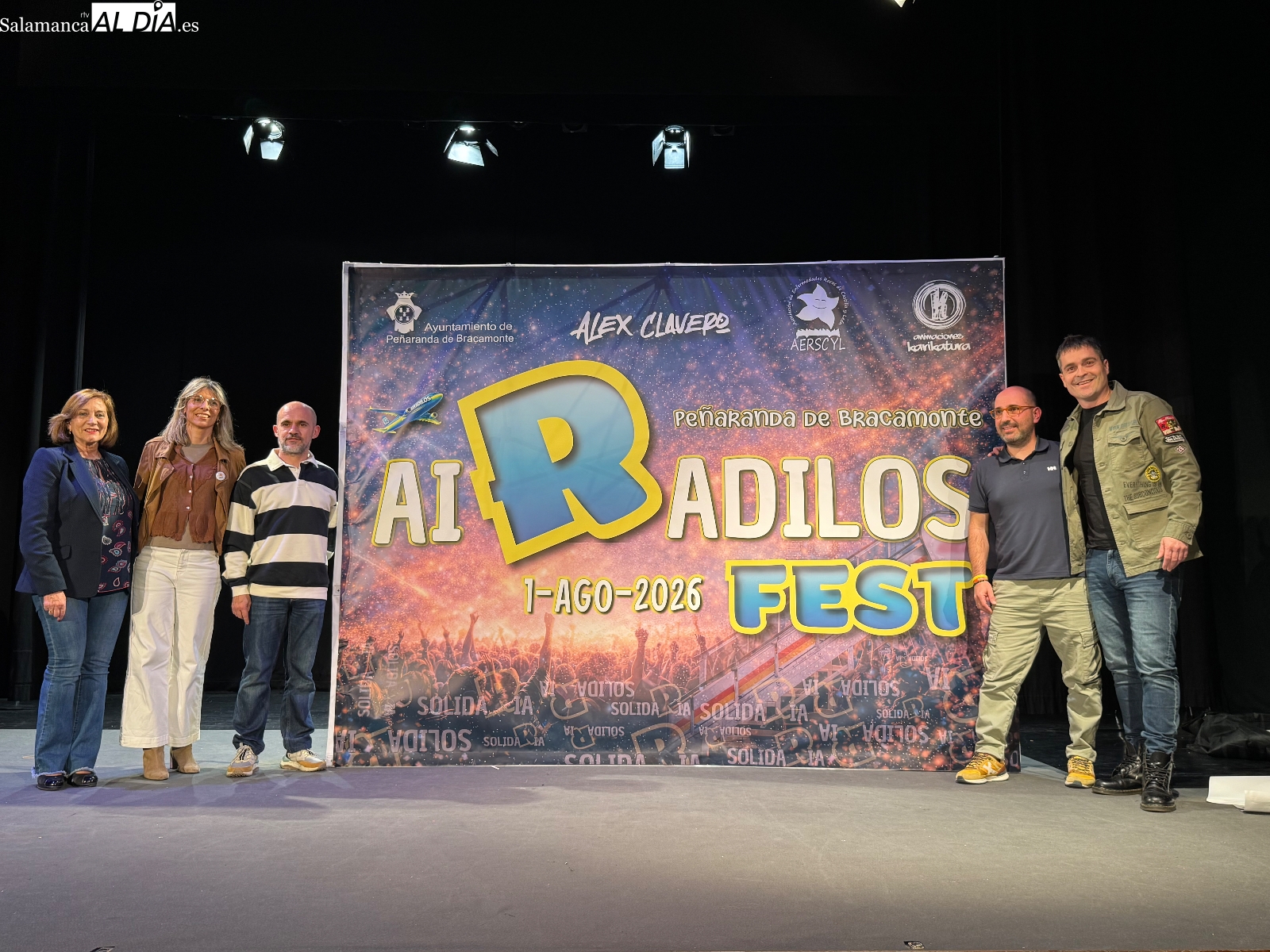 El teatro del Centro de Desarrollo Sociocultural (CDS) de Peñaranda de Bracamonte ha acogido la presentación del II Airadilos Fest, un festival solidario que volverá a celebrarse el próximo 1 de agosto en el parque de La Huerta con música, humor y actividades para todos los públicos. El acto contó con la presencia de los impulsores de la iniciativa, el humorista Álex Clavero y Alvaro Terrero, de Animaciones Karikatura, junto a la presidenta de AEESCYL, Patricia Gálvez; la alcaldesa de la ciudad, Carmen Ávila; y el concejal Pedro Pérez, quienes coincidieron en destacar el crecimiento del evento y su objetivo de llegar a más rincones de España.