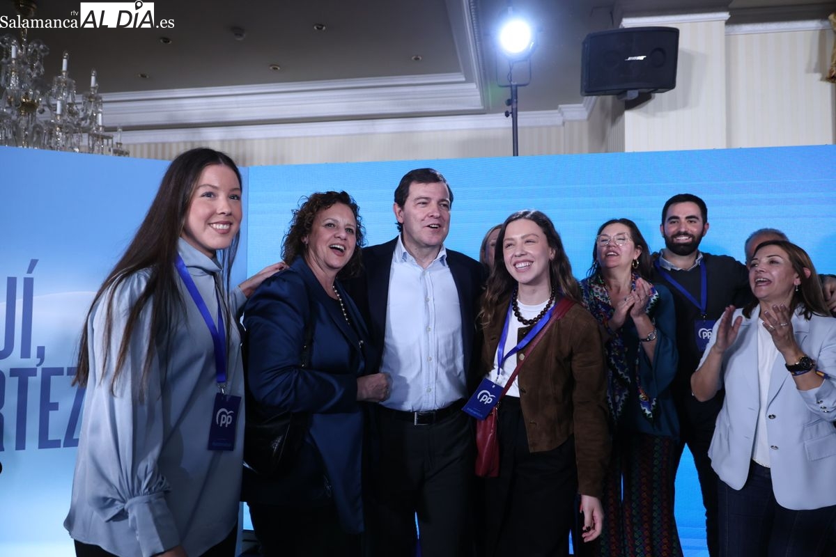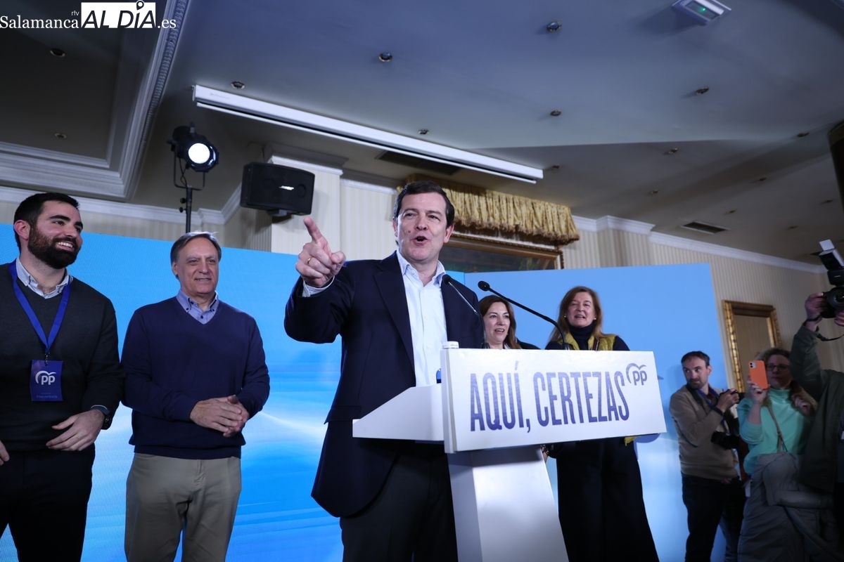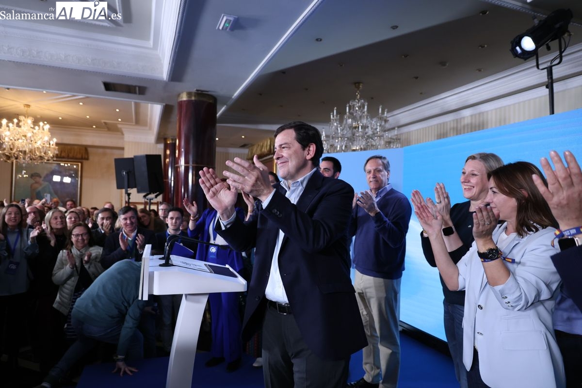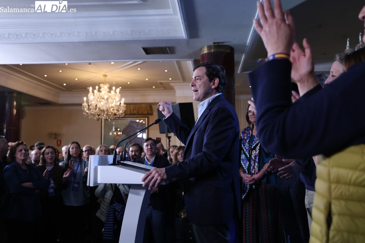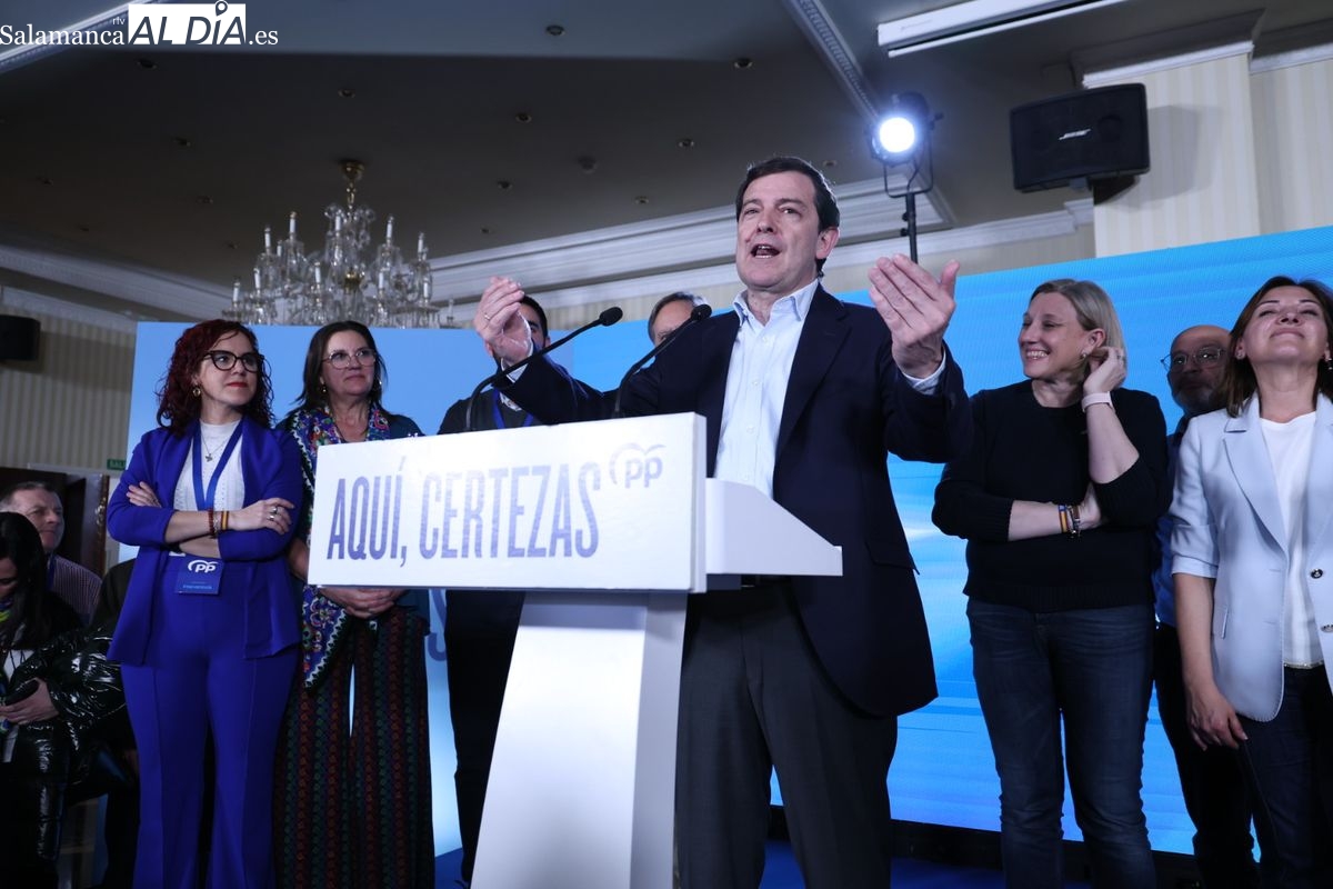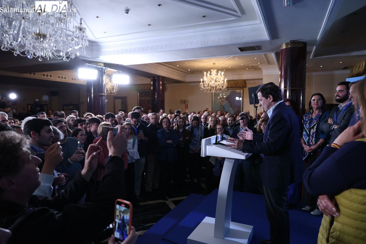 Ha continuado su intervención asegurando que "puedo garantizar que el Partido Popular empezará mañana el diálogo con todas las fuerzas políticas pero en Castilla y León va a gobernar el PP y un gobierno para todos". Ha continuado agradeciendo la confiaza y el apoyo del líder nacional del partido Alberto Núñez Feijóo, así como al expresidente del gobierno Mariano Rajoy o a Aznar, entre otros. También ha tenido palabras para Carlos García Carbayo, alcalde de la ciudad y presidente del PP de Salamanca.