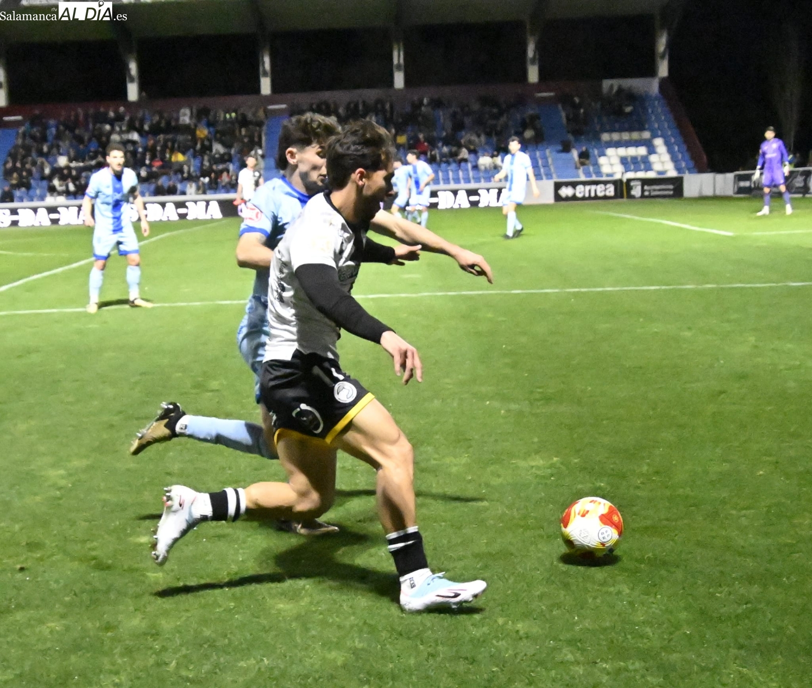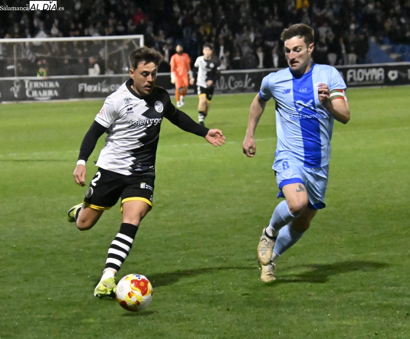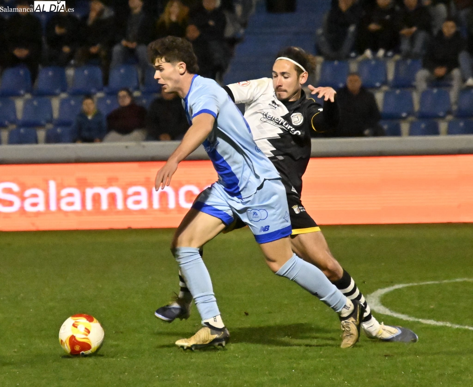 El inicio ha estado marcado por el respeto de los dos equipos, pero al cuarto de hora sí que han empezado las hostilidades con una buena parada de Gaizka a un chut poderoso de Prada de falta y otra de Salvi a un cabezazo de Dufur a la salida de un córner. Entre tanto, José de León ha firmado un jugadón antes de irse lesionado y ser sustituido por un ex como Íñigo Muñoz: el dorsal 17 ha encarado a Olmedo, se ha ido de él y ha sacado un precioso tiro con rosca que ha lamido el poste izquierdo de la meta charra antes de la media hora.