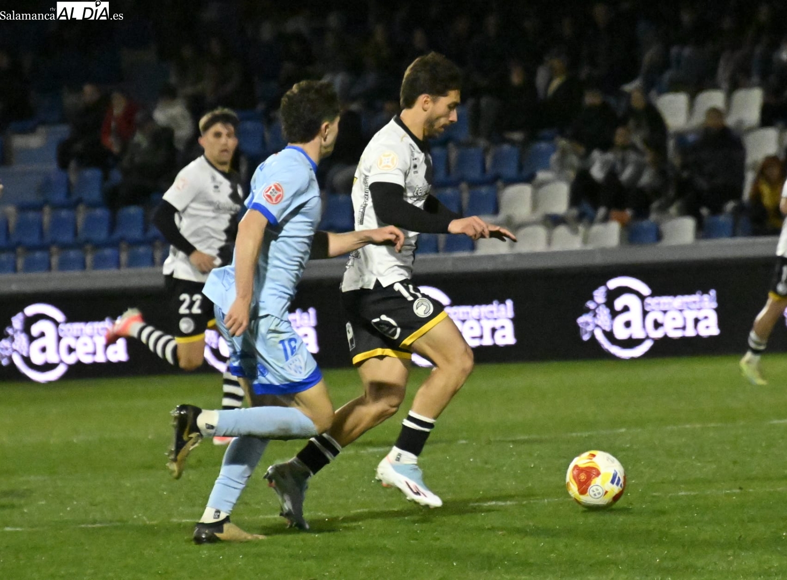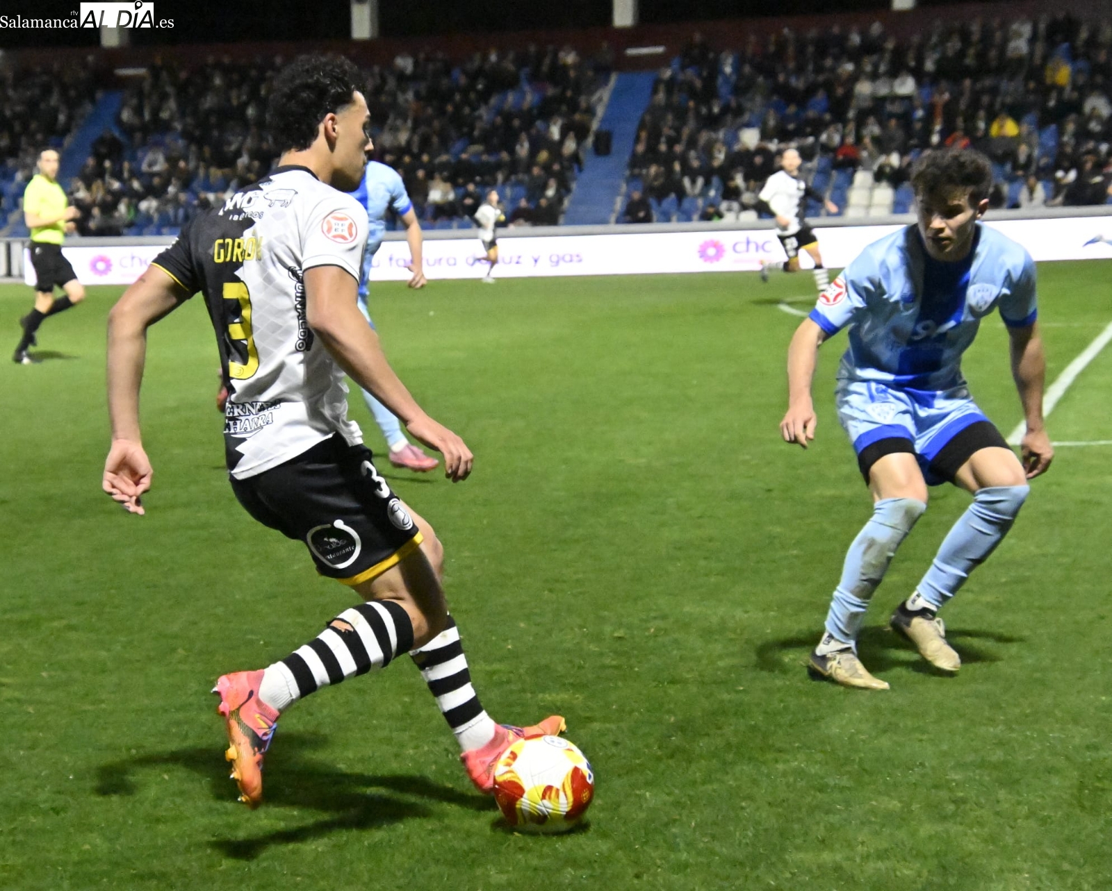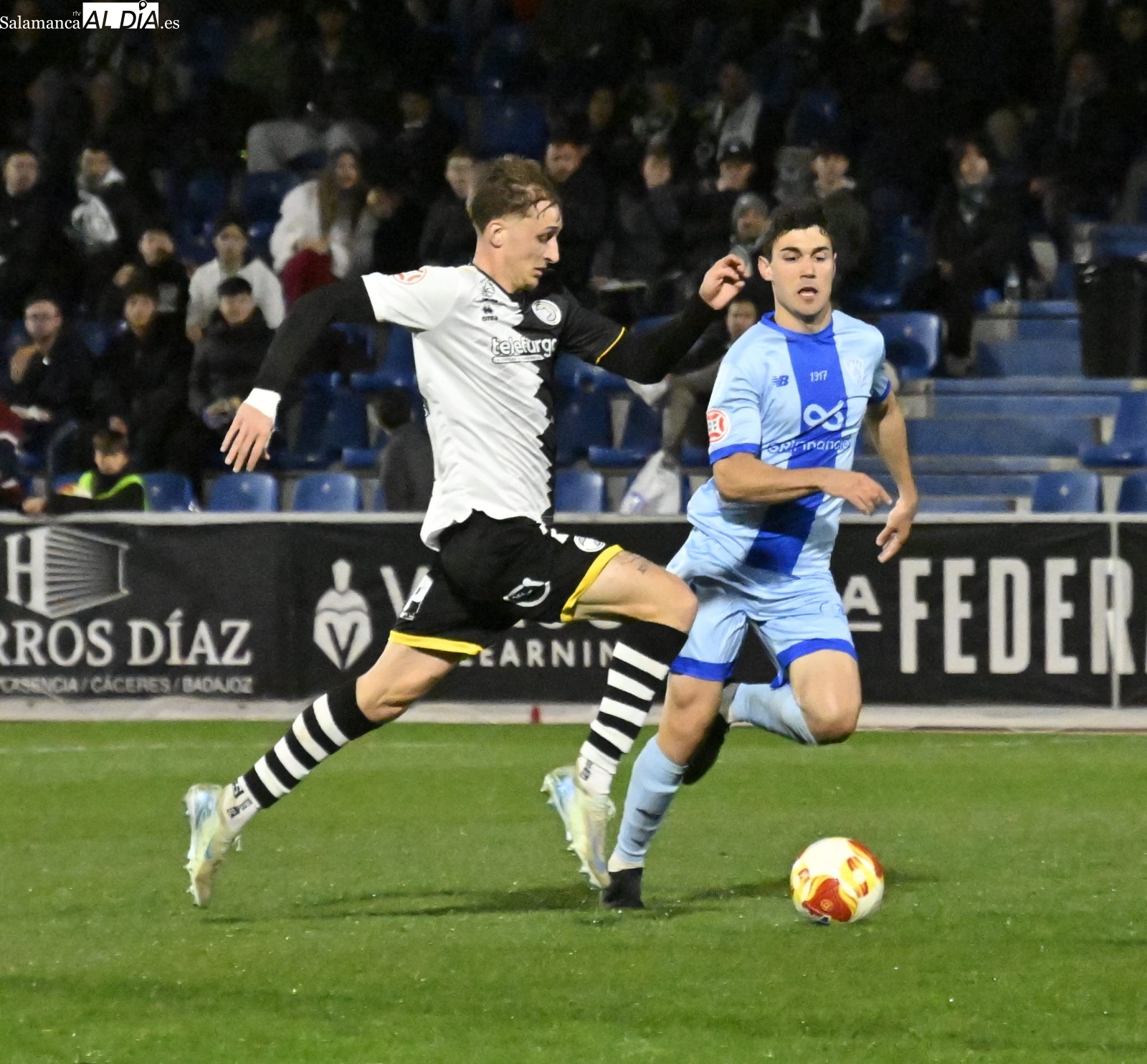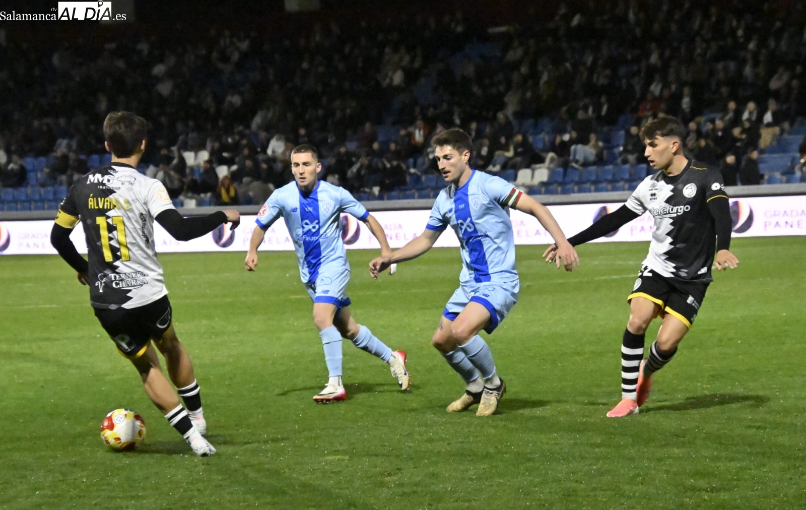 El inicio ha estado marcado por el respeto de los dos equipos, pero al cuarto de hora sí que han empezado las hostilidades con una buena parada de Gaizka a un chut poderoso de Prada de falta y otra de Salvi a un cabezazo de Dufur a la salida de un córner. Entre tanto, José de León ha firmado un jugadón antes de irse lesionado y ser sustituido por un ex como Íñigo Muñoz: el dorsal 17 ha encarado a Olmedo, se ha ido de él y ha sacado un precioso tiro con rosca que ha lamido el poste izquierdo de la meta charra antes de la media hora.