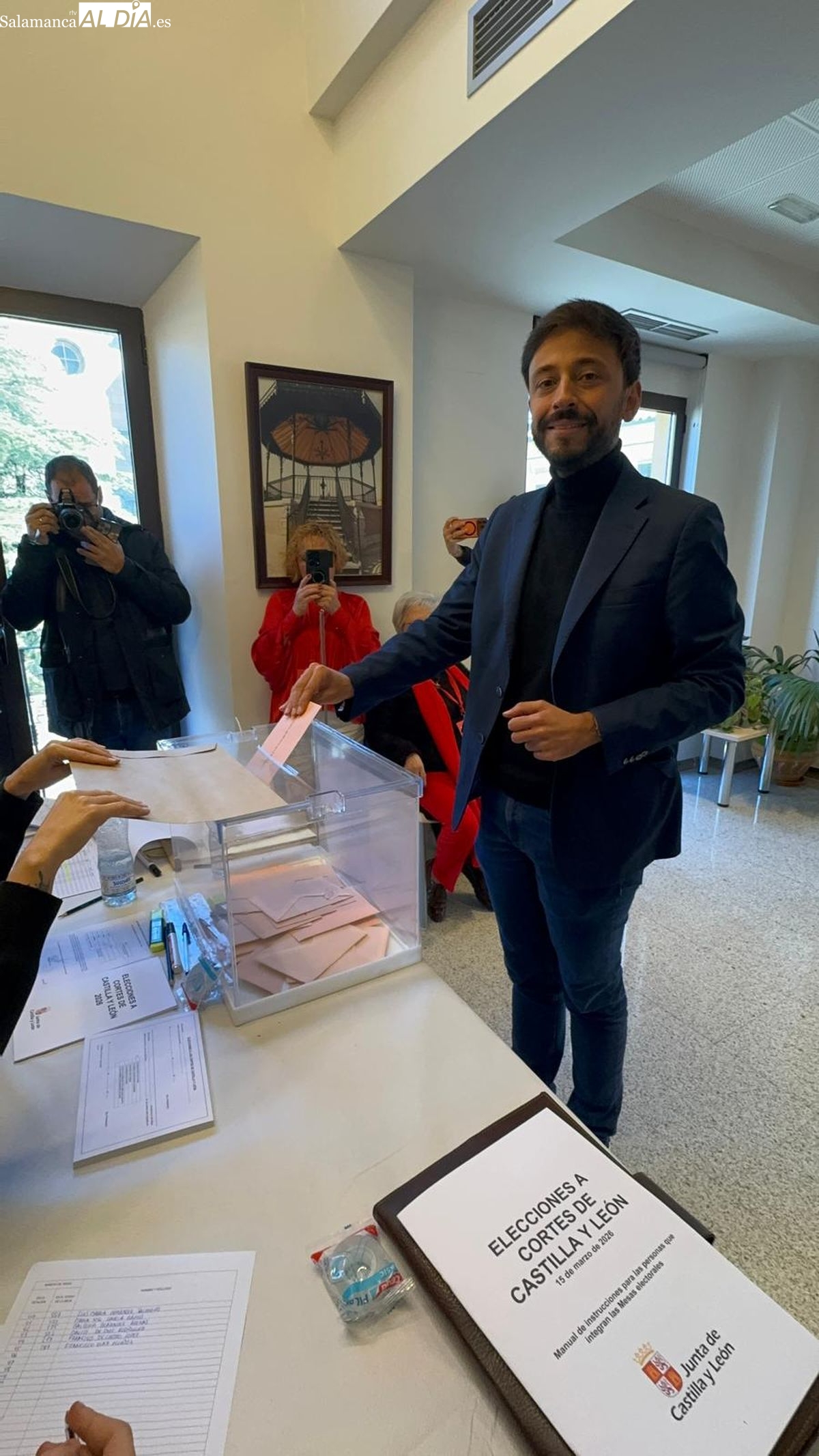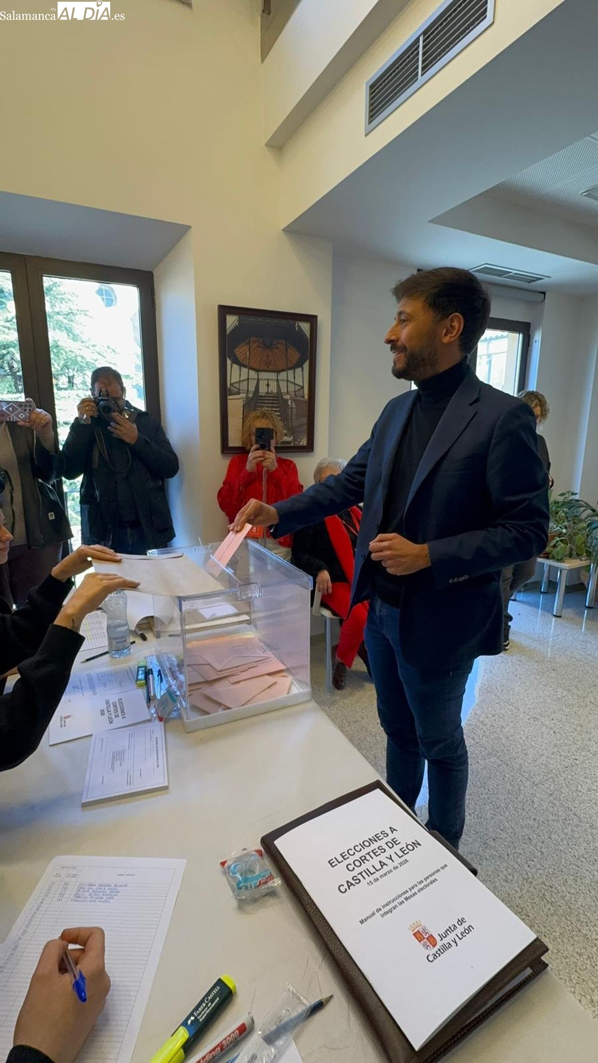 Fran Díaz ha acudido al Ayuntamiento de Peñaranda, donde reside su colegio electoral, para depositar la papeleta. Durante el acto, el representante socialista ha atendido a los medios de comunicación para subrayar la trascendencia de estos comicios, cuyo objetivo es "poder elegir y renovar el parlamento autonómico" y designar a los 10 procuradores que representarán a la provincia salmantina.