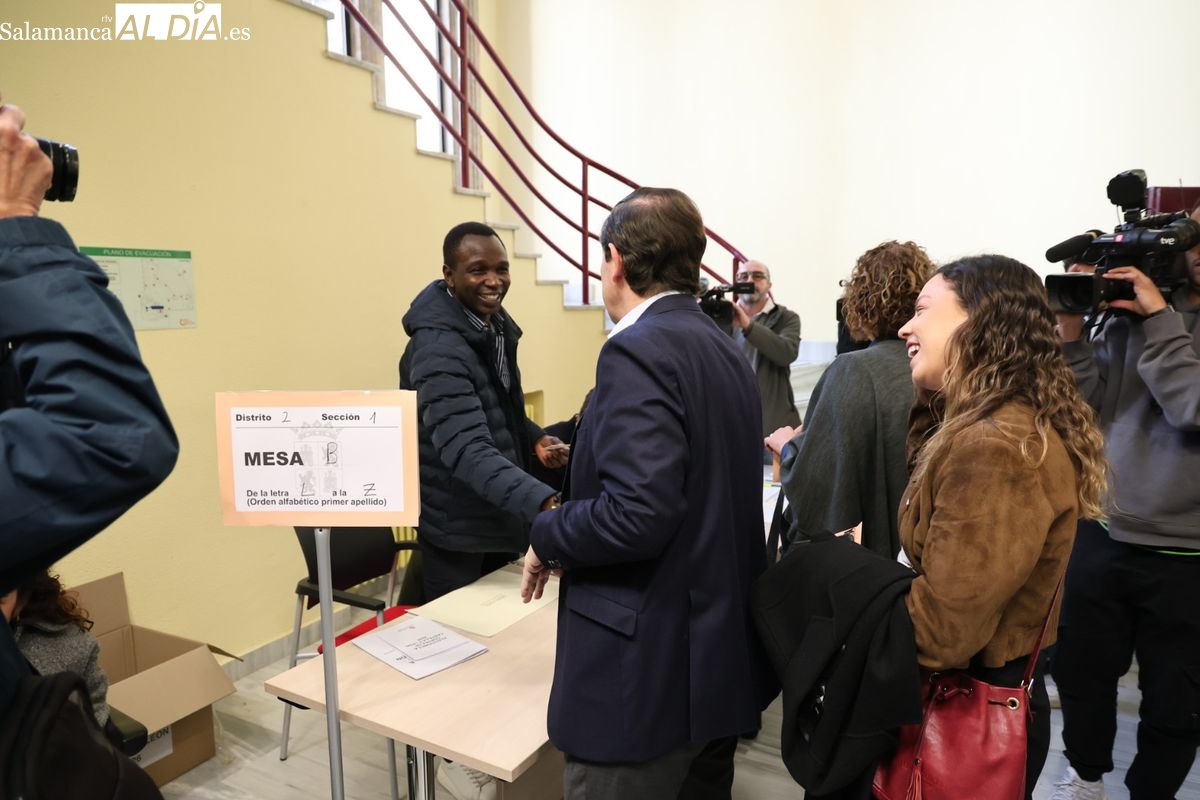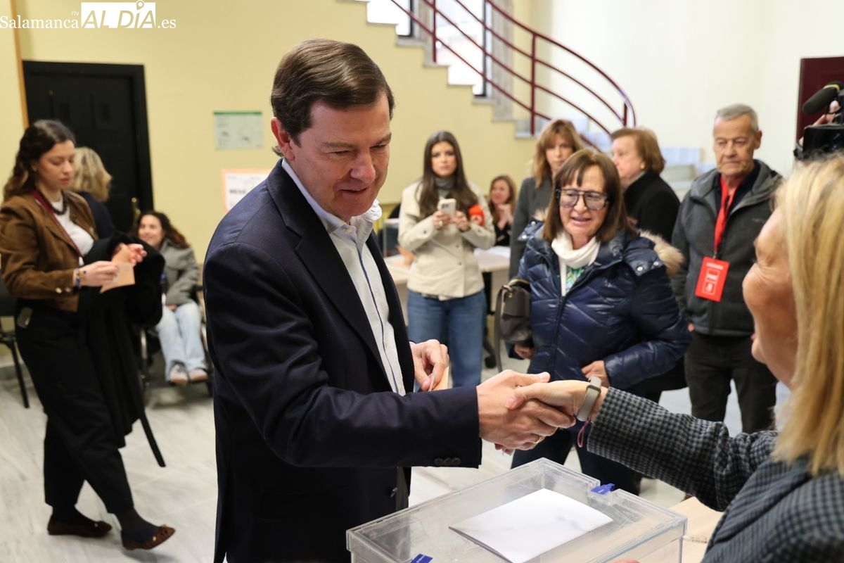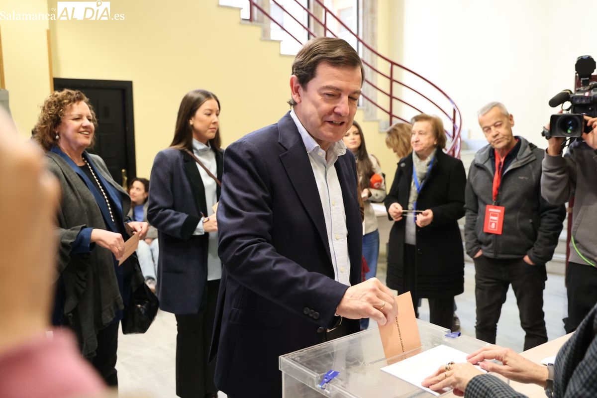 El candidato a la Presidencia de la Junta de Castilla y León y cabeza de lista del Partido Popular por Salamanca, Alfonso Fernández Mañueco, ha ejercido su derecho al voto durante la mañana de este domingo acompañado de su mujer y sus hijas. Tras depositar su papeleta en el colegio electoral situado en la Plaza de la Constitución, ha animado a los ciudadanos a acudir a las urnas para decidir el futuro gobierno autonómico.