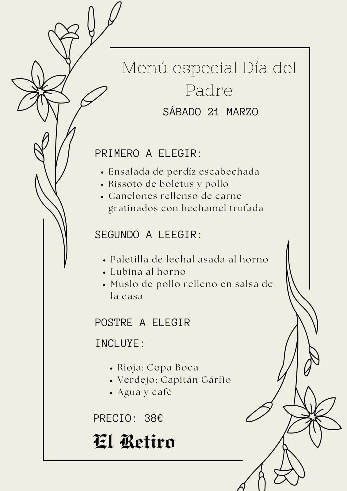 Con motivo del Día del Padre, el Restaurante El Retiro ofrece en Vitigudino un menú muy especial para celebrar esta señalada fecha con toda la familia y en el mejor lugar, sentados en una excelente mesa.